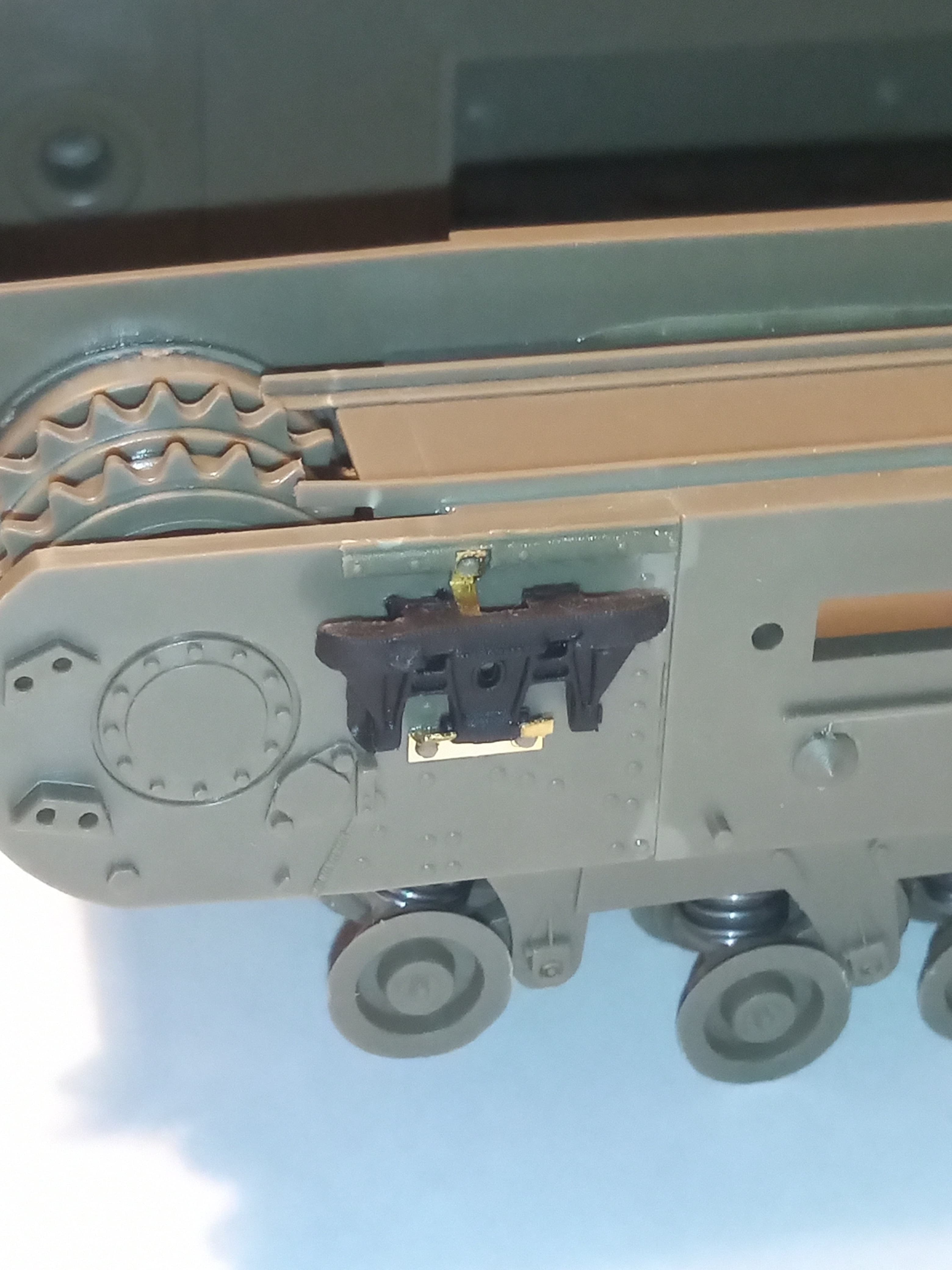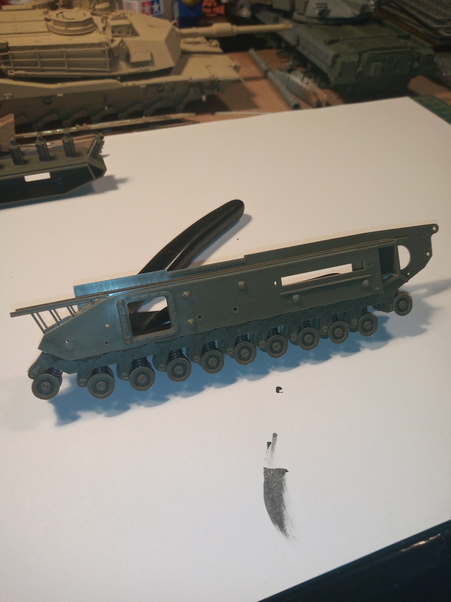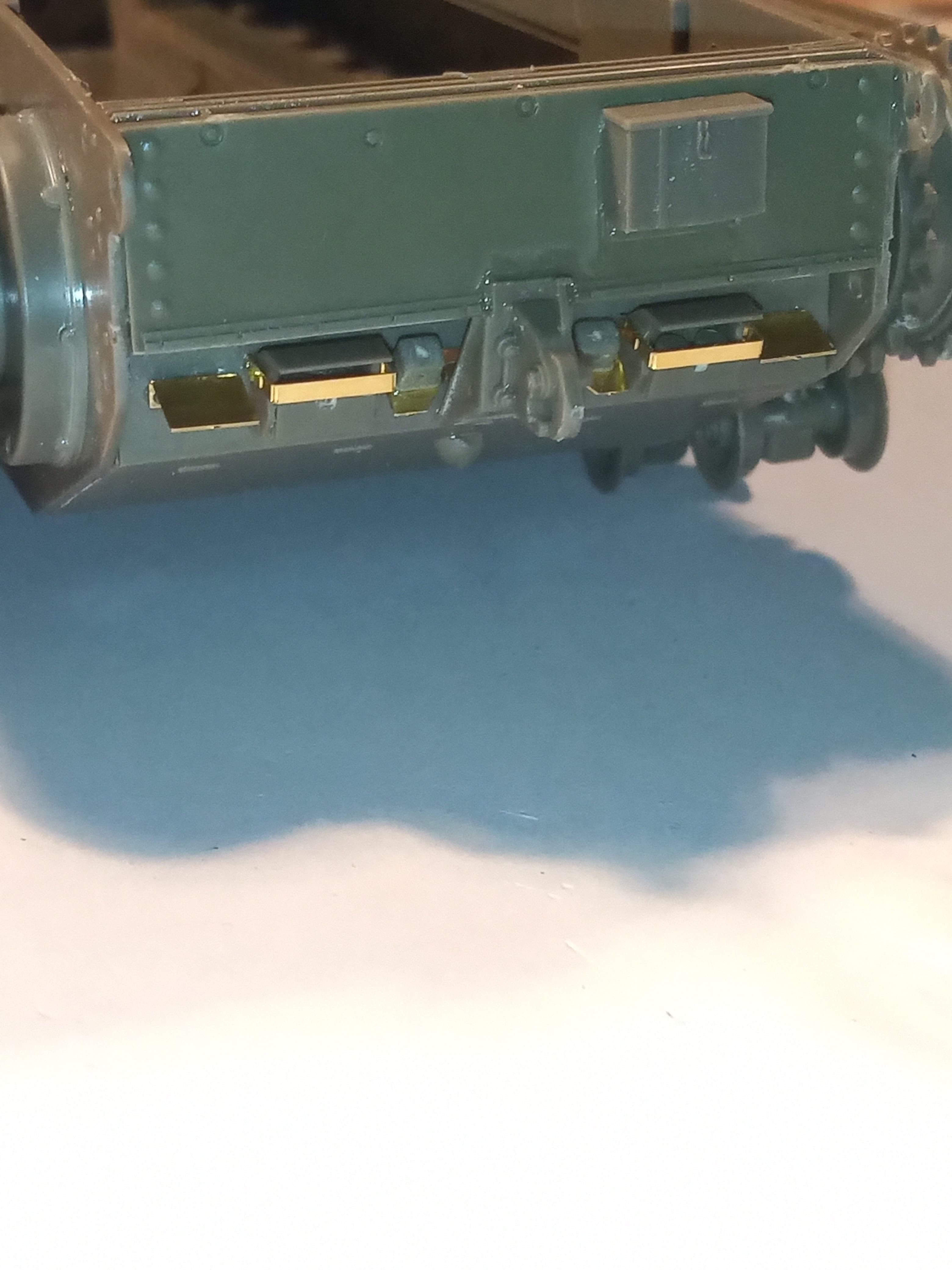 Almost forgot the counter weights for the fascine needed to be added to the inside rear before I put the front hull section on…