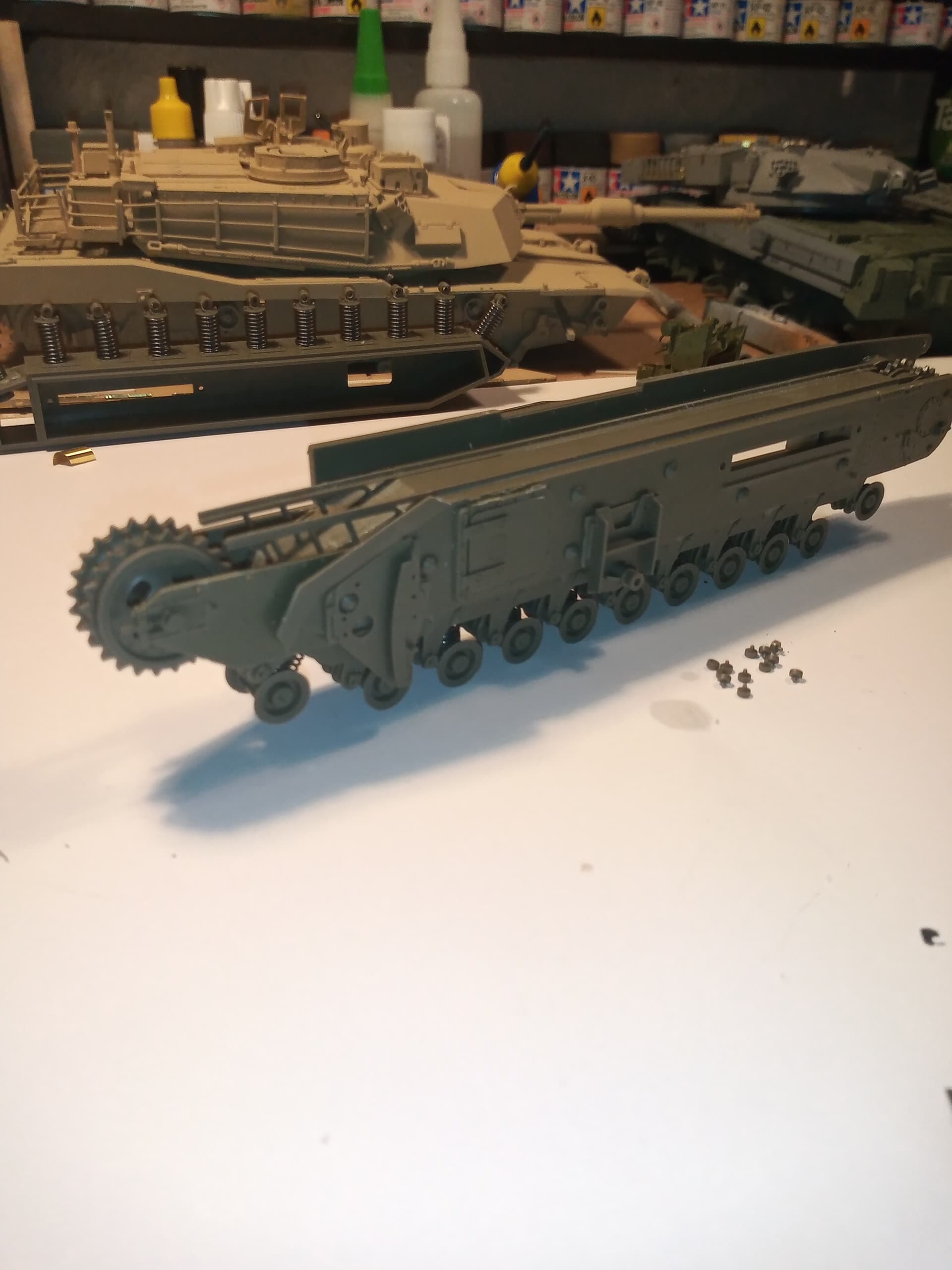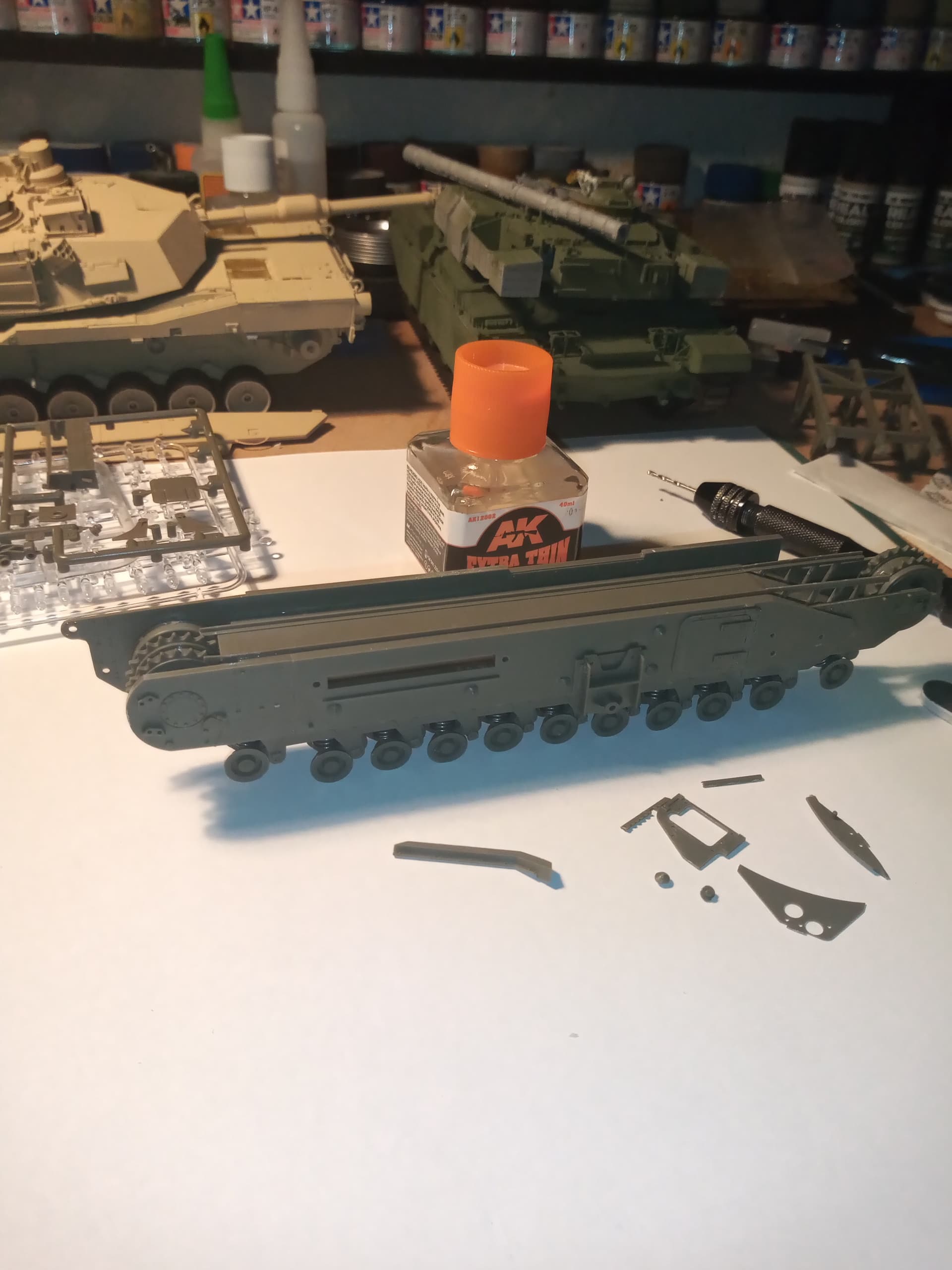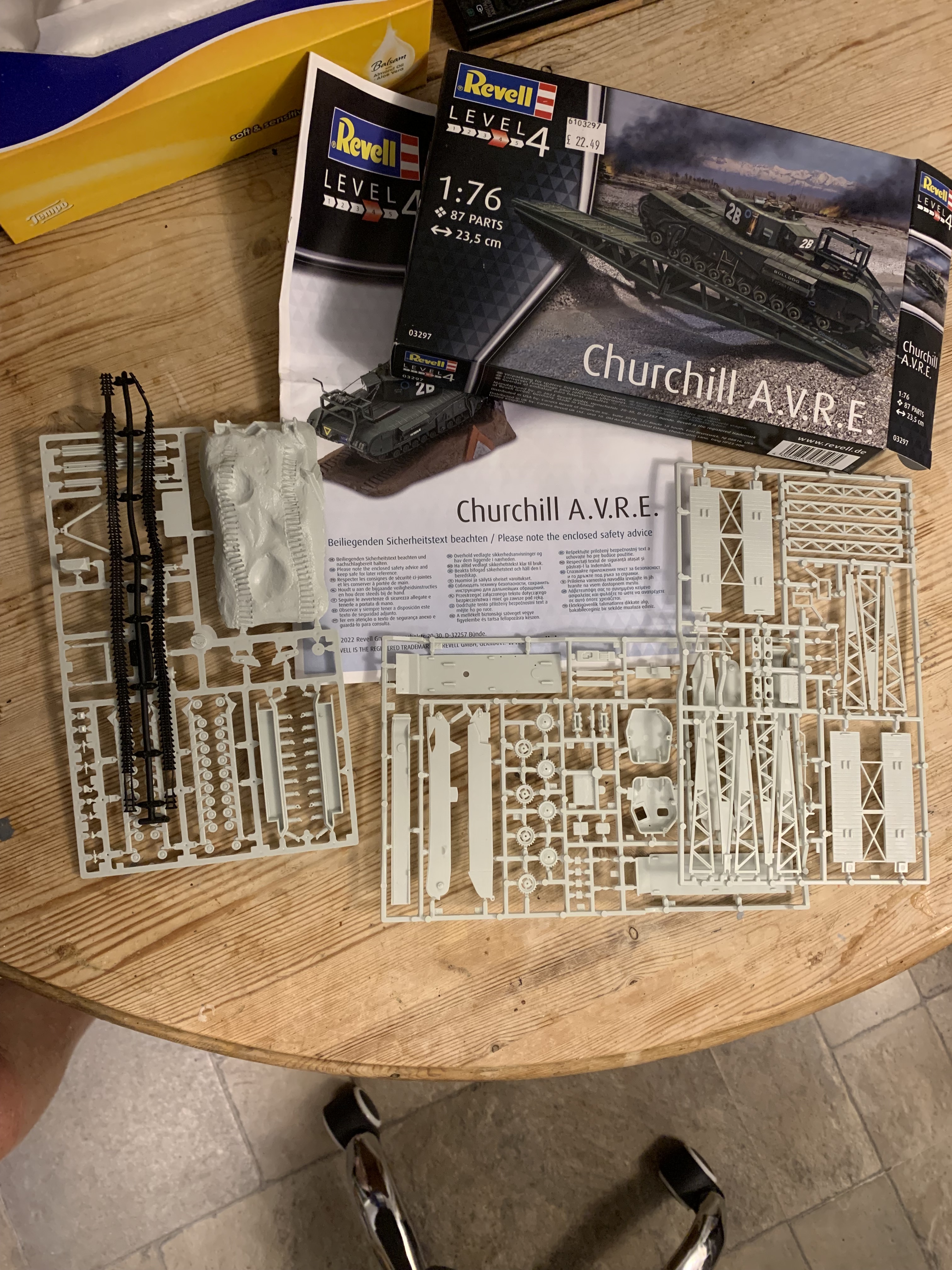 Found this while buying paint for another build. Never built armour from Revell before. First acquaintance suggests an old kit (edit:Scalemates says old Matchbox kit from 1983), plastic is soft, injection gates are large and part numbering almost impossible to see. Fit so far is pretty good, but I can’t assemble too much as the only colour I don’t have is bronze green. Will build it as a unit of 5th Assault Regt, 79th Armoured Divn, landed on Juno Beach around 09:00 on 6th June. I will use this in my refit of my LCT(5), I already have two AVRE Churchills for it, now need a Sherman Crab.