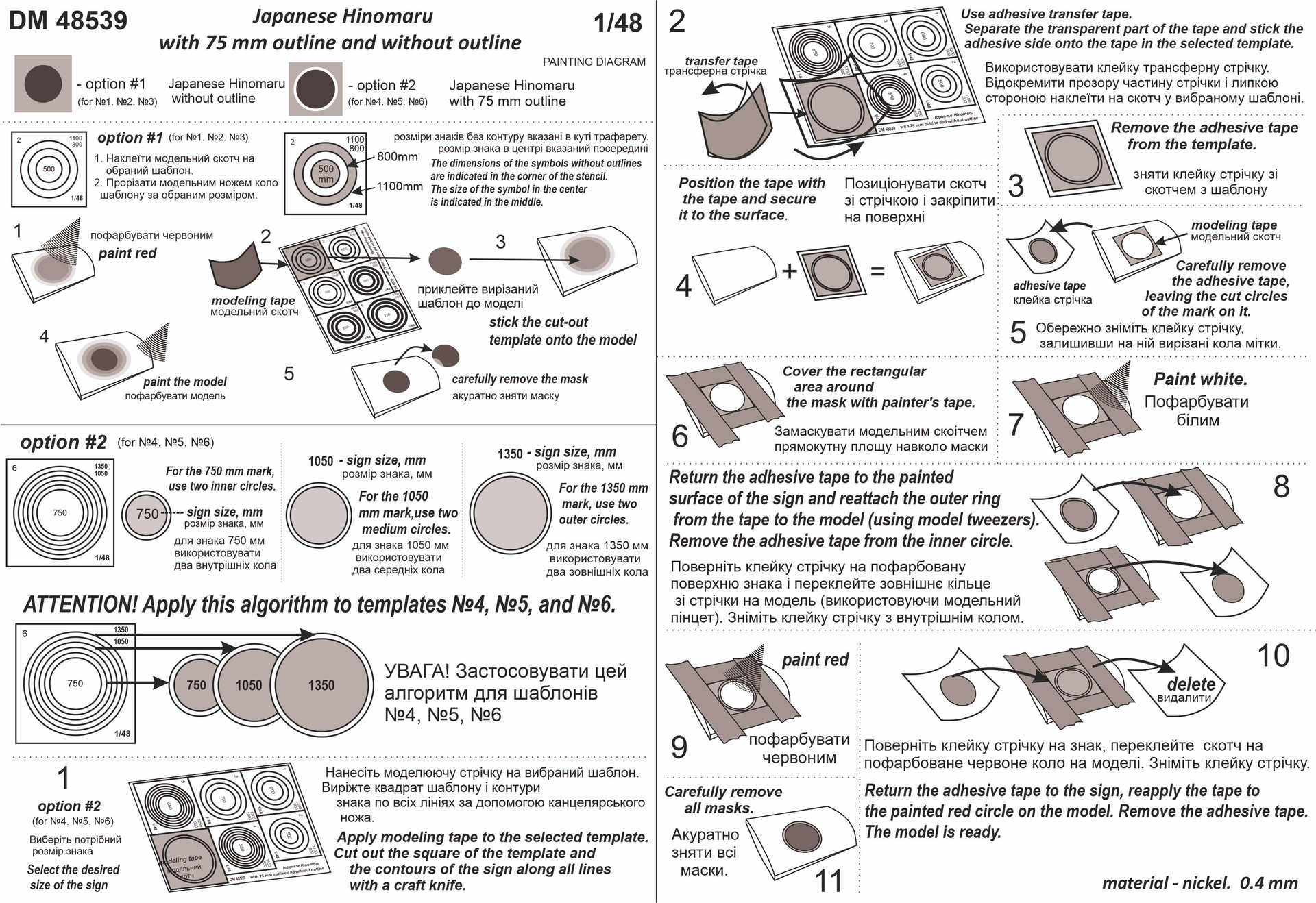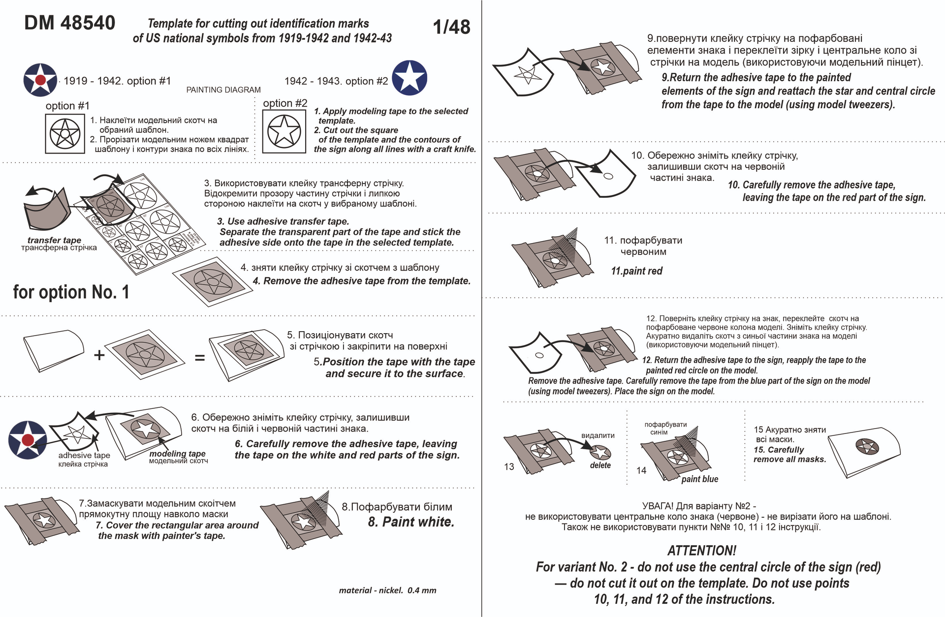 DM 48538 - Template for cutting out identification marks for US national symbols from 1943 to the present day.Material - АLPAKA 0,4мм (nickel), 1/48