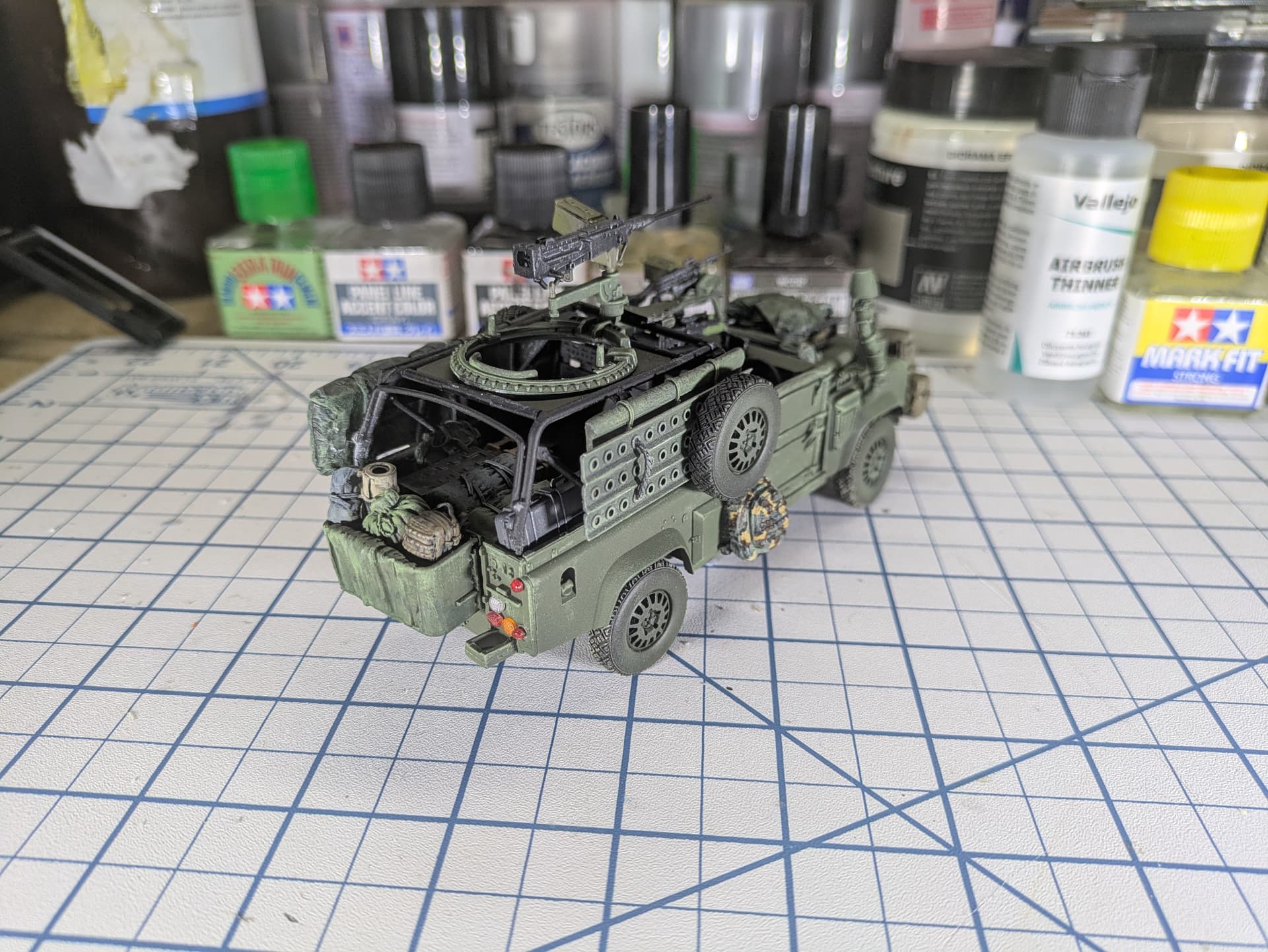 With regards to the TUAAM aerial box on the wing/fender, that will date your finished vehicle as it relates to the Clansman radio system (probably no later than 2005). Later vehicles were fitted with the newer Bowman system. The Clansman rig would be unlikely on a vehicle fitted with any of the kevlar armour pages such as the doors you’ve fitted because this started to arrive later than 2005. I think (and am open to correction on this) that vehicles fitted with the kevlar panels and doors were also equipped with a belly armour plate. The later R-WMIKs definitely were, but they also had a redesigned cargo bed floor.