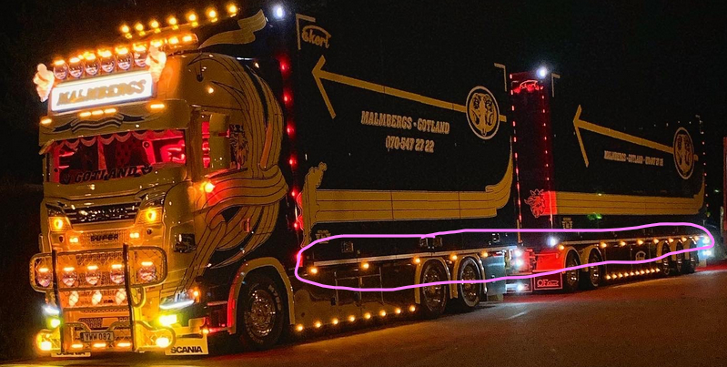 Some truckers really like lights but the ones circled in pink are the side lights required by law: