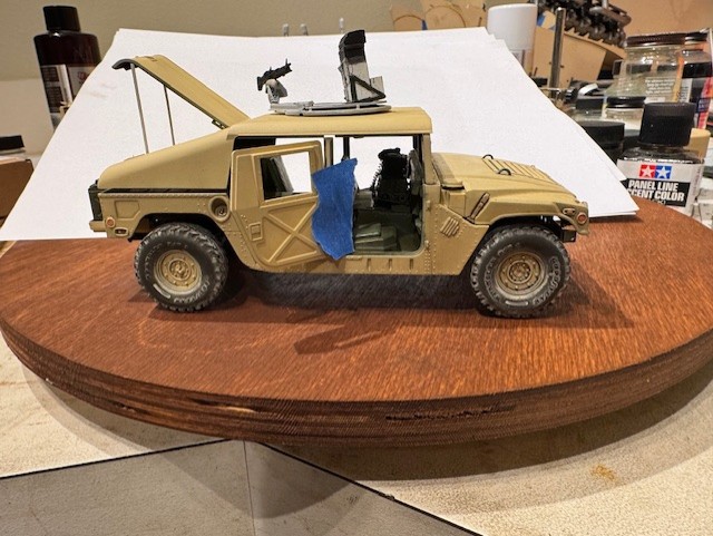 I am building a model of Humvee a friend of mine used in Desert Storm. He was part of the Tuskers and served in a scout platoon. His vehicle was unique in that it had a tank thermal sight from an M60 mounted in the roof. He says it was one of only four vehicles modified that way. He also had extra radios with two rear mounted antennas. I have been scratch building his modifications using the Tamiya 1/35 scale vehicle as the foundation.