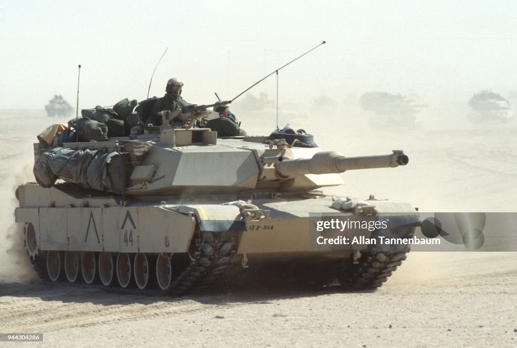 The rear, upward pointing chevron was called the Coalition Chevron and was worn by all vehicles in the allied coalition. The forward, down facing chevron is likely a unit marking. Many vehicles had both. The smaller unit one changed direction to denote platoon or company that it belonged to. For example, up could be 1st PLT, right 2nd PLT, etc.