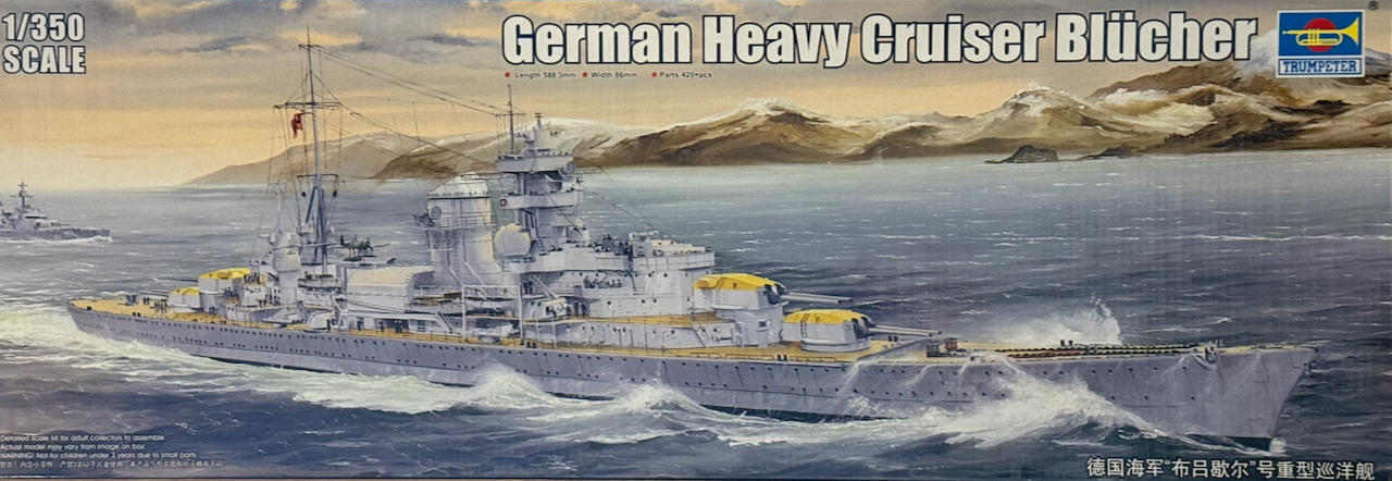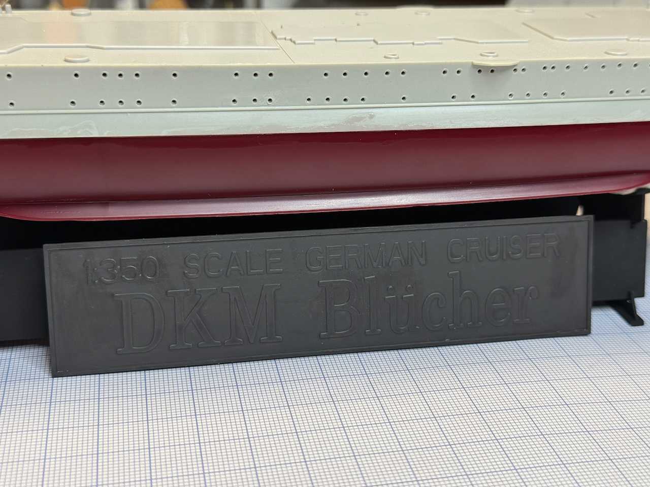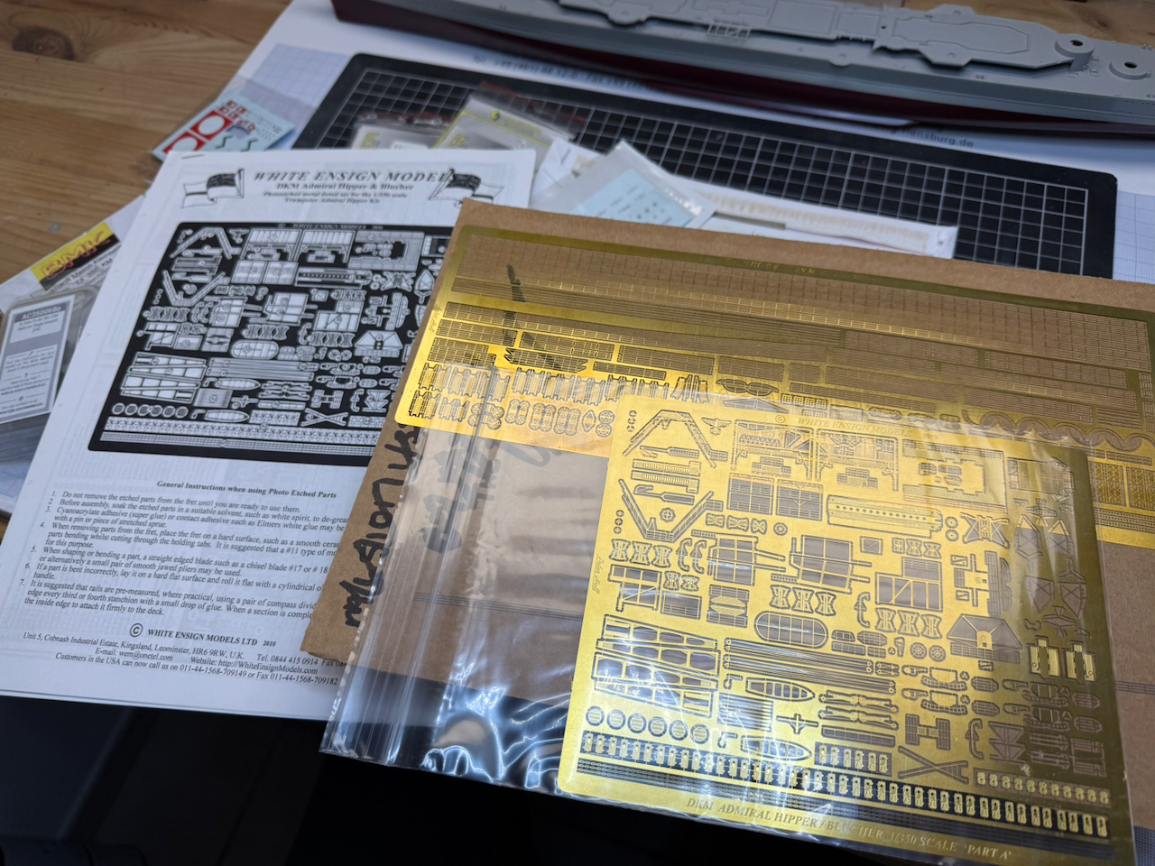 We have seen those beautiful builds of Prinz Eugen (from Russ) and Hipper (from Si), but there is no Blücher yet and I don’t really see builds of here posted elsewhere. As Blücher is one of the better known ships, I assume the reason for that is the Trumpeter kit, which shows here almost as a 1:1 copy of the Hipper, with only very few altered parts. Especially for the hull, this is wrong, as the Blücher got her so called “Atlantic Stem” very early on, and her hull lines were more like those from Prinz Eugen than from Hipper. Trumpeter however has Hipper and Blücher with identical hulls.
