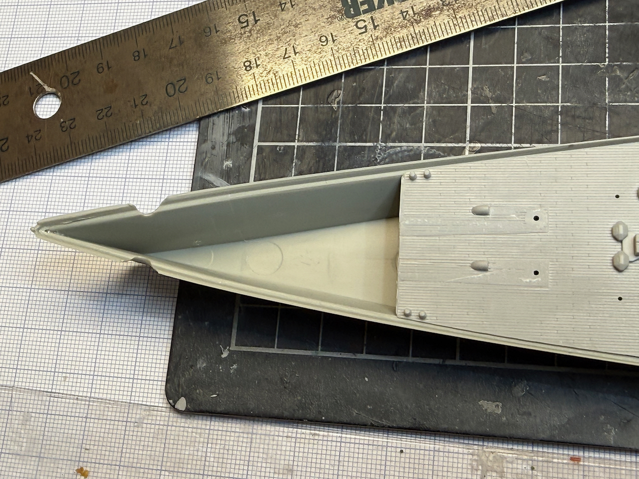 The after part of the Blücher deck fits neatly into the Prinz’ hull.