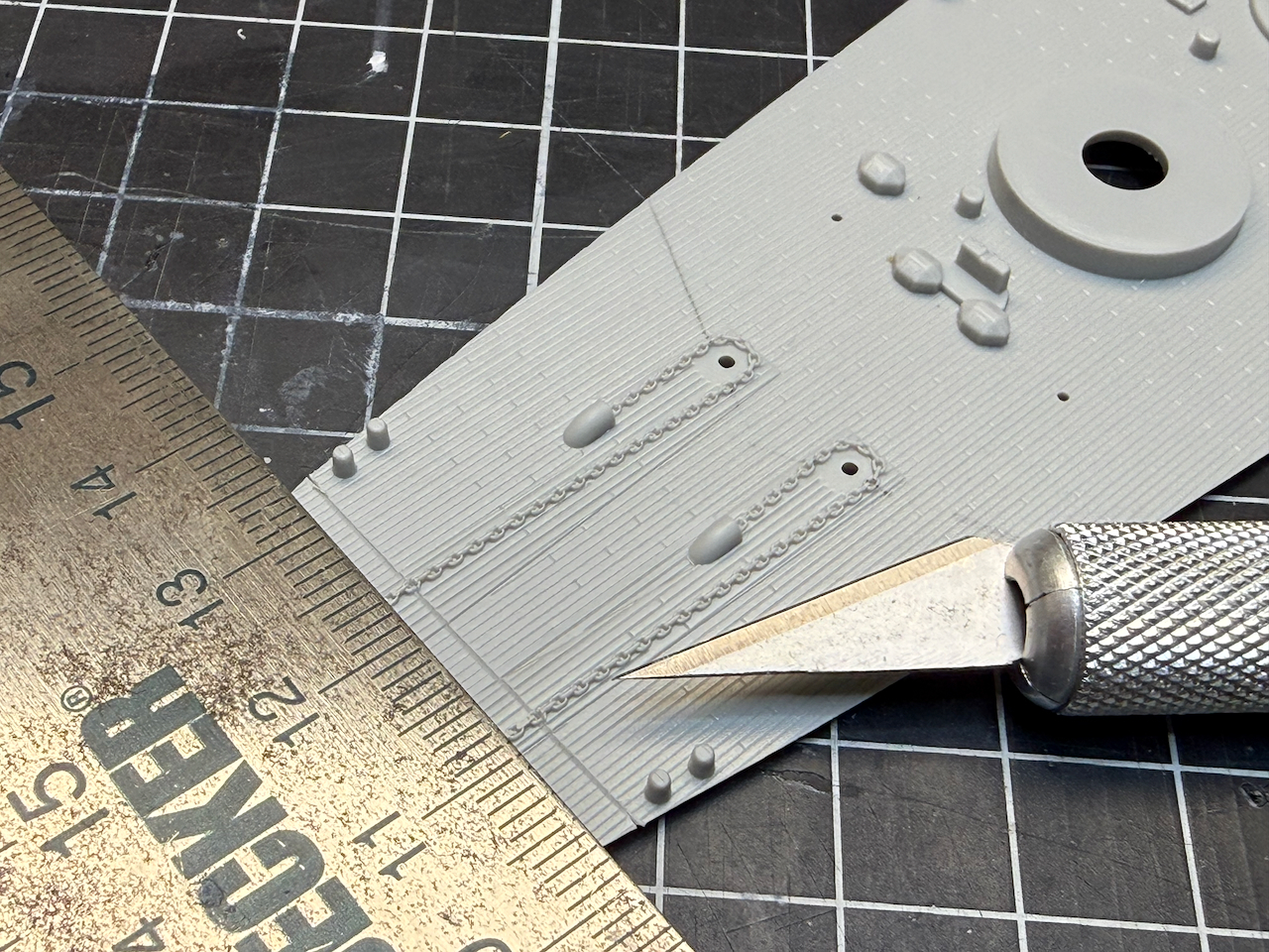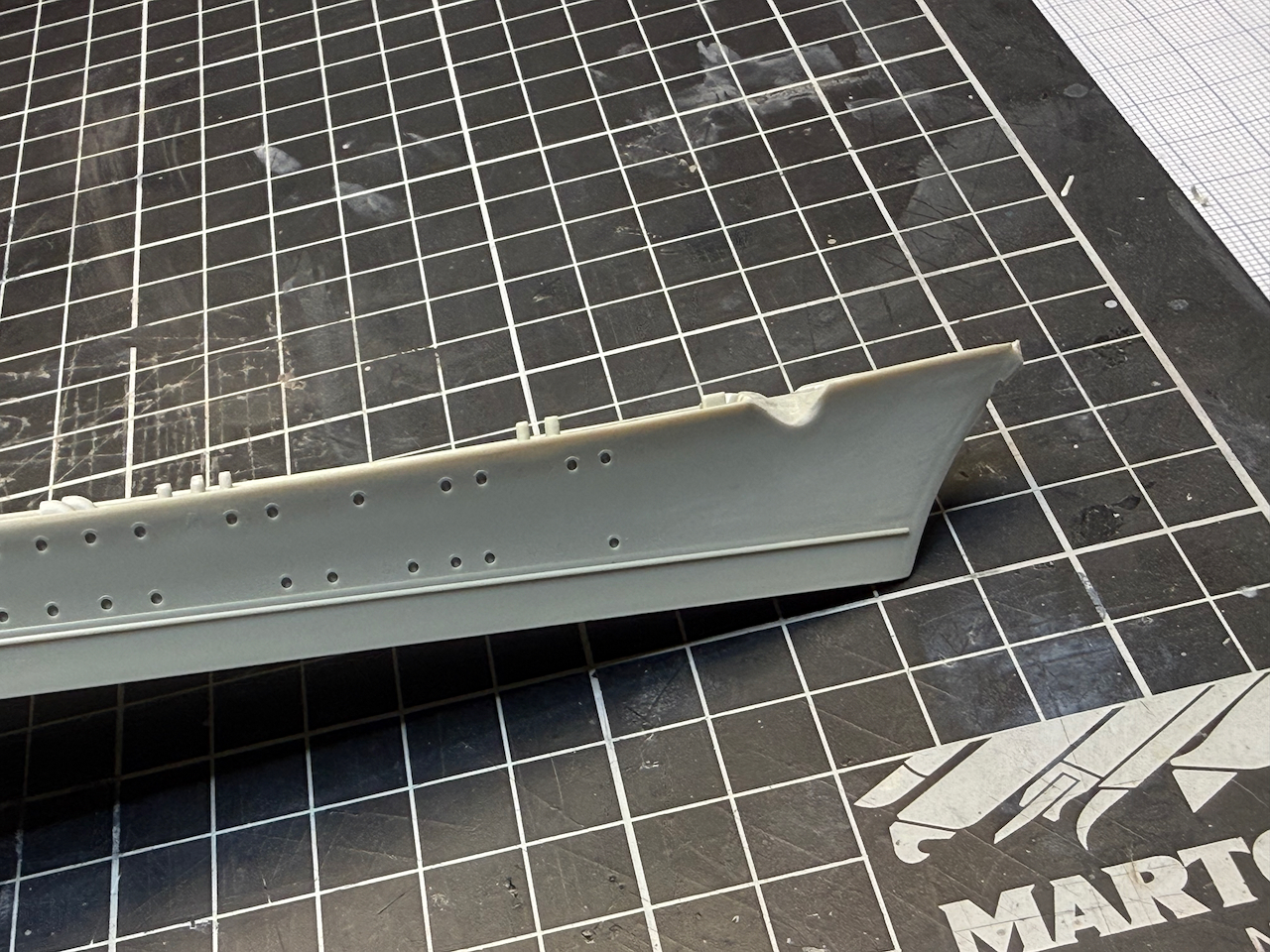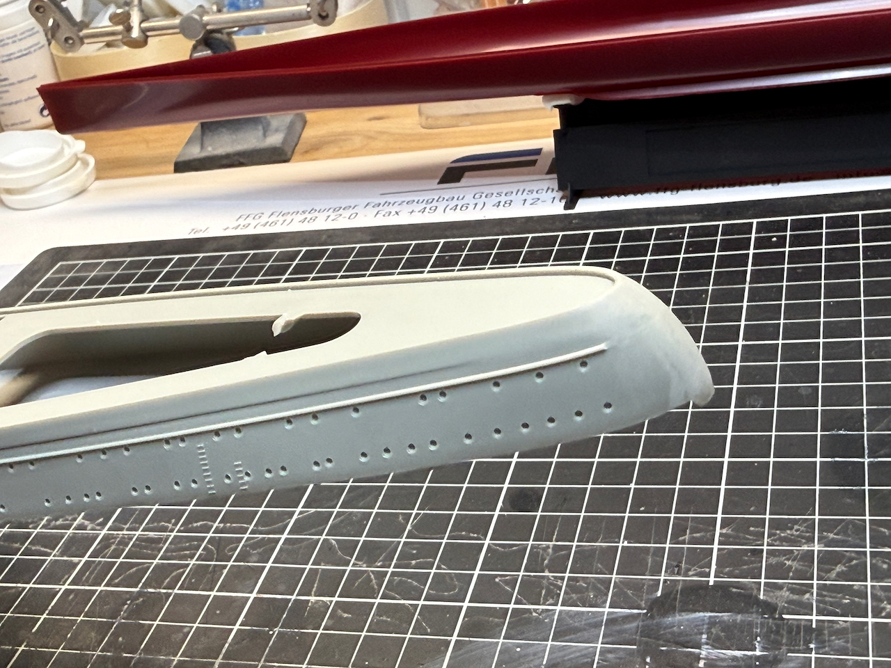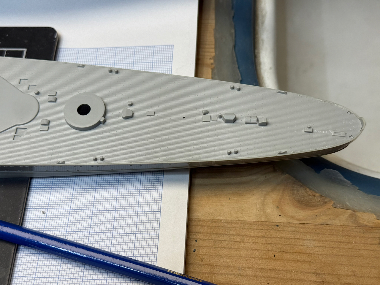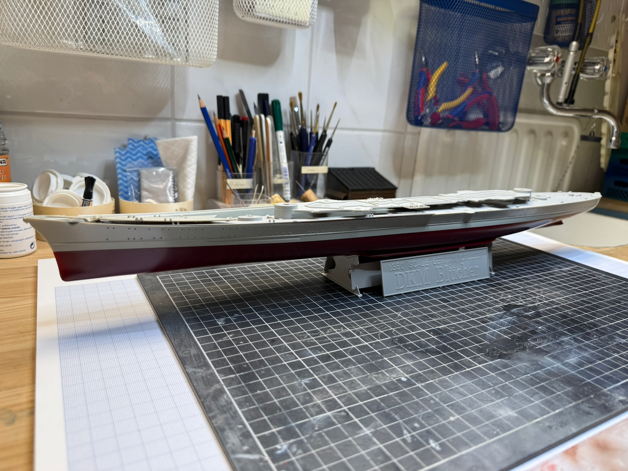 So the first challenge was to cut the forward part of the Blücher deck, cut back that front part from Prinz Eugen at a feasible position and fit the parts into the hull. But more about that in a minute.