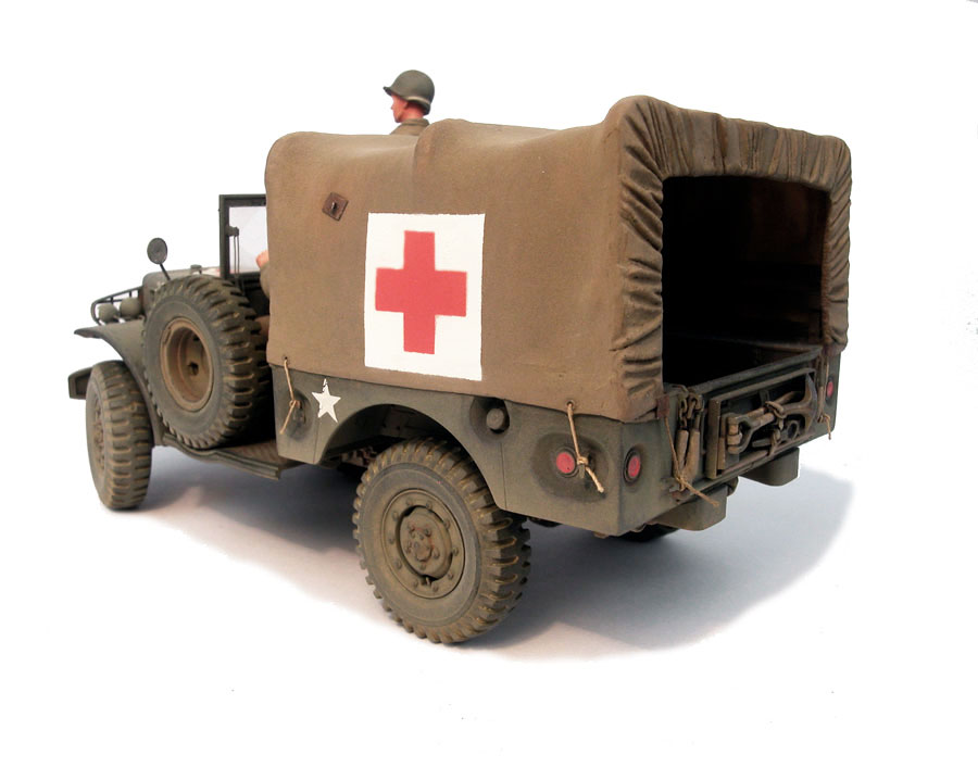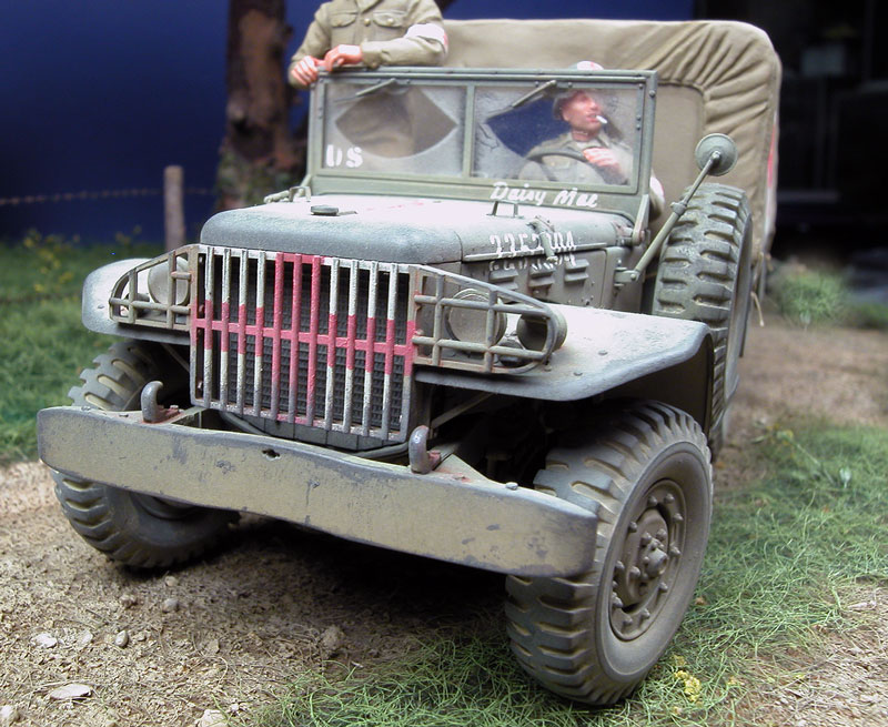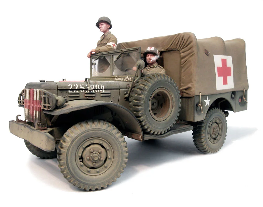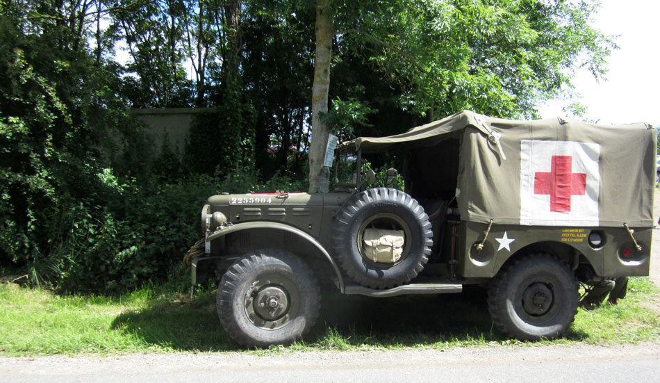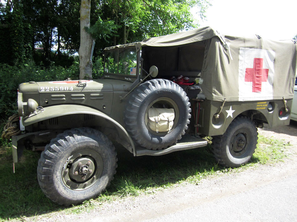 My Dodge continues its progress inland…On this Dodge, the tool support frame is fixed at the front and not on the rear panel.Many years later after having built my Dodge while I was attending the D-Day commemorations, I came face to face with this vehicle! What was my pleasure to approach one in this Detail of the red cross painting on the grille.Many years later after having built my Dodge while I was attending the D-Day commemorations, I came face to face with this vehicle! What was my pleasure to approach one in this Detail of the red cross painting on the grille.