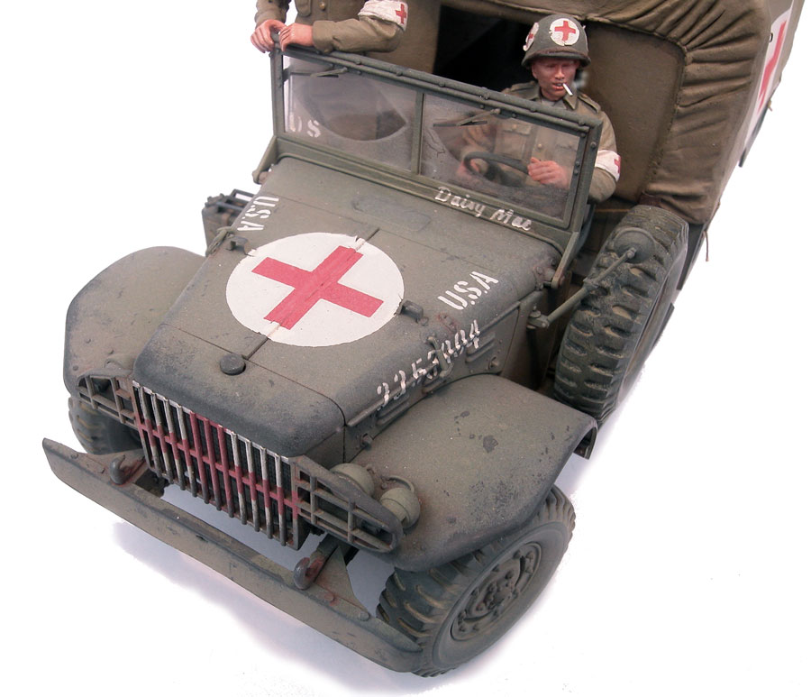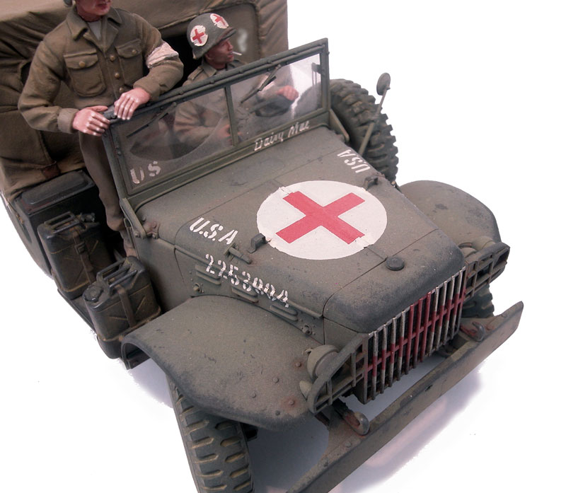 A red cross in a white circle is painted on the engine hood for aerial identification. Nowadays with all the masks that exist, it will be easy to