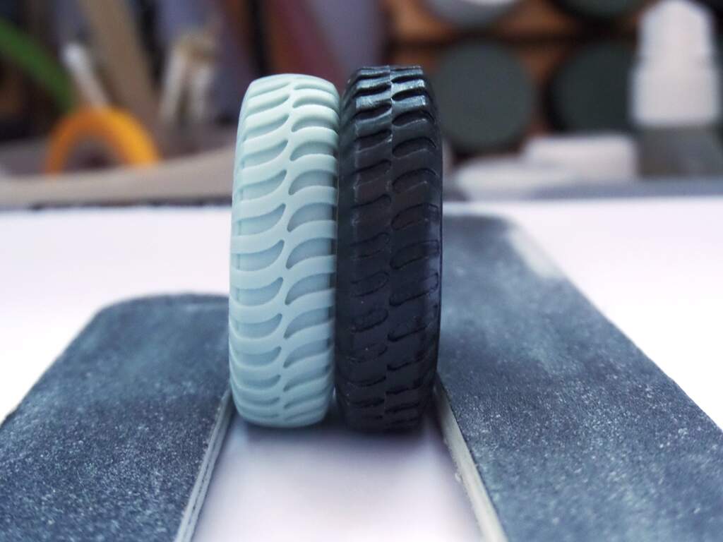 Here are a couple of pics of the wheel differences, as you can see there is quite a difference in height between the two which could be the difference in ride height. Also a quick pic of how far I have got, there aren’t really a lot of parts to this kit. It’s quite a big empty box!