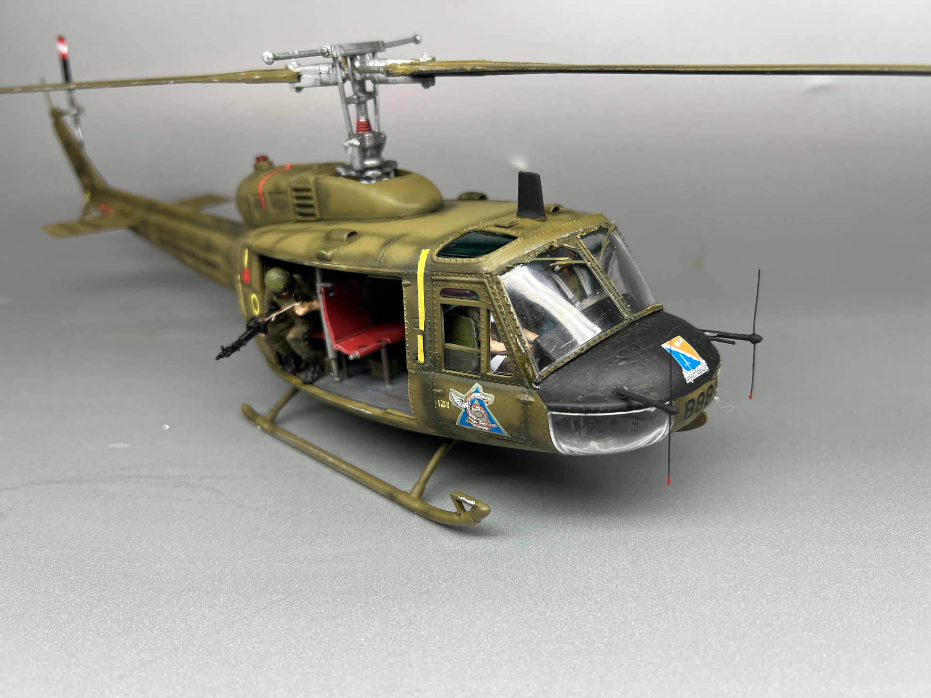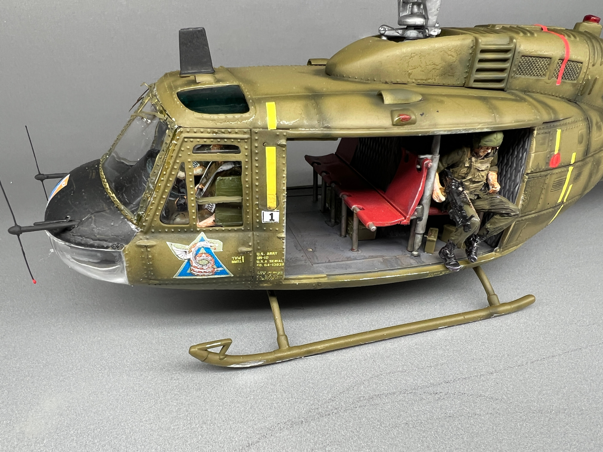 I’ve finished the 1/35th scale Dragon UH-1D that I’m building as Medal of Honor winner Maj. Bruce Crandall’s helicopter from the battle of Ia Drang known as Ancient Serpent Six. I think it turned out great and makes a good representation of the helicopter he flew in the battle.