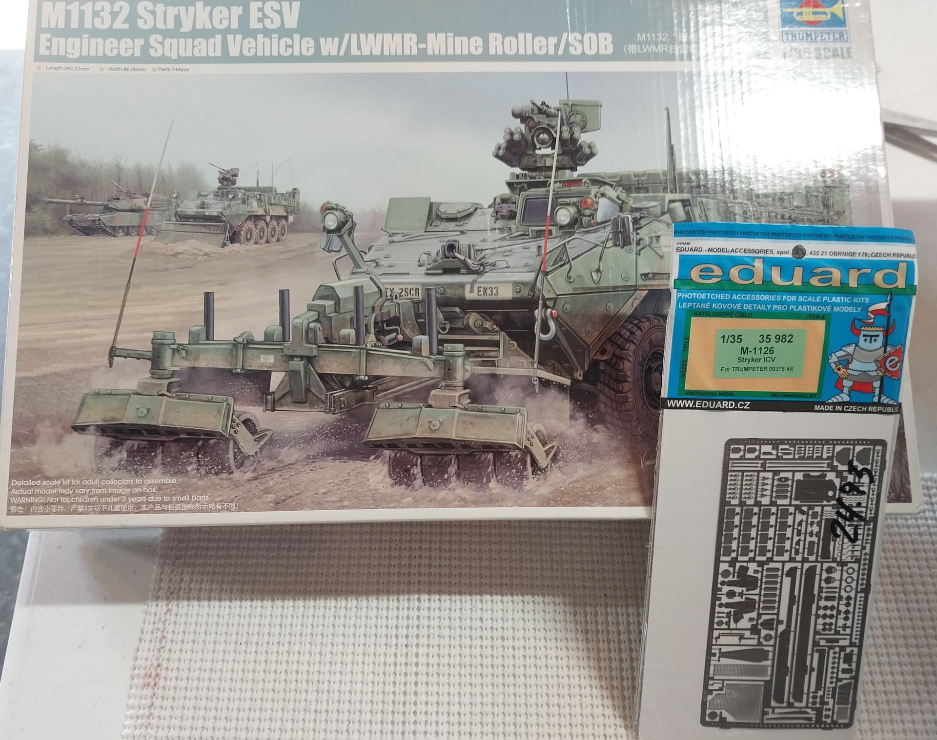 - Trumpeter Stryker 1132 ESV with Eduard PE set (original Trumpeter PE set missing from box original owner must have needed it more than me when I traded) - $35