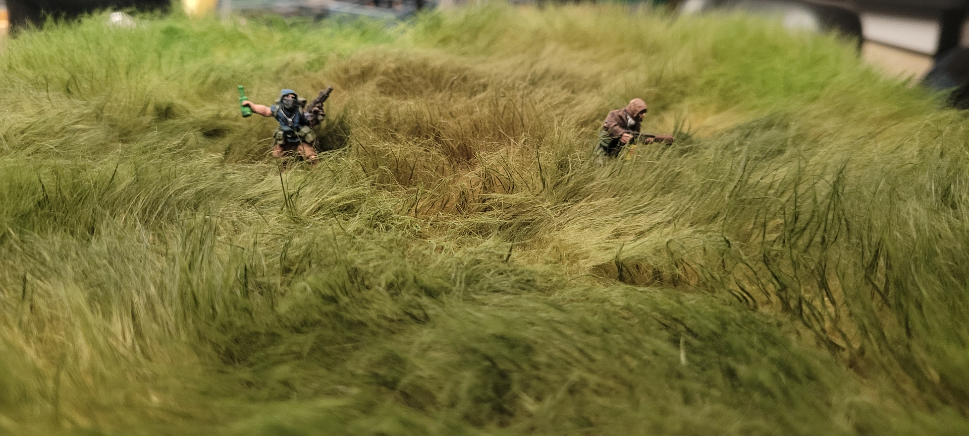 That’s possibly the best grass I’ve ever seen, brilliant work. Nice colour variations and it even gives the impression of a breeze blowing it around. I also like the figure positions and the implication they’re not alone. Bravo ![]()