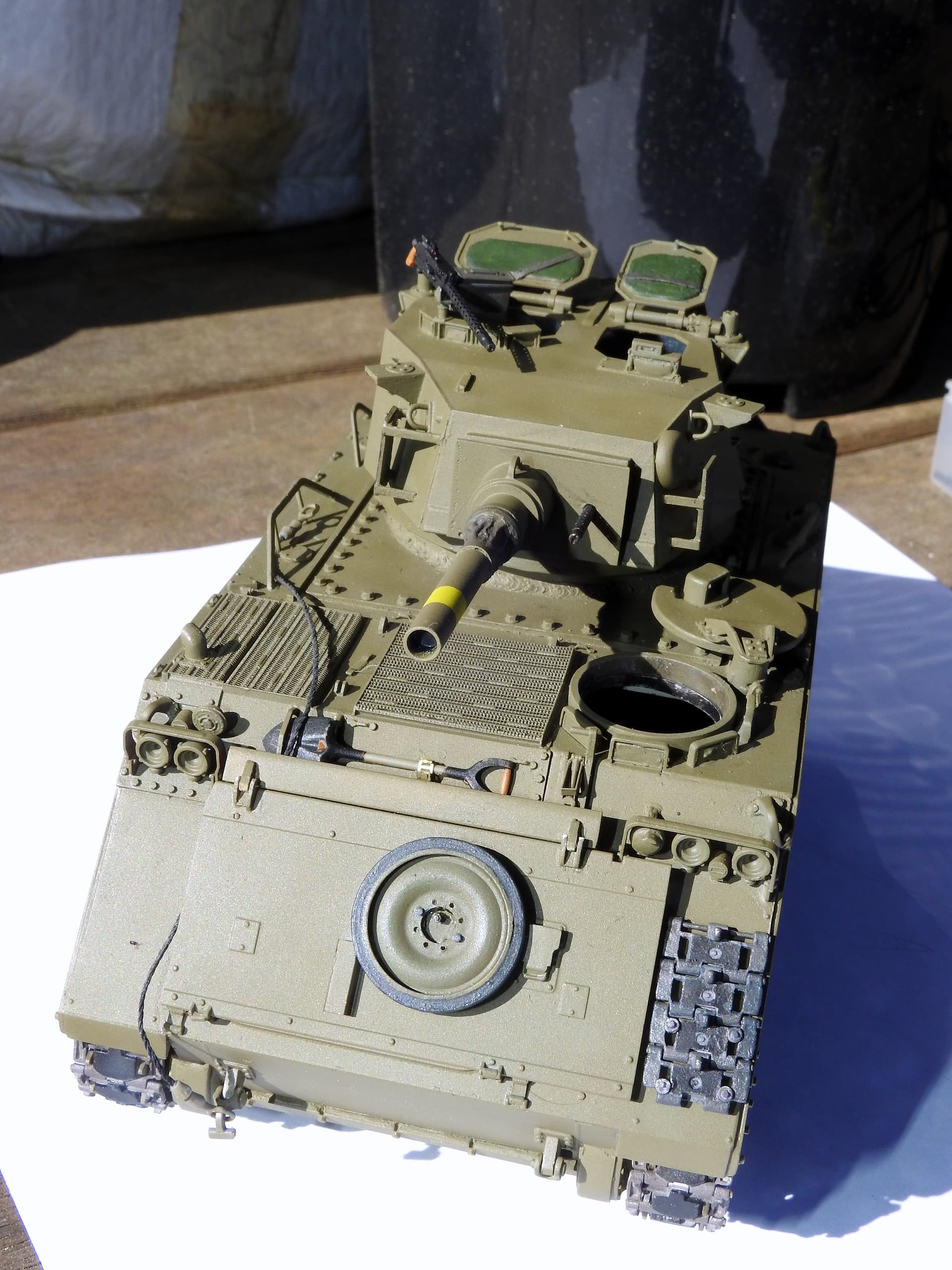 I am currently working on the exterior and other than Jason Miller’s (Arms Corps Models) excellent Aust M113 engine deck and a mod to the trim vane it is out of the box so I will post when this is near completion.