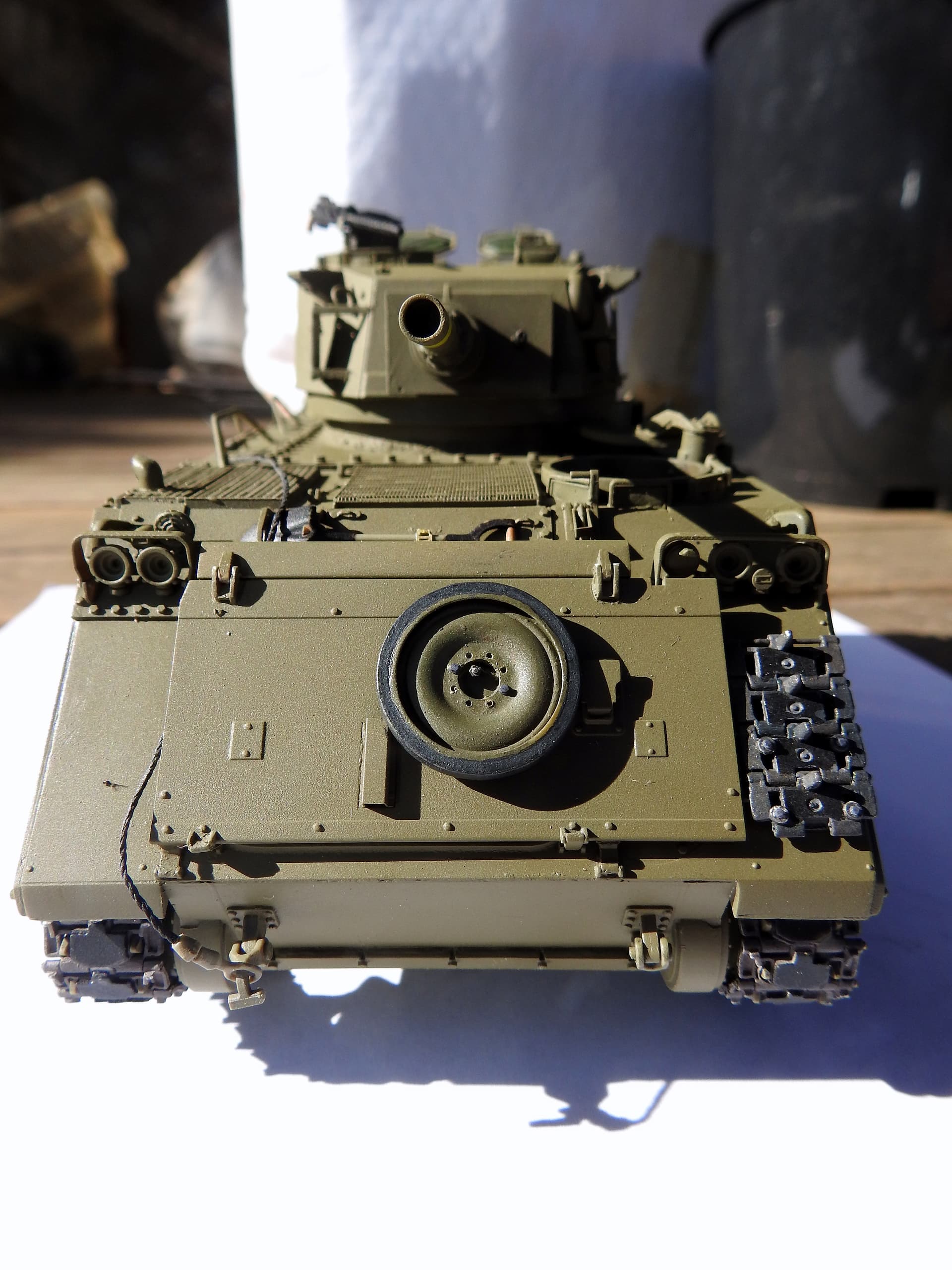 Lastly, I placed the turret on just to get an idea of the overall look, I reworked the weld seam around the turret ring and hull and then a final clean up before the under coat.