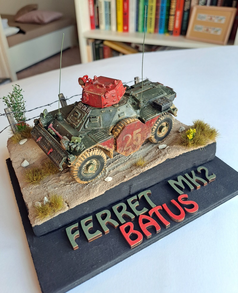 I used watercolour pencils (moss green and grey) and AK’s markers (singal red, olive green) for the minor wears.