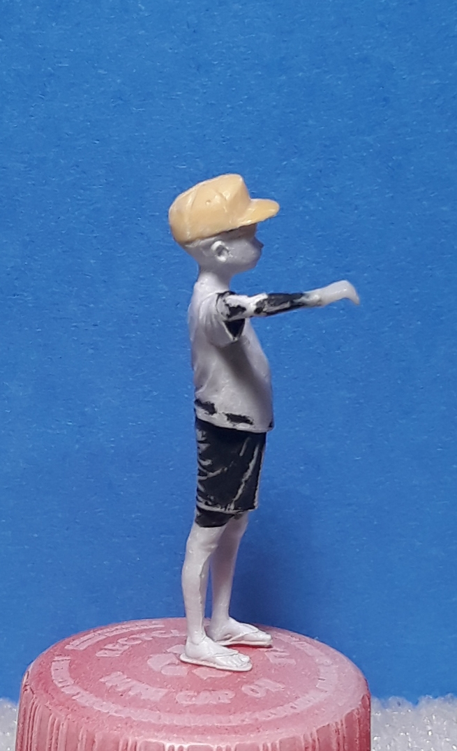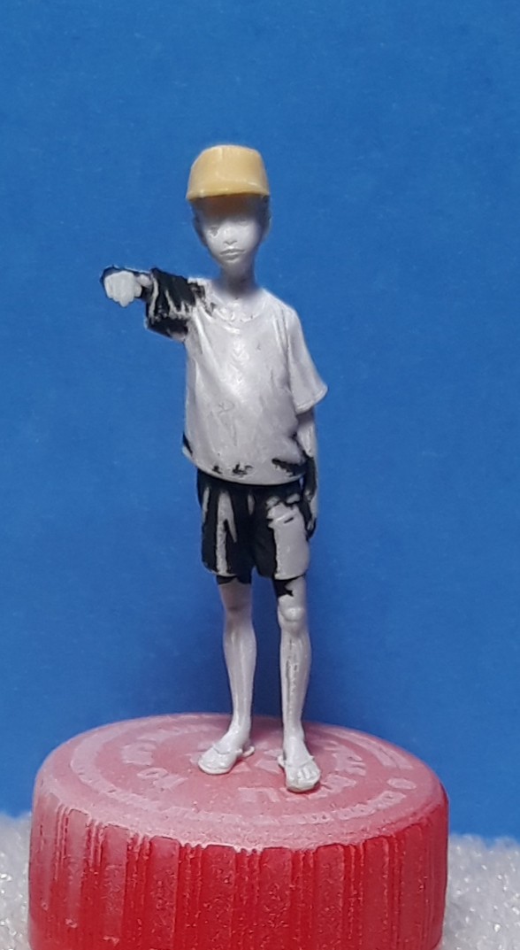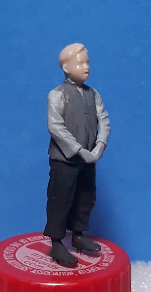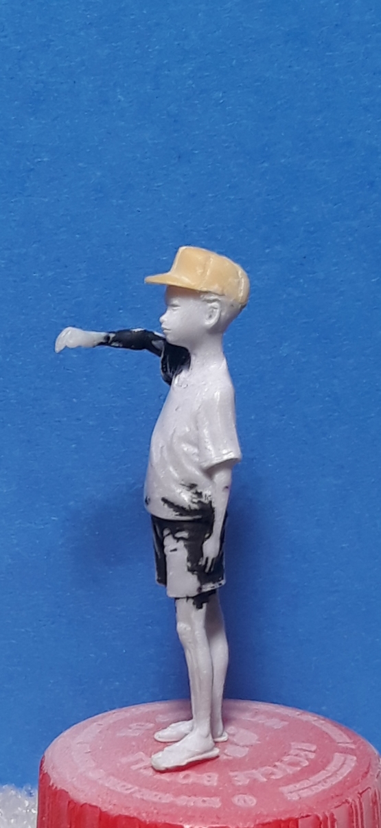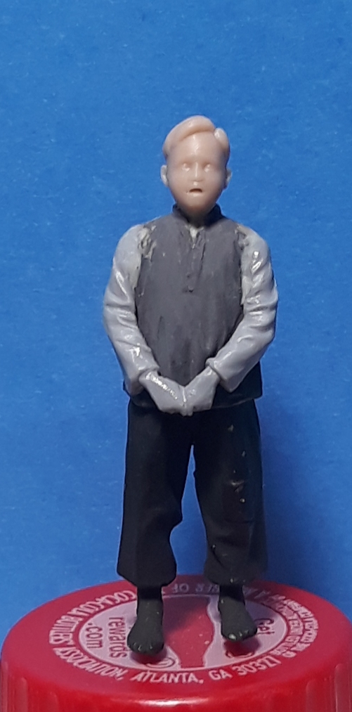 The other boy is from Paracel Miniatures and will be getting his arm checked by a medic. There was a basket on his head that I cut off and replaced with a cap. I cut his right arm off at the end of the sleeve and rotated it. I added a hand from a 1/48 scale figure.