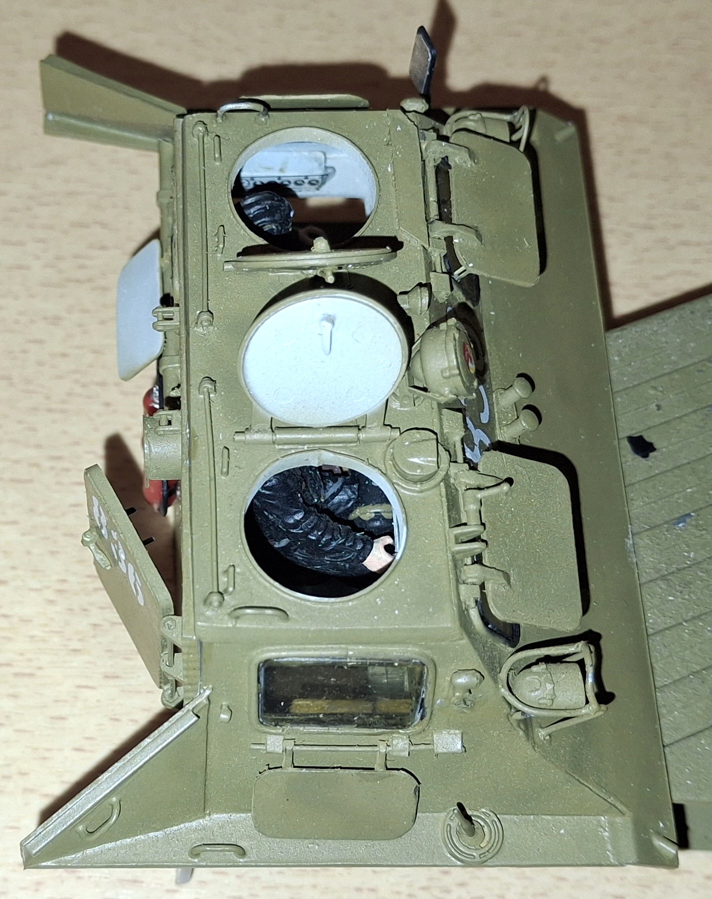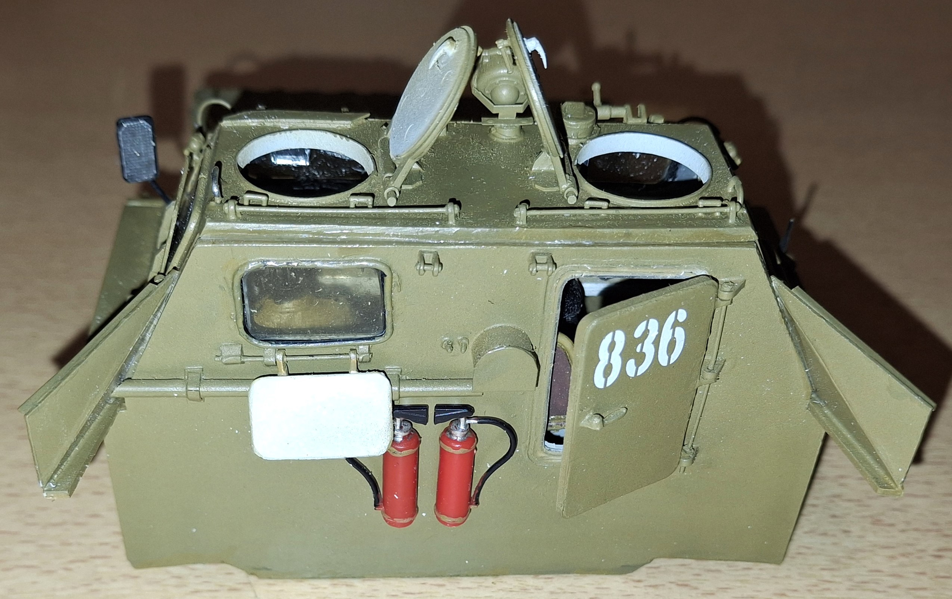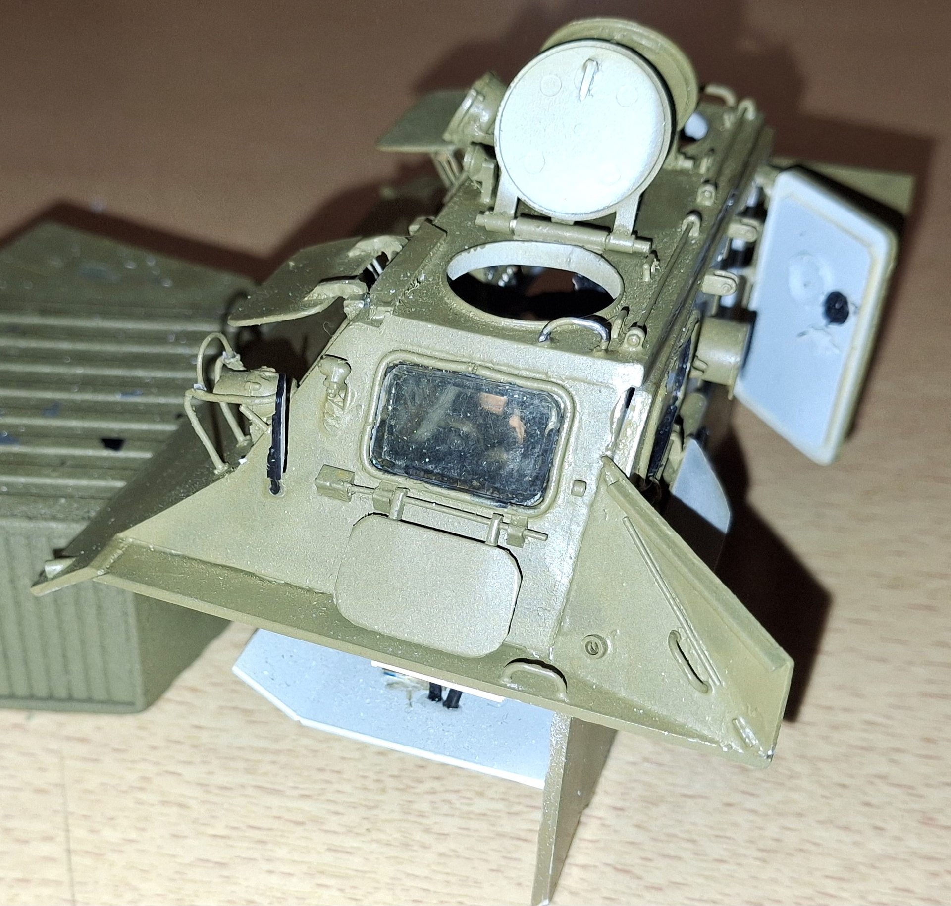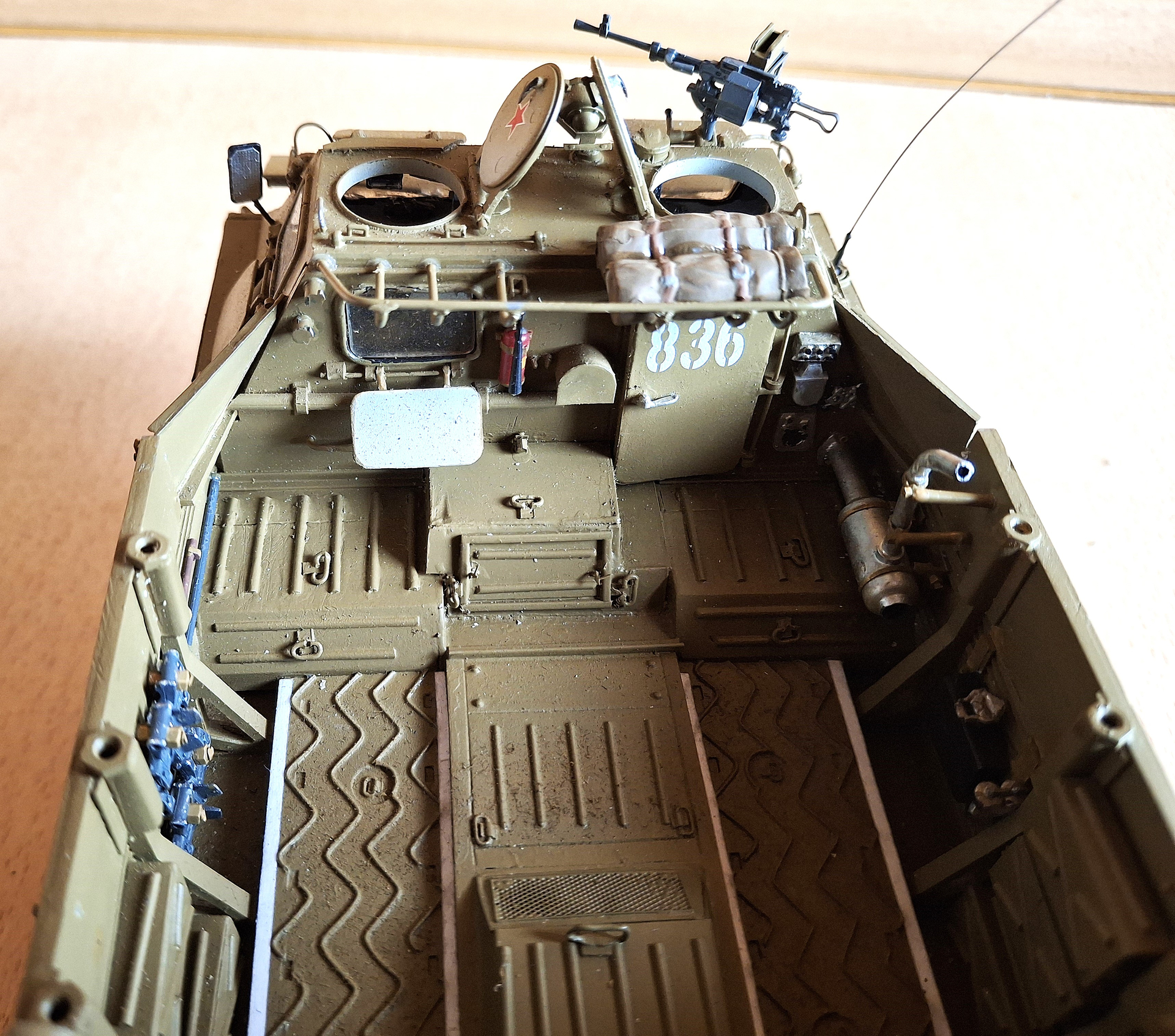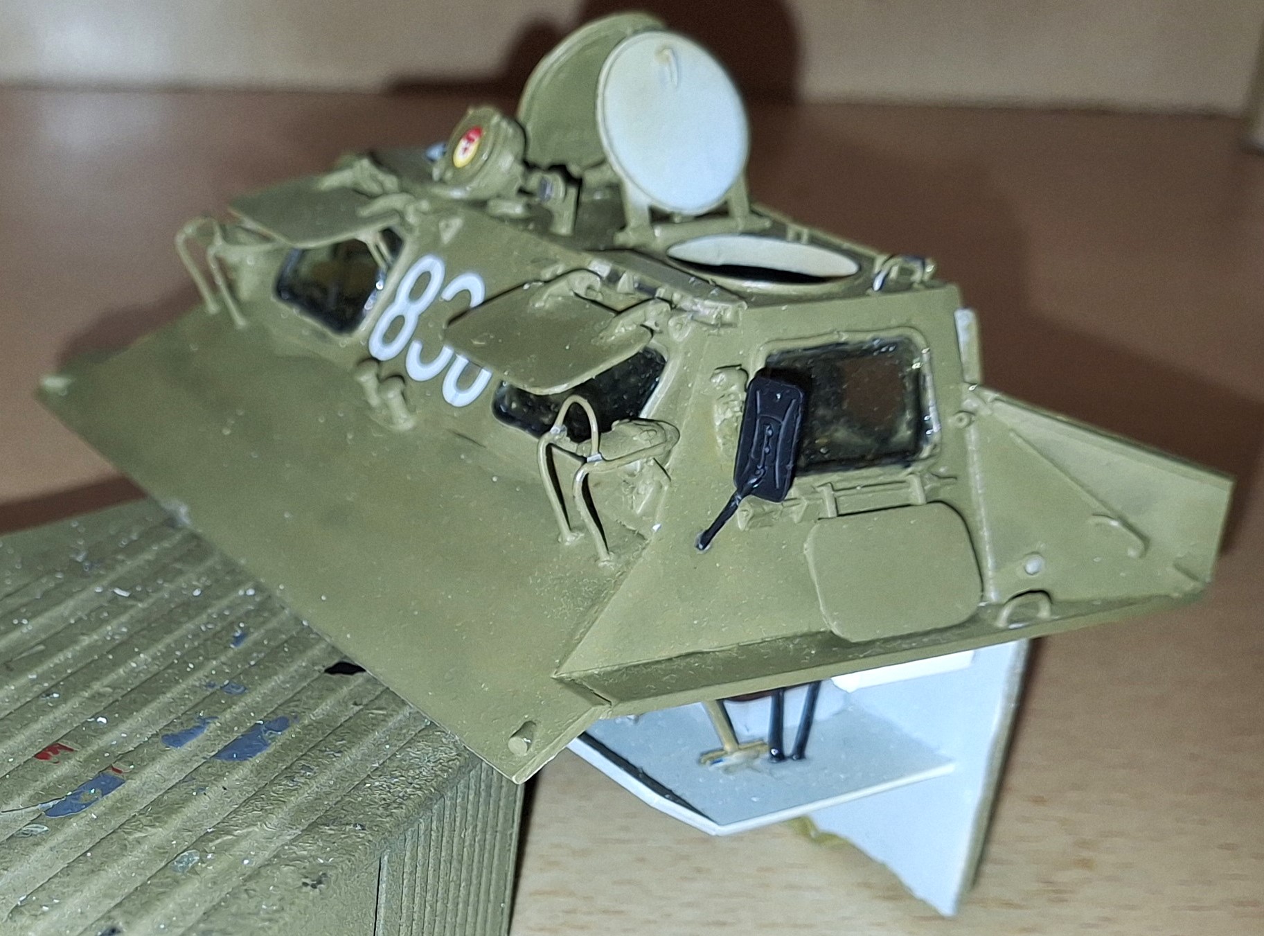 Following the construction of the KrAZ-255 TMM-3, today we continue with another model from the engineering corps of the Group of Soviet Forces in Germany (GSFG) in the former GDR. This is the amphibious tracked transport vehicle PTS-2, the successor to the PTS-M, which was introduced into the troops in the early 1980s. The vehicle is still in service today. I’ve been working on this model for several years, repeatedly abandoning it. A computer crash destroyed all the construction photos, so I’ll only show the most recent ones. The model was built using a PTS-M kit from Minimanfactory, a T-64 kit, and Friul tracks. Construction began with the cabin, which is then inserted into the pontoon. Here are some pictures of the original vehicle and the current state of the model.