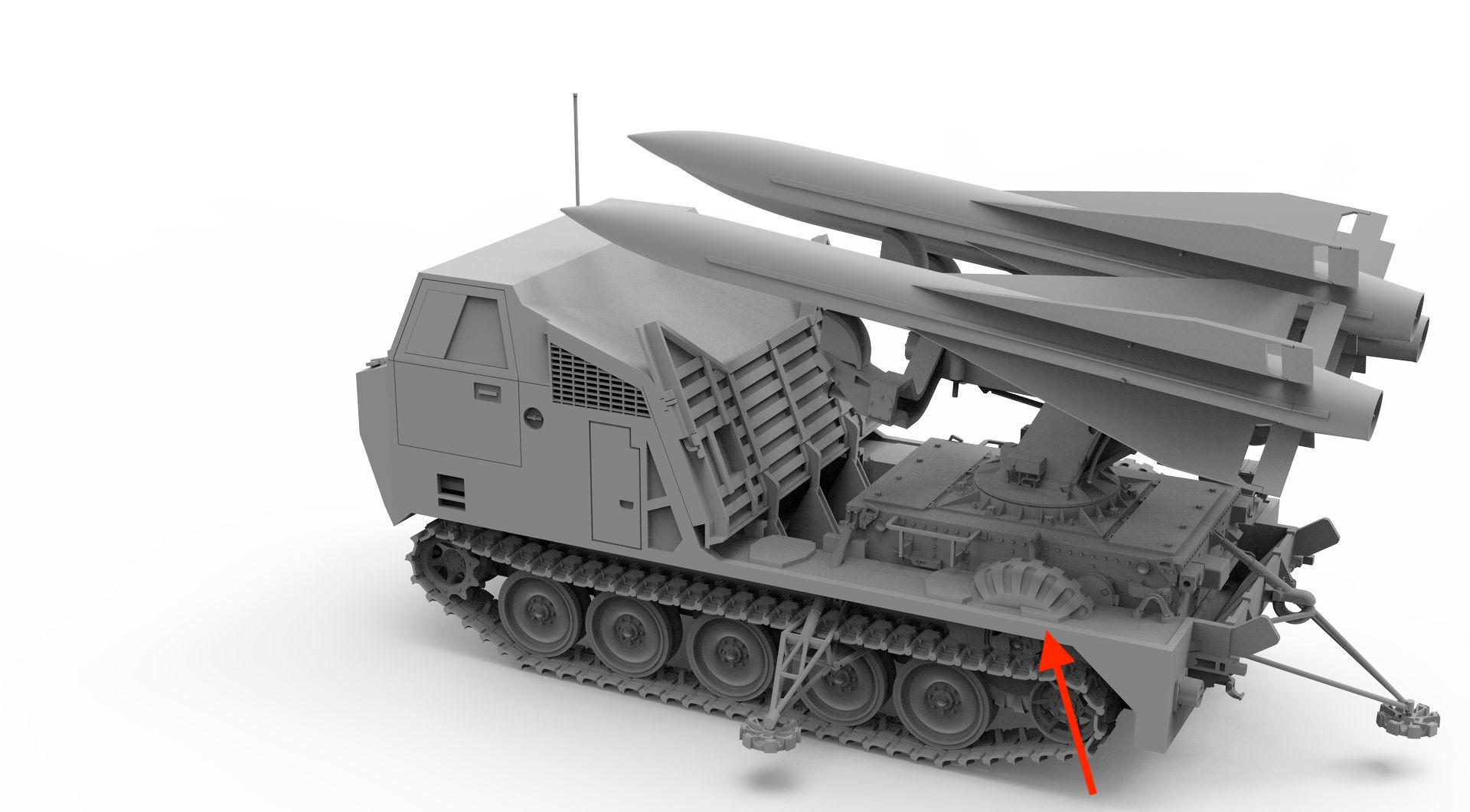 Take the whole launcher design (forget to remove the wheels and the stabilising legs) and merge it into the carrier design so that the bottom of the box rests on the carriers load bed.