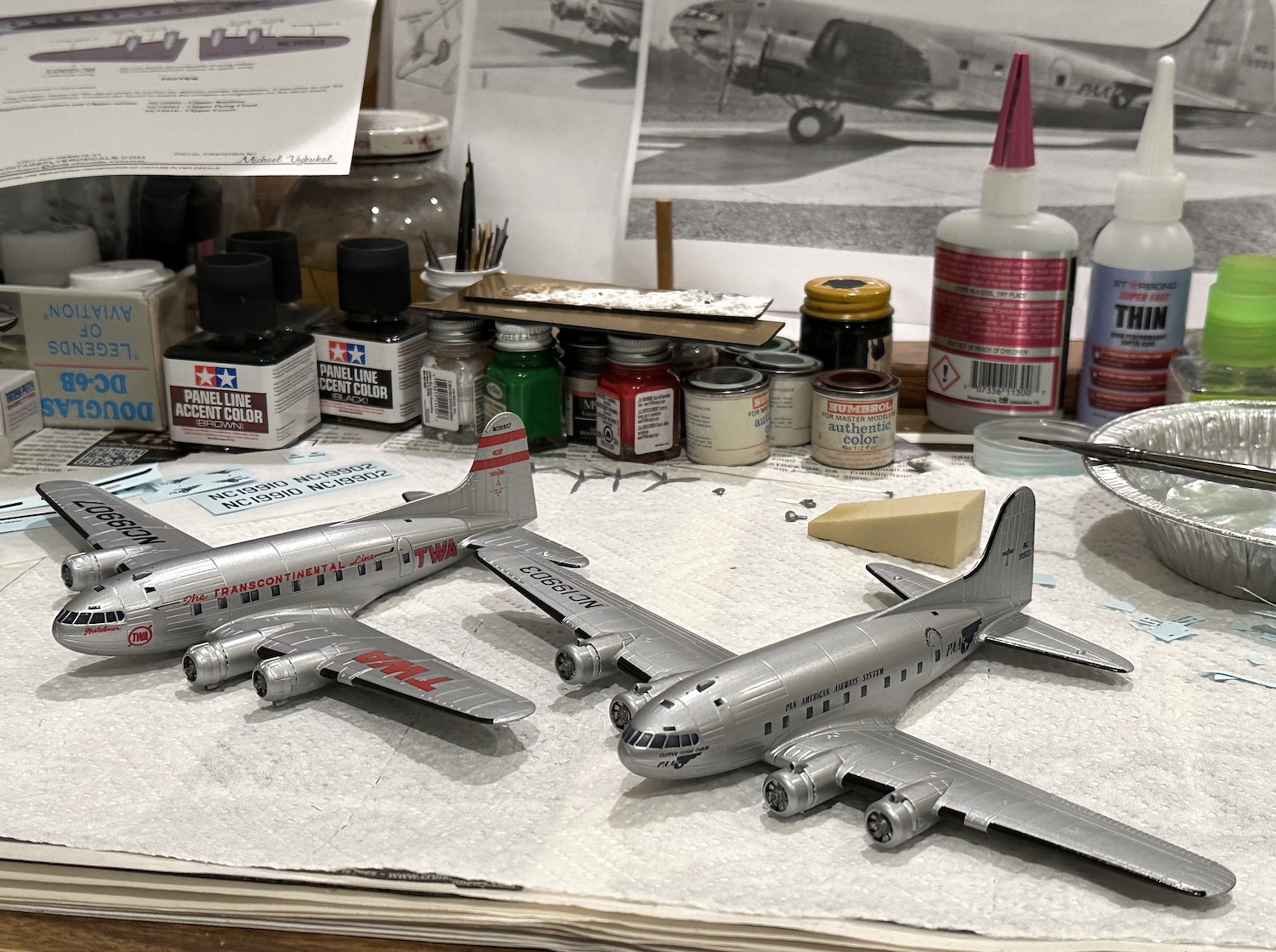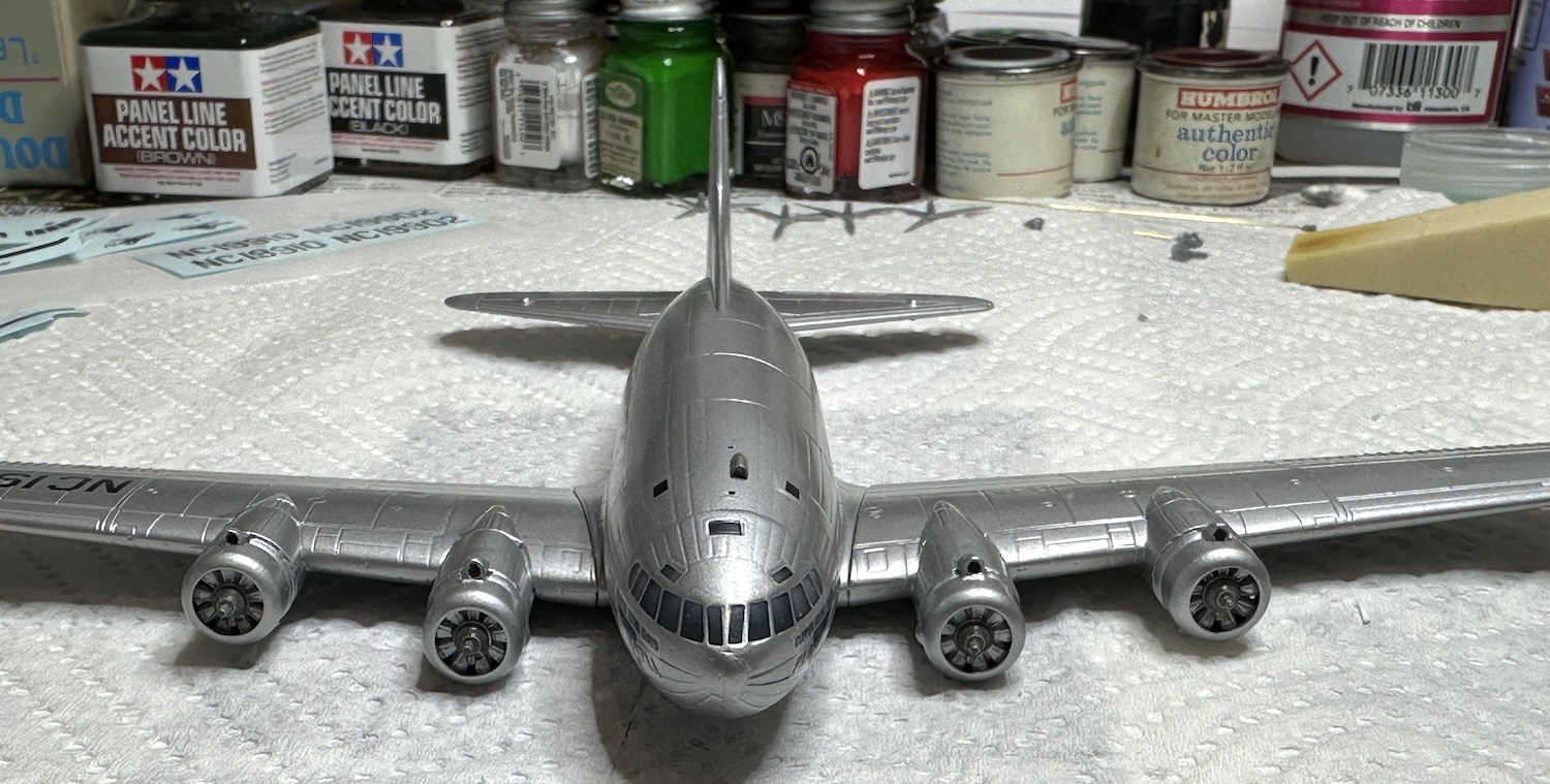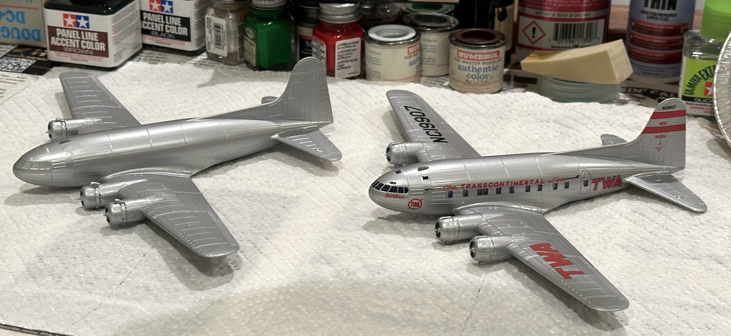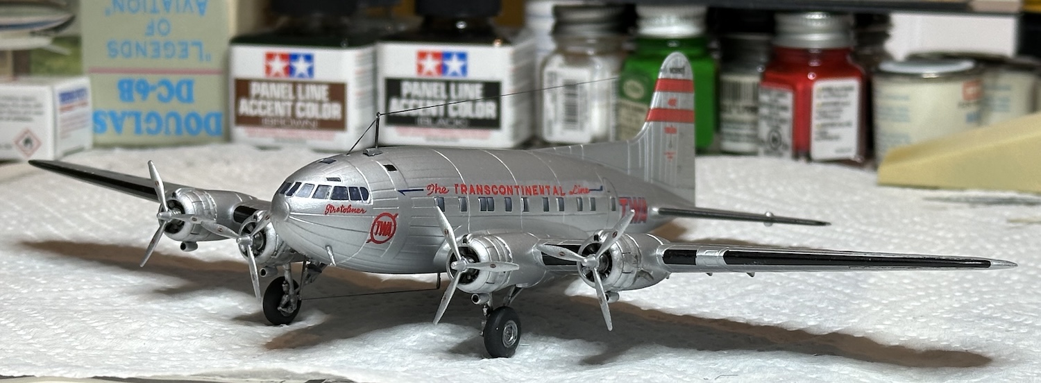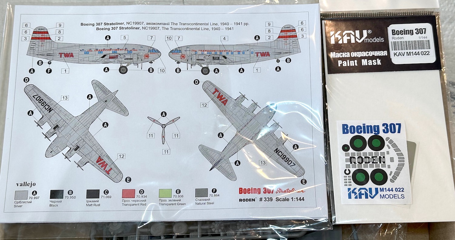 Some more progress was made on the Boeing 307 Stratoliner. This Rodin kit contains parts to make both the TWA version shown on the box art & the PanAm version not shown or even mentioned in the destructions. Vintage Flyer makes some very nice decals for the PanAm version.