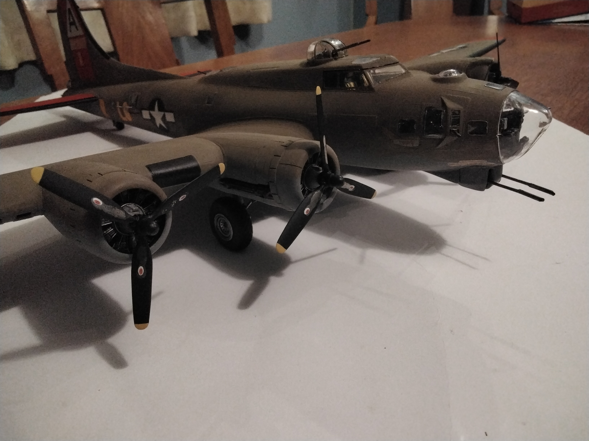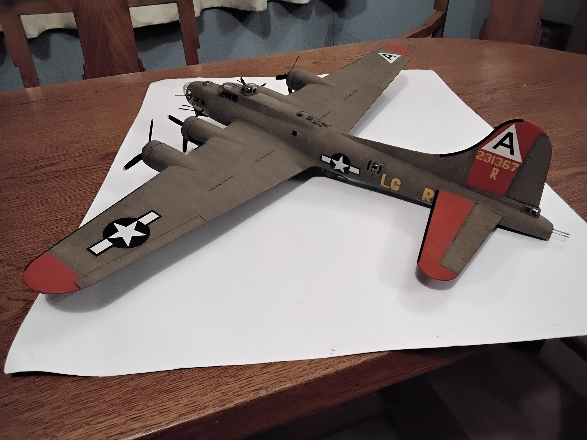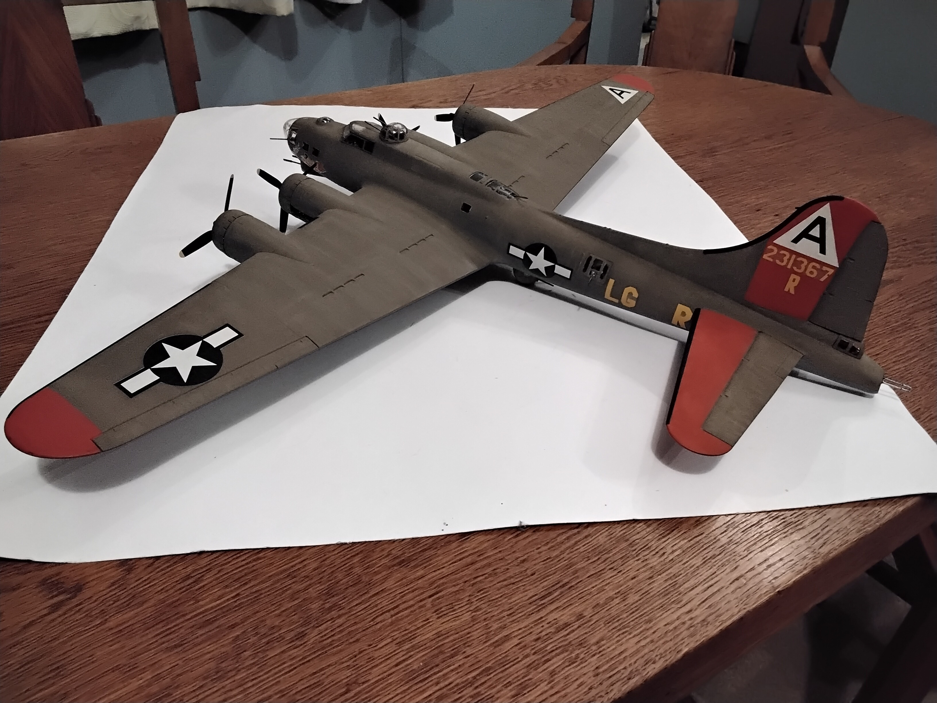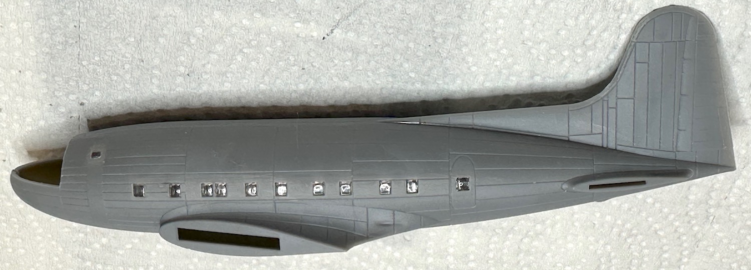 That’s where the project is right now waiting for the TWA decals to arrive from Vintage Flyer. They will be for the post war TWA aircraft which were extensively modified with B-17G wings and horizontal tail surfaces. This kit has the prewar flight surfaces and would need some kit bashing and a lot of work to use the VF decals so I intend to only use the windows from the set.