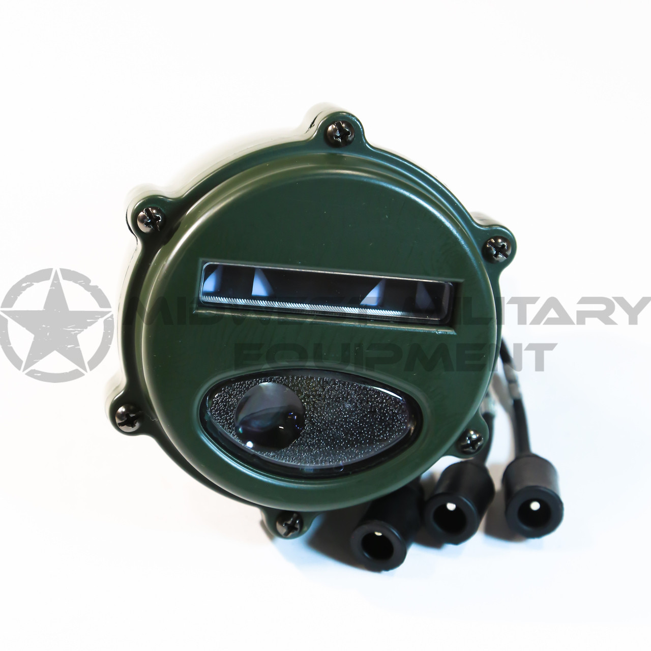 Early M-series lamps with aluminum housings, such as seen above were used on virtually all types of U.S. military tactical vehicles from the 1950s up into the 1980s, though the very last models had plastic housings. In front and fitted with clear oval glass lenses, they functioned first as parking and white blackout marker lights, and later as parking, turn-signal and white blackout markers.