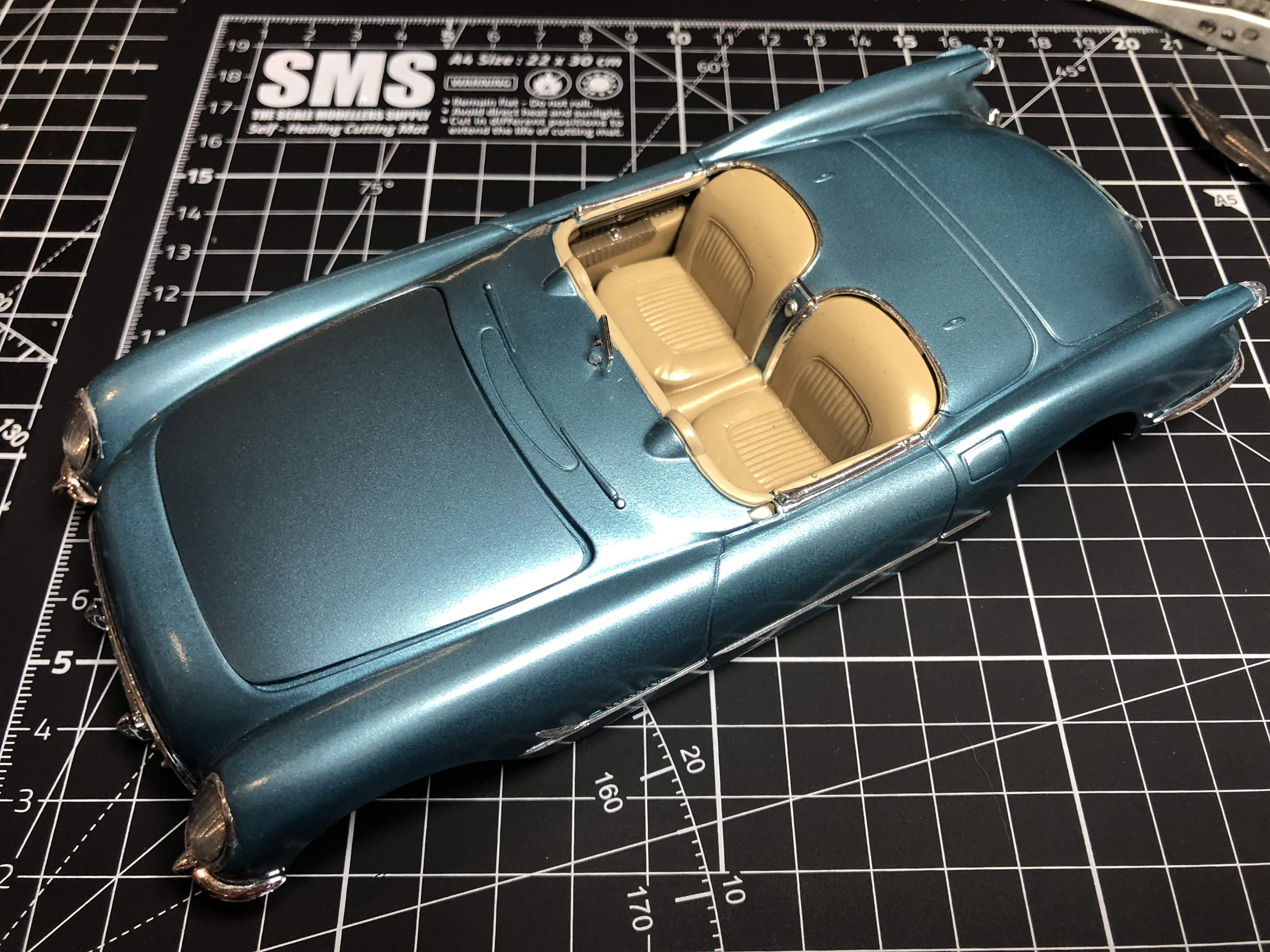 After an enjoyable BMF session on my 57 Nomad last night, I decided to revive my 54 Corvette build which was shelved in August last year. It is at the stage of applying BMF to the body, with a bit more work to do on final assembly and detail painting. I will finish it off here for GQ21, then revive the Corvette C1 Trio thread when I start on part 3, the '55!