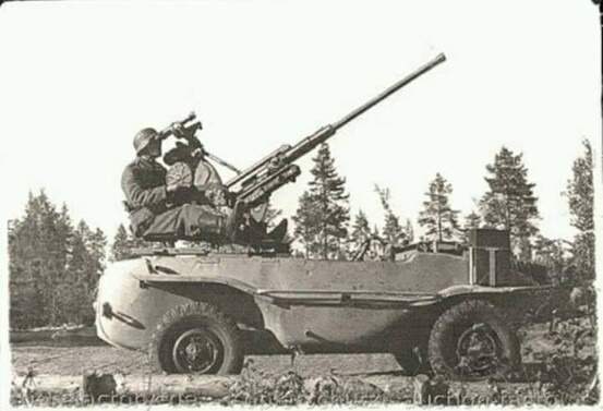 That gun on the poor little Schwimmwagen would only leave about 165 pounds for the driver, ammo and any other equipment …