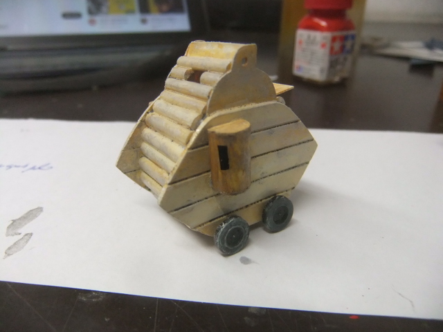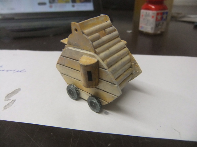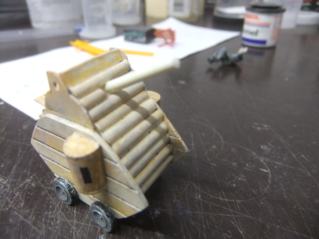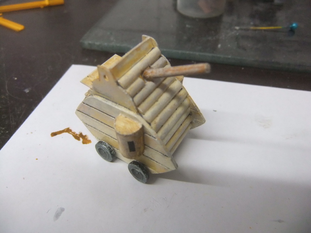 (MAY 29th ) .Today , I glued WOLFGANG on the tank and started the carrying base !