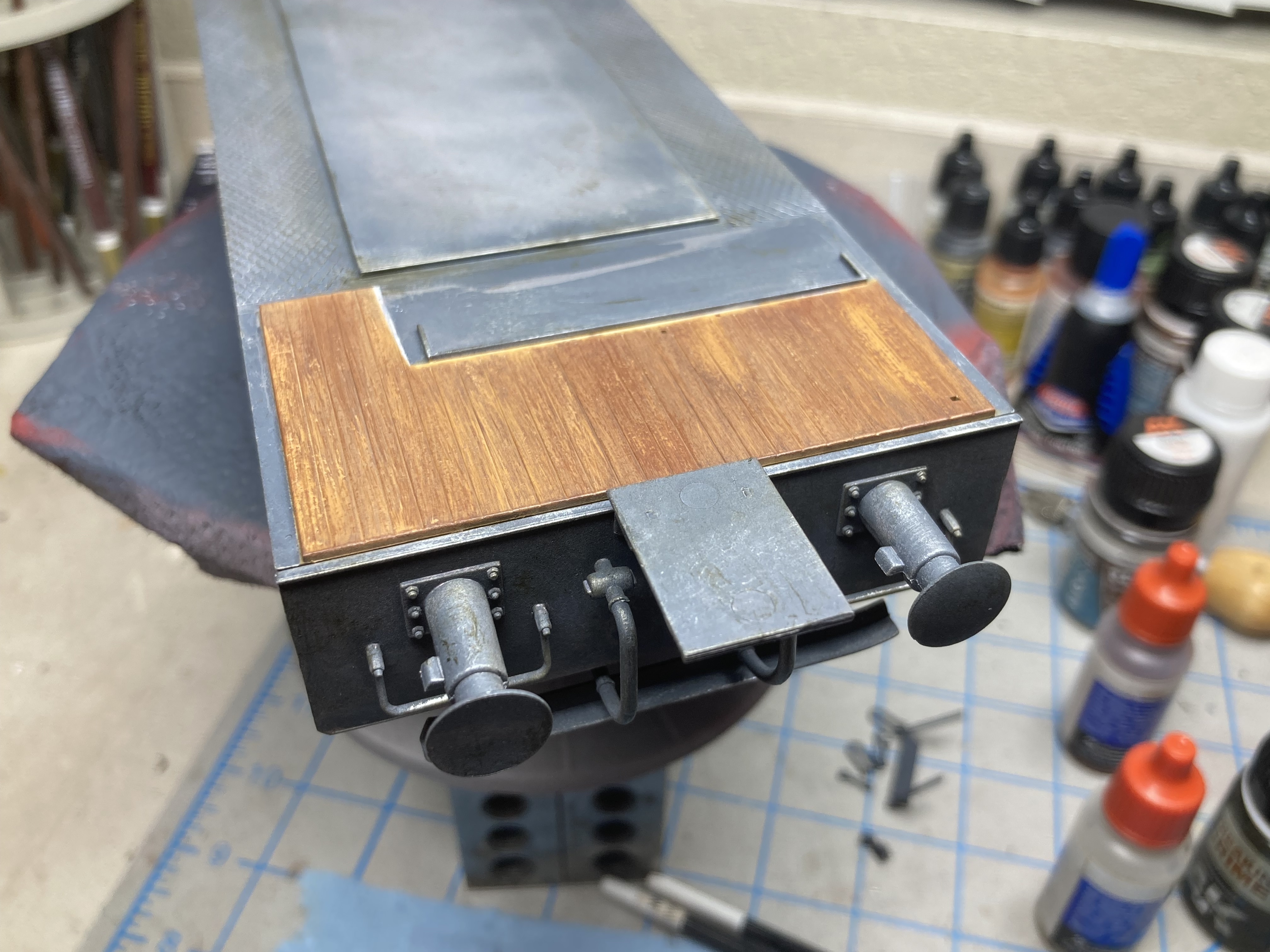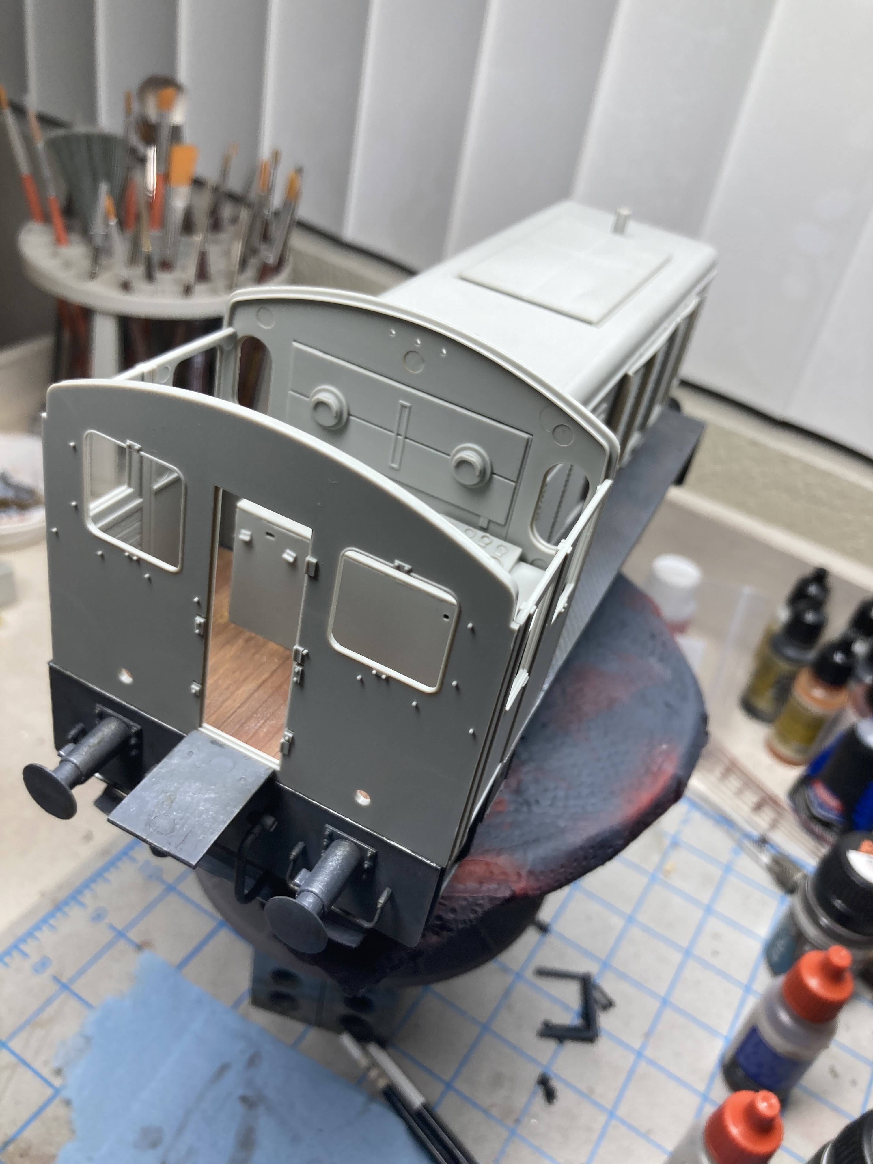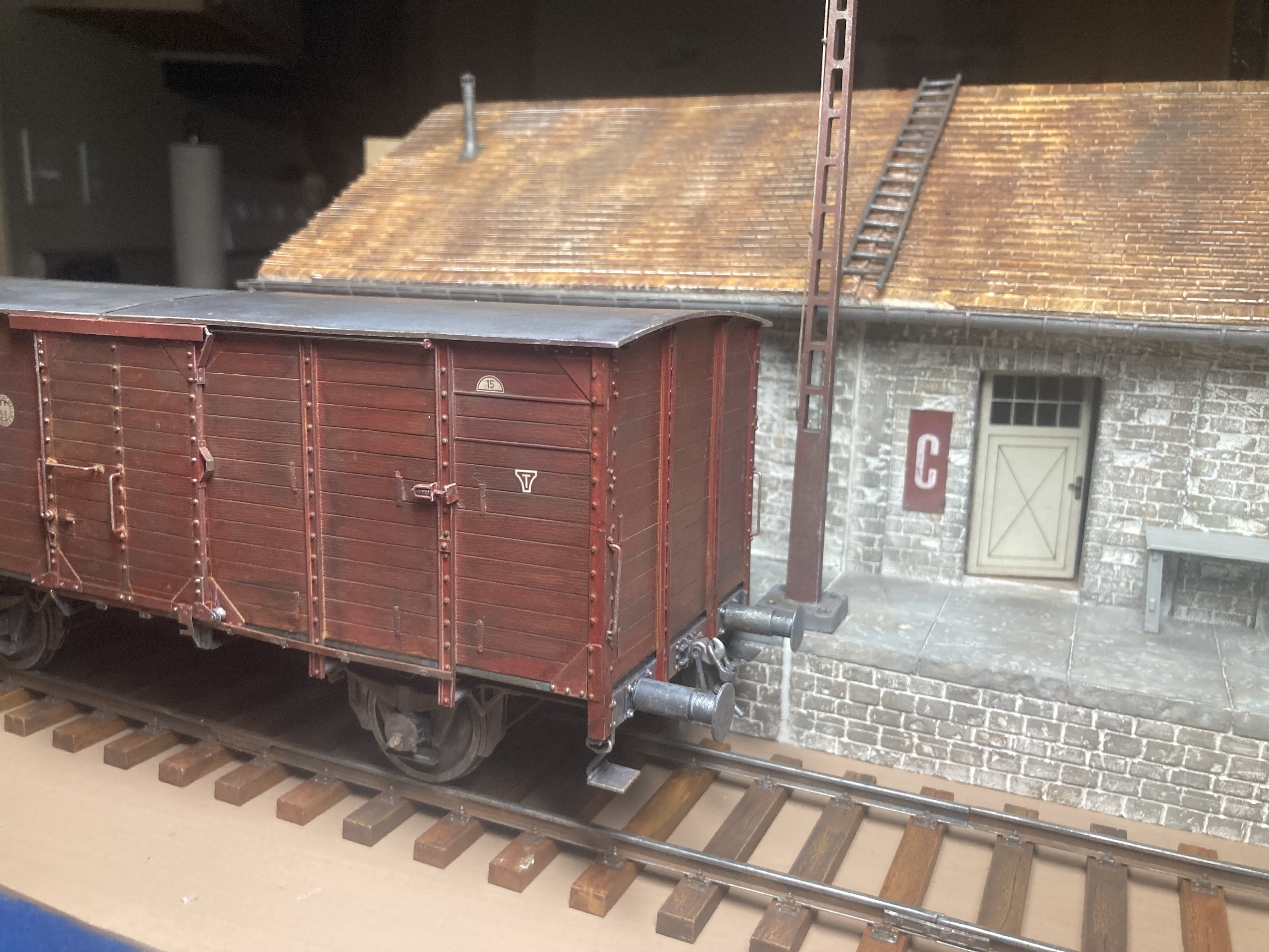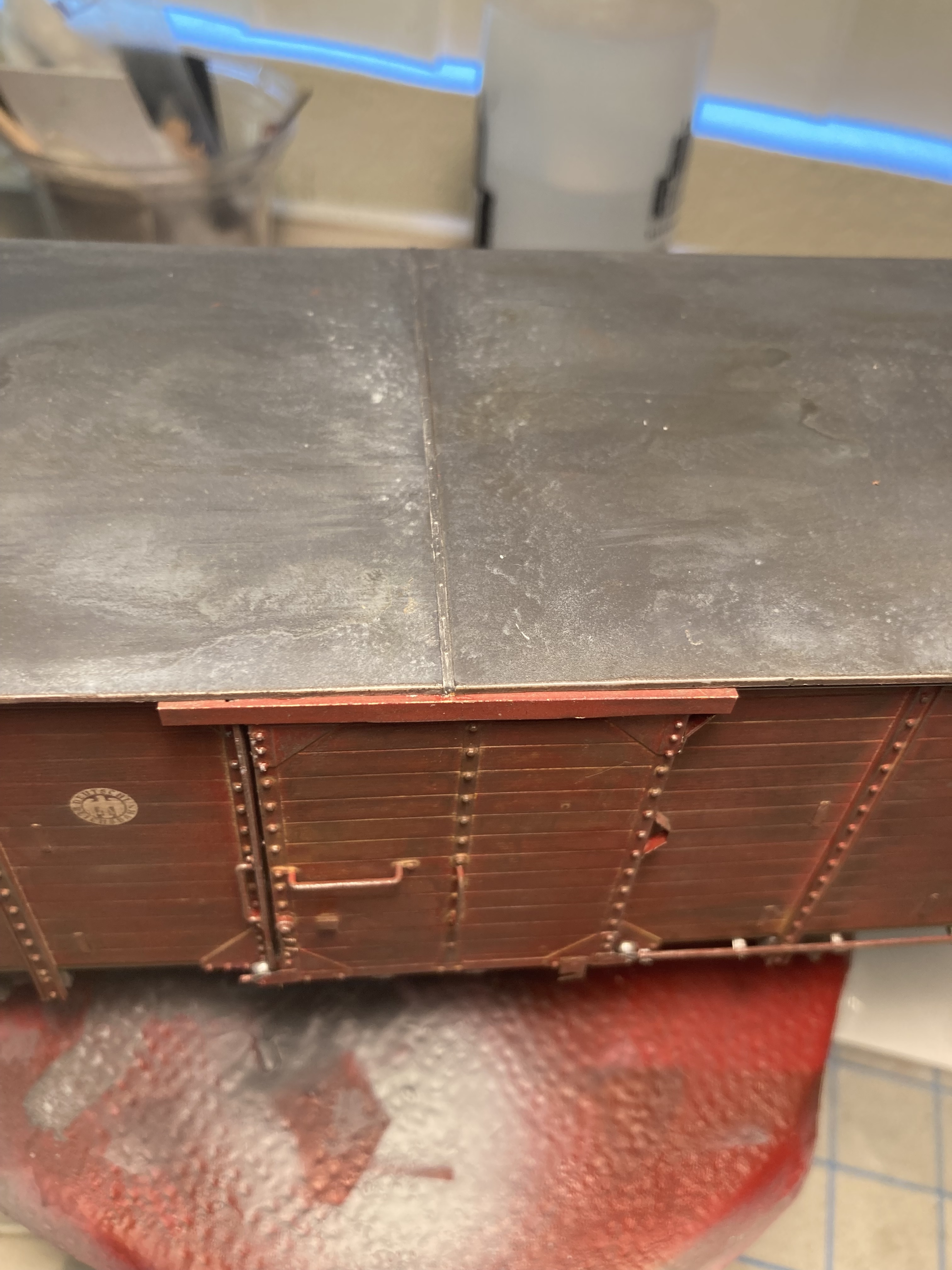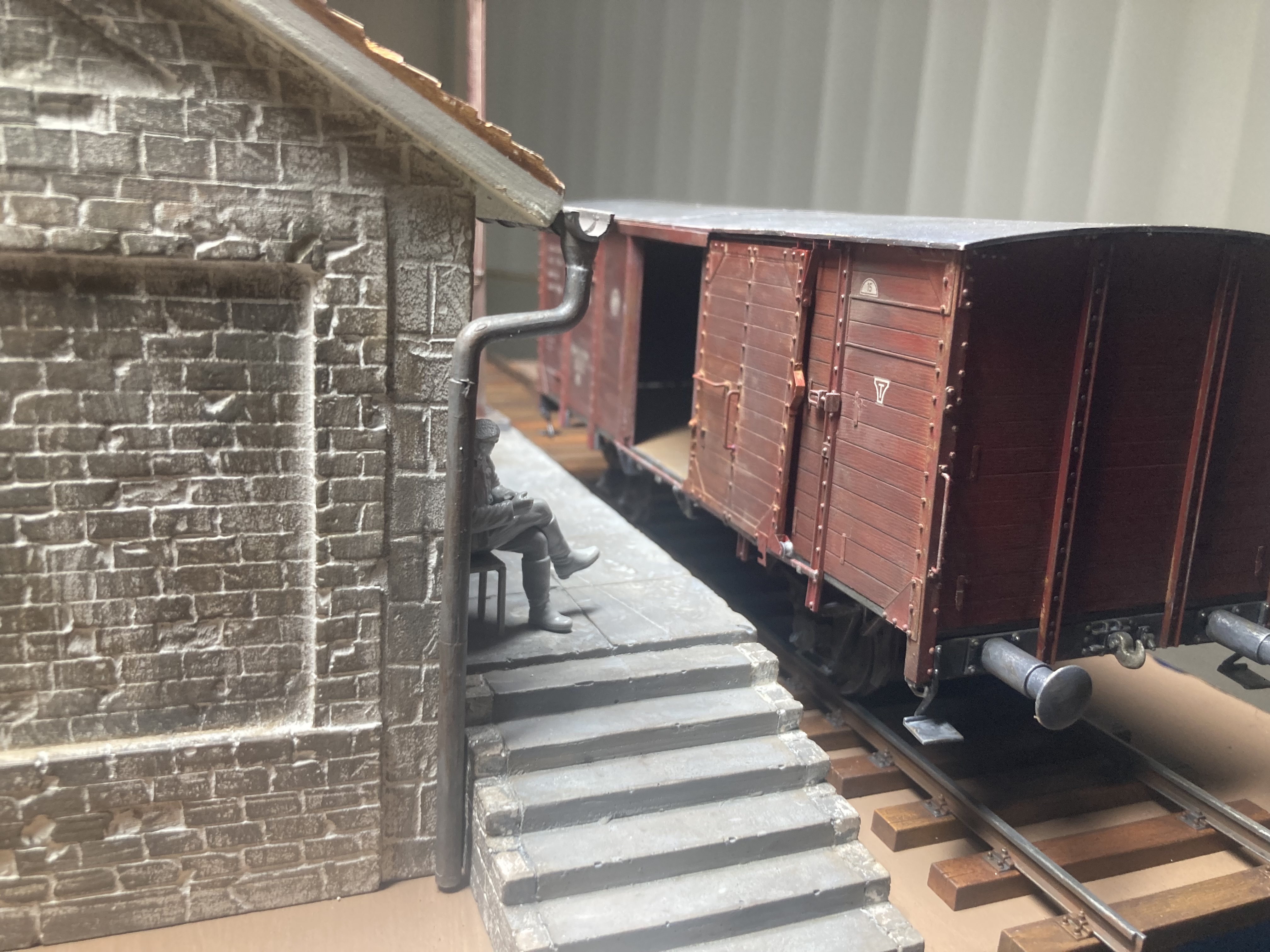 I have to put the end cap on the rain gutter. Still shaking my head as to why Miniart molded the rain gutters