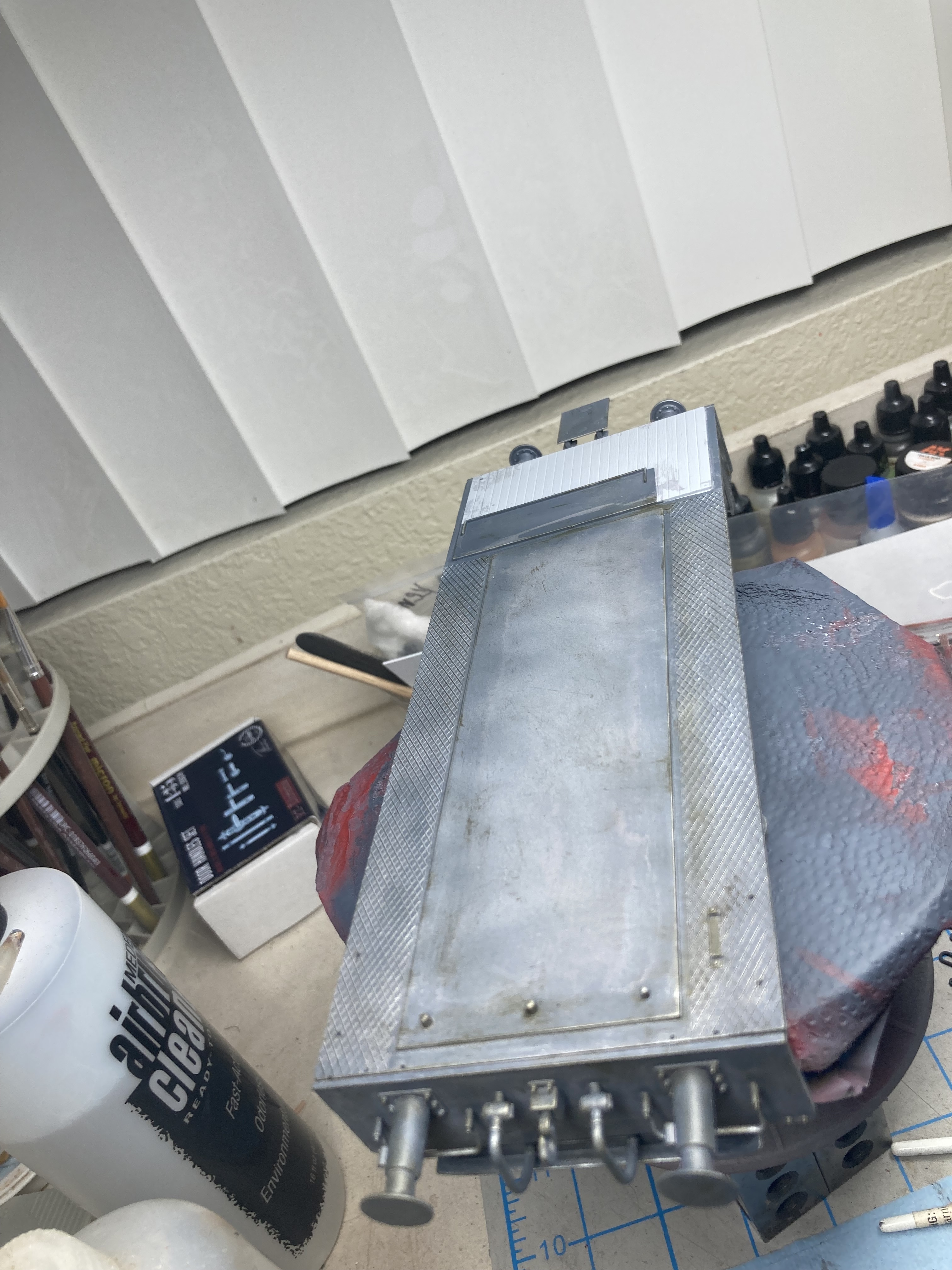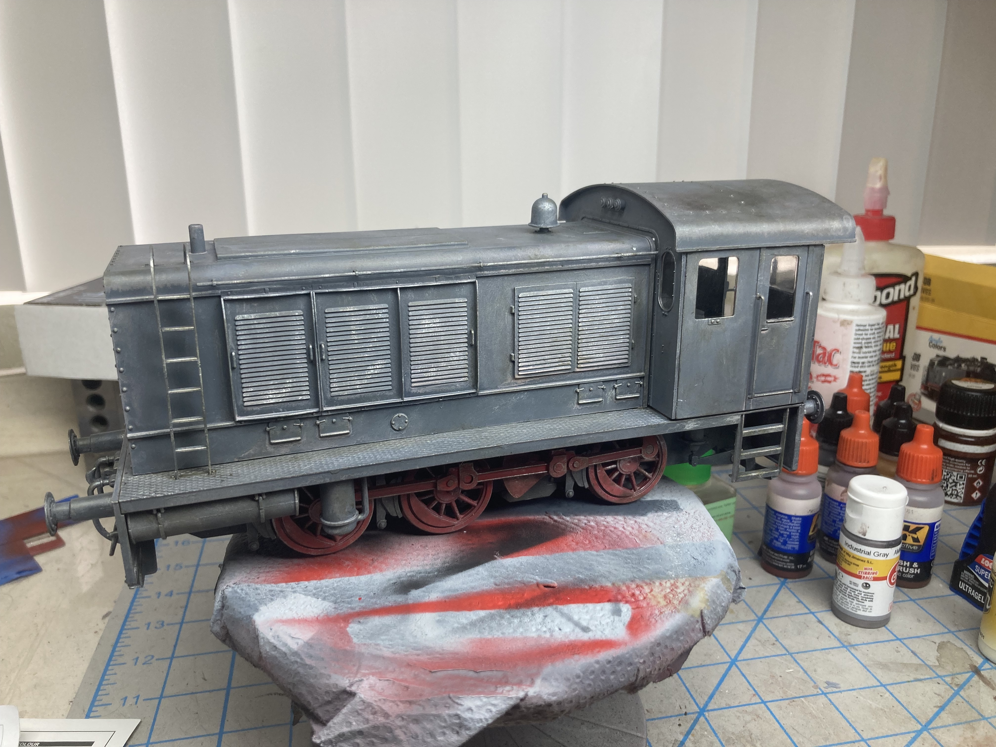 I paint the model in sections especially if I am going to use different colors. The length of the model is 10 inches long 4 inches high and 3 1/2 inches wide.