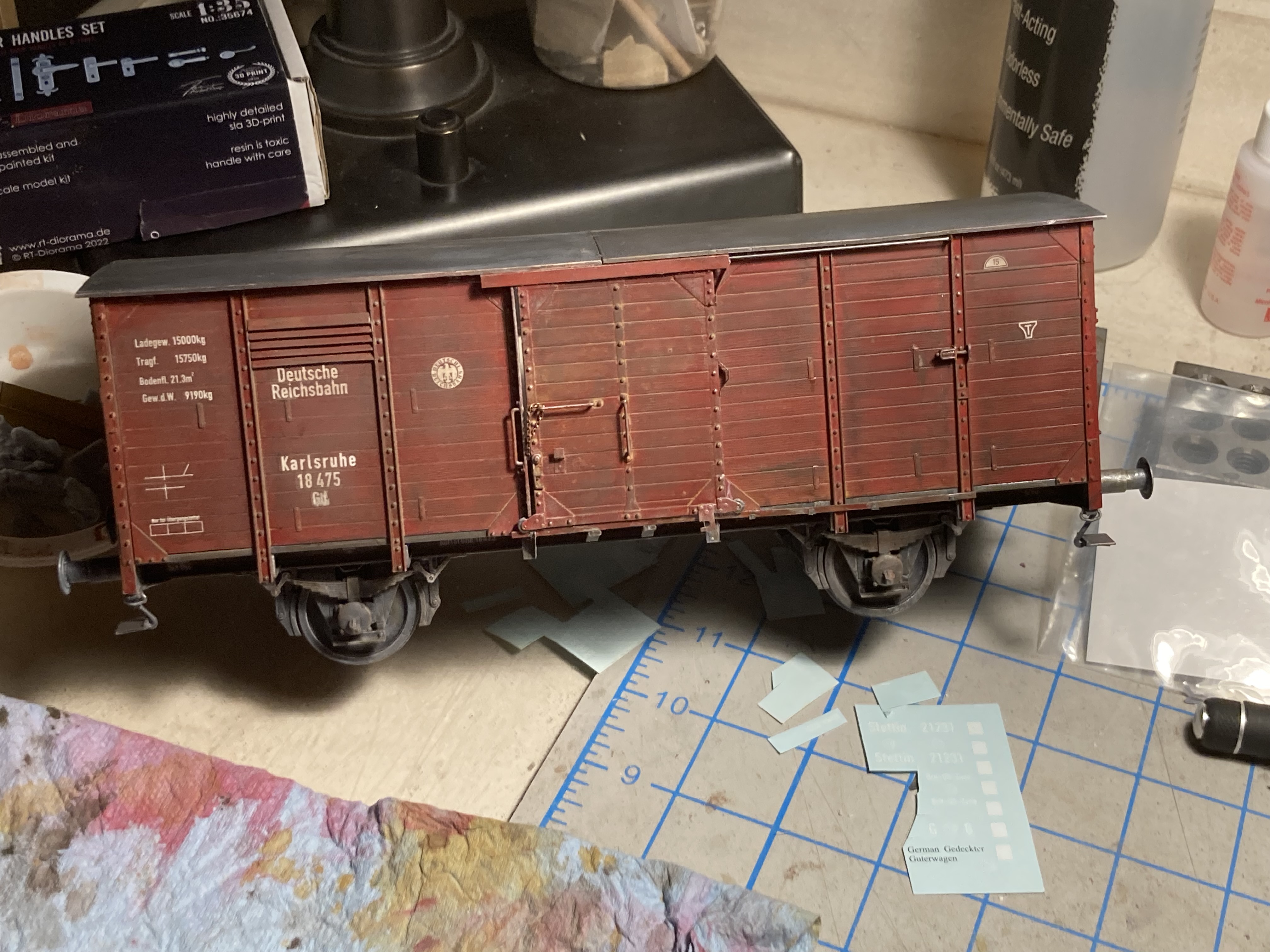 All coming together really nicely now. Boxcar looks great with the livery markings on it.