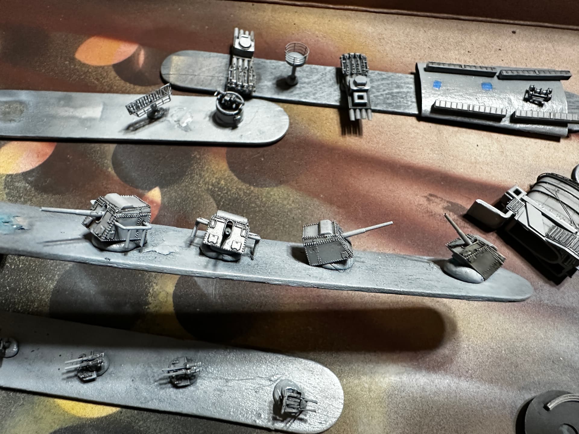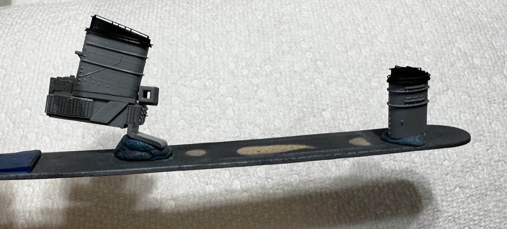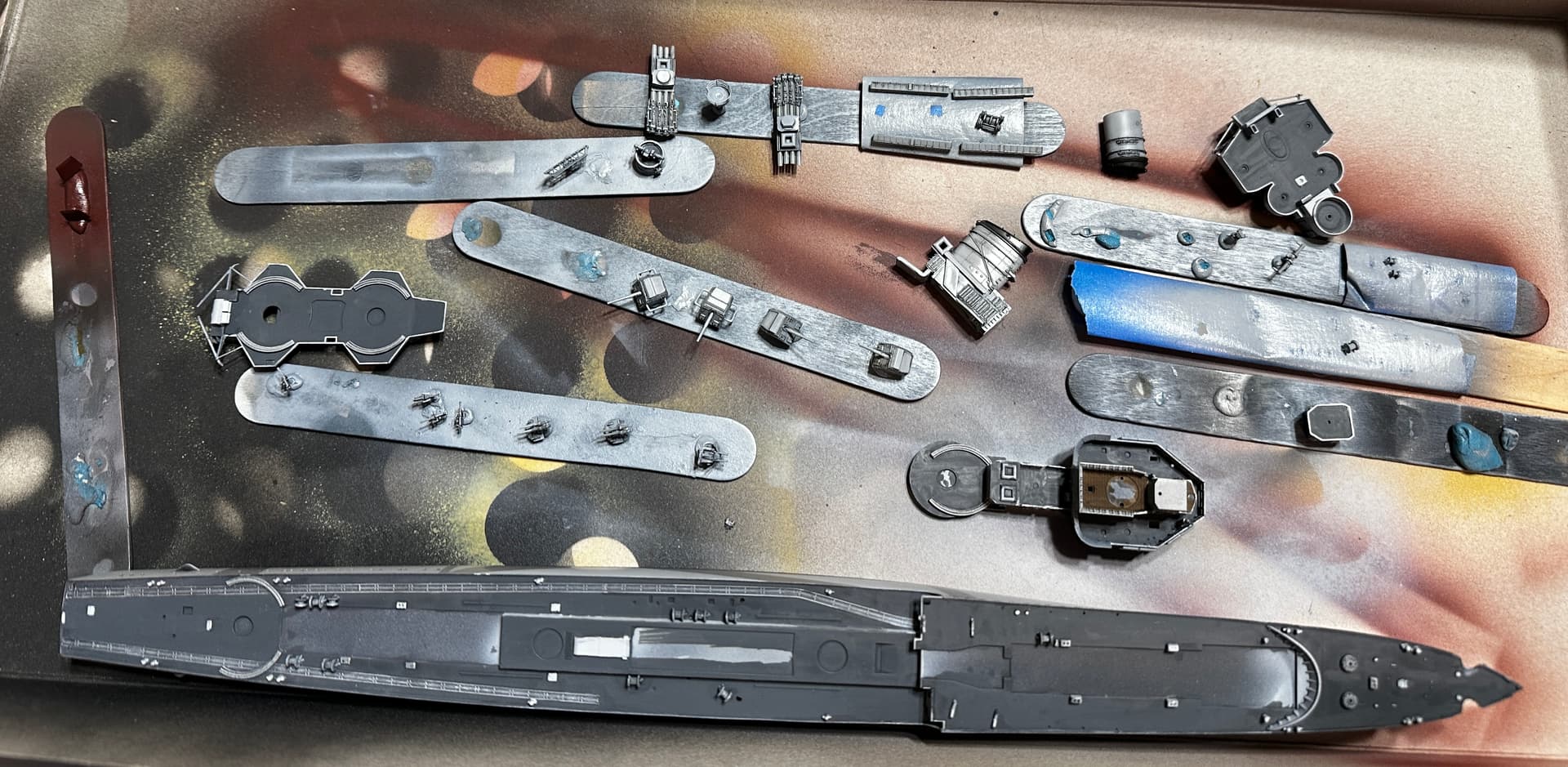 I need to go back and repaint the deck which got a lot of overspray as well as put some washes on all the fine detail on the superstructure. I should hopefully get that all done this weekend and can start gluing parts down