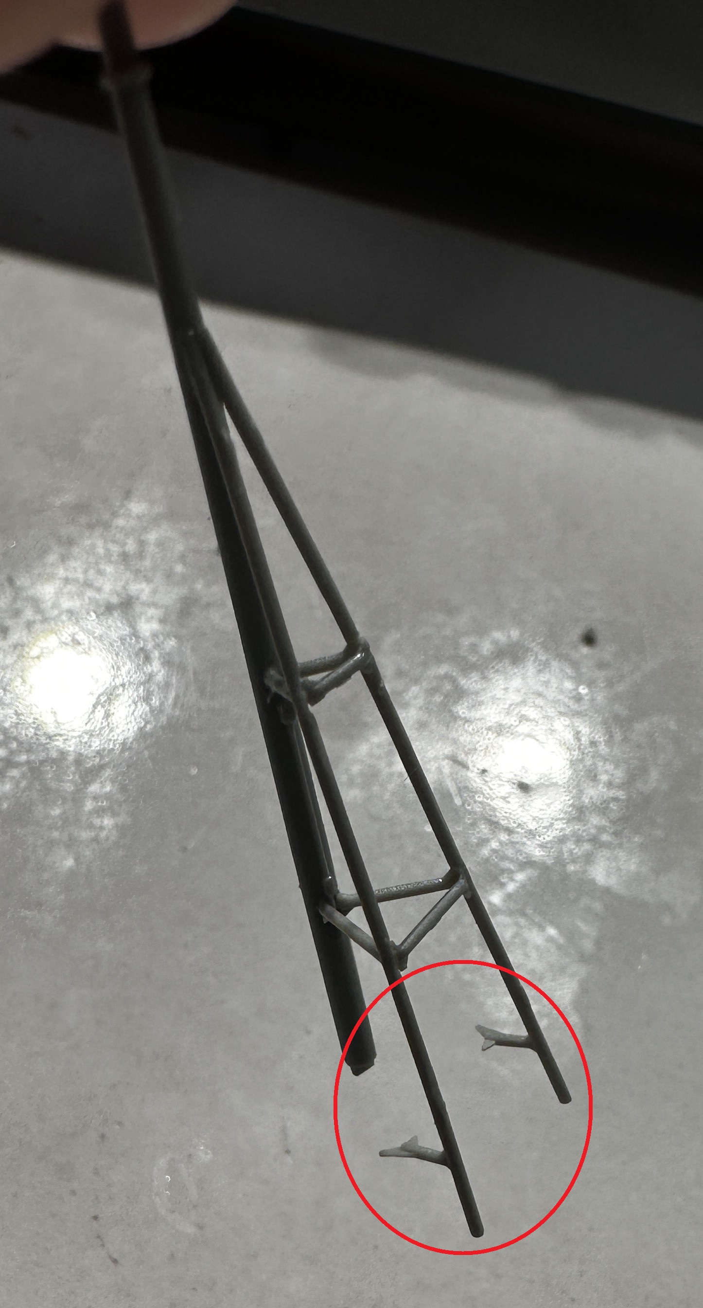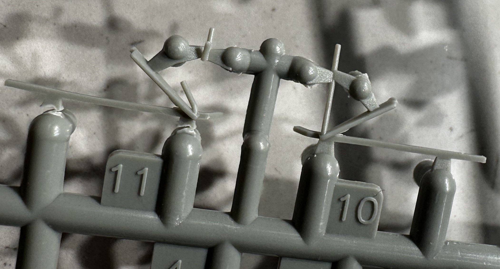 The rear mast was another story. It is a super thin piece and came off the sprue all bent. I don’t think I would have trusted it to maintain shape when rigged even if it came off straight.