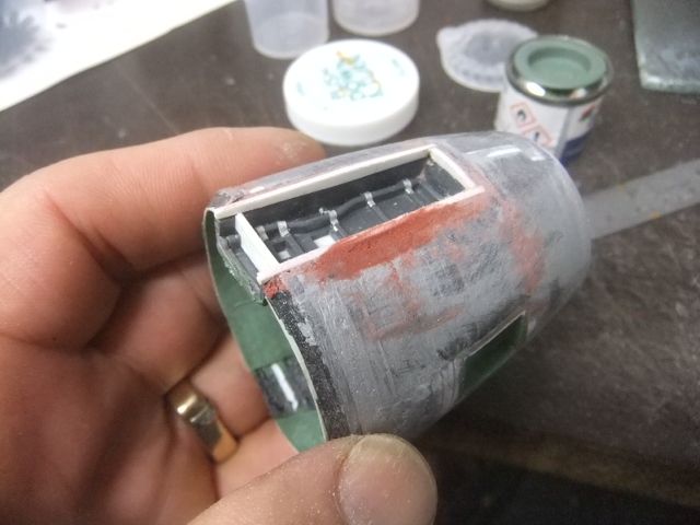 (MAY 28th ) …Today ,I continue the work on the drone bay and gave a coat of primer on the intérior structure !!