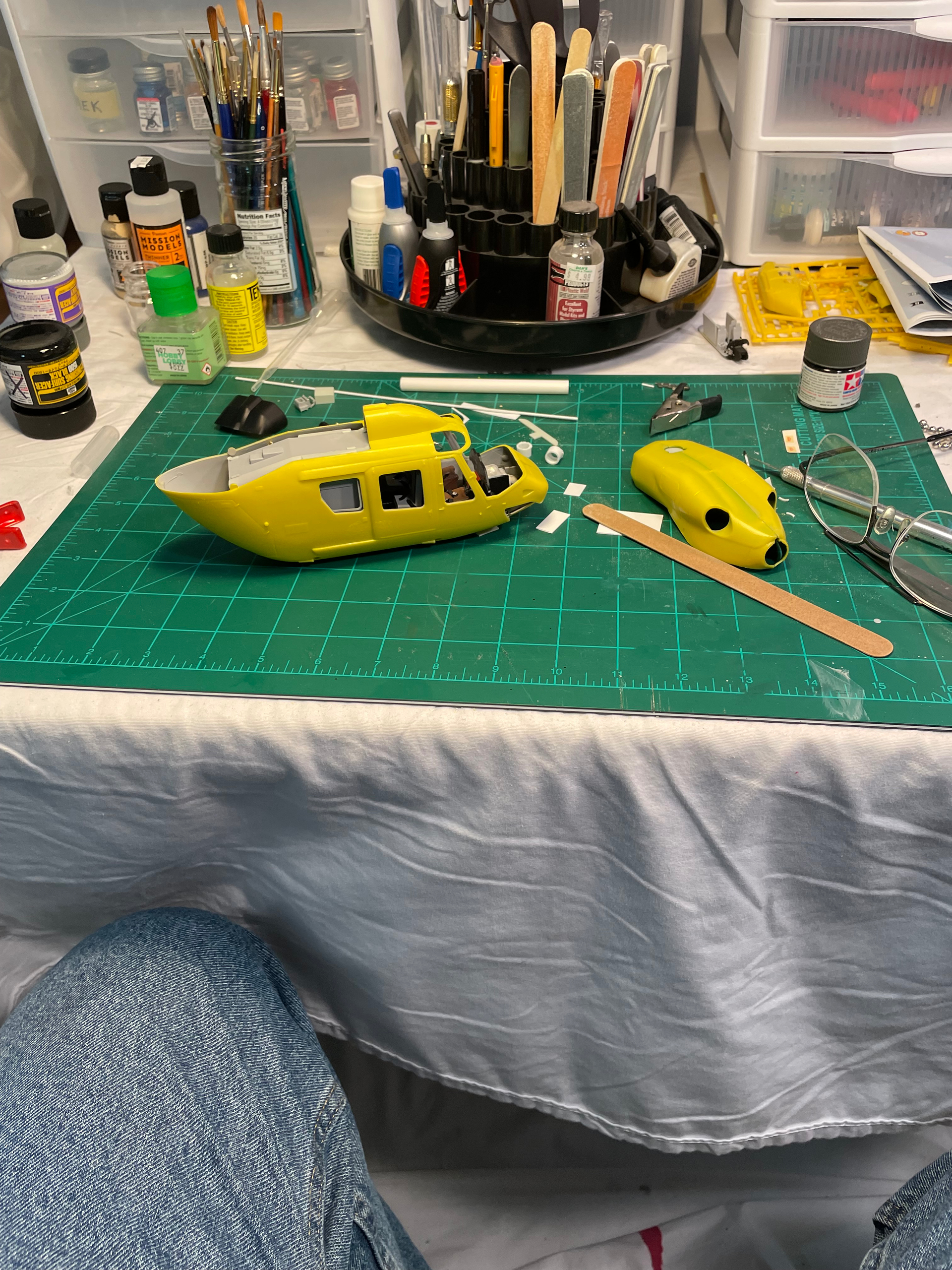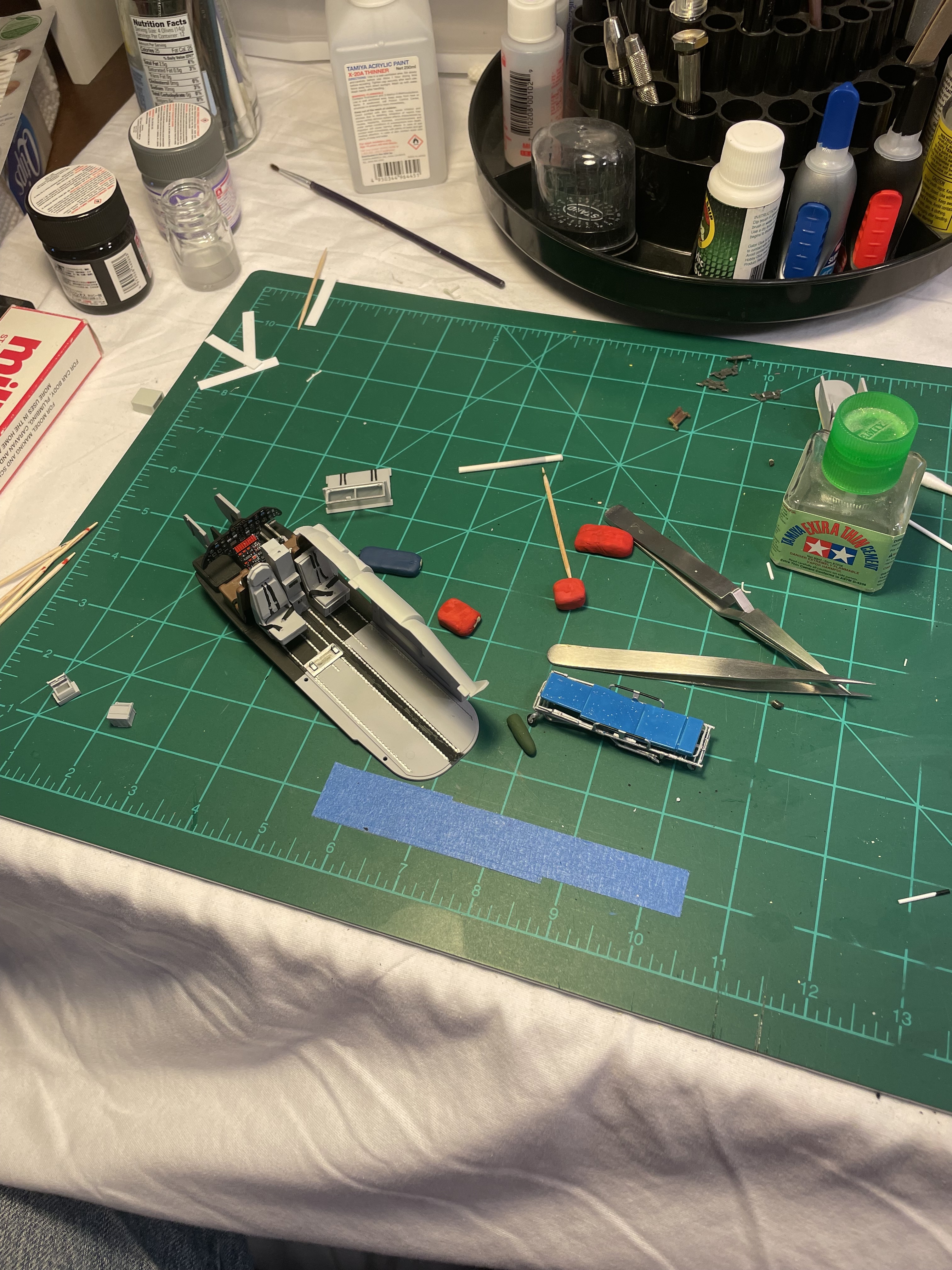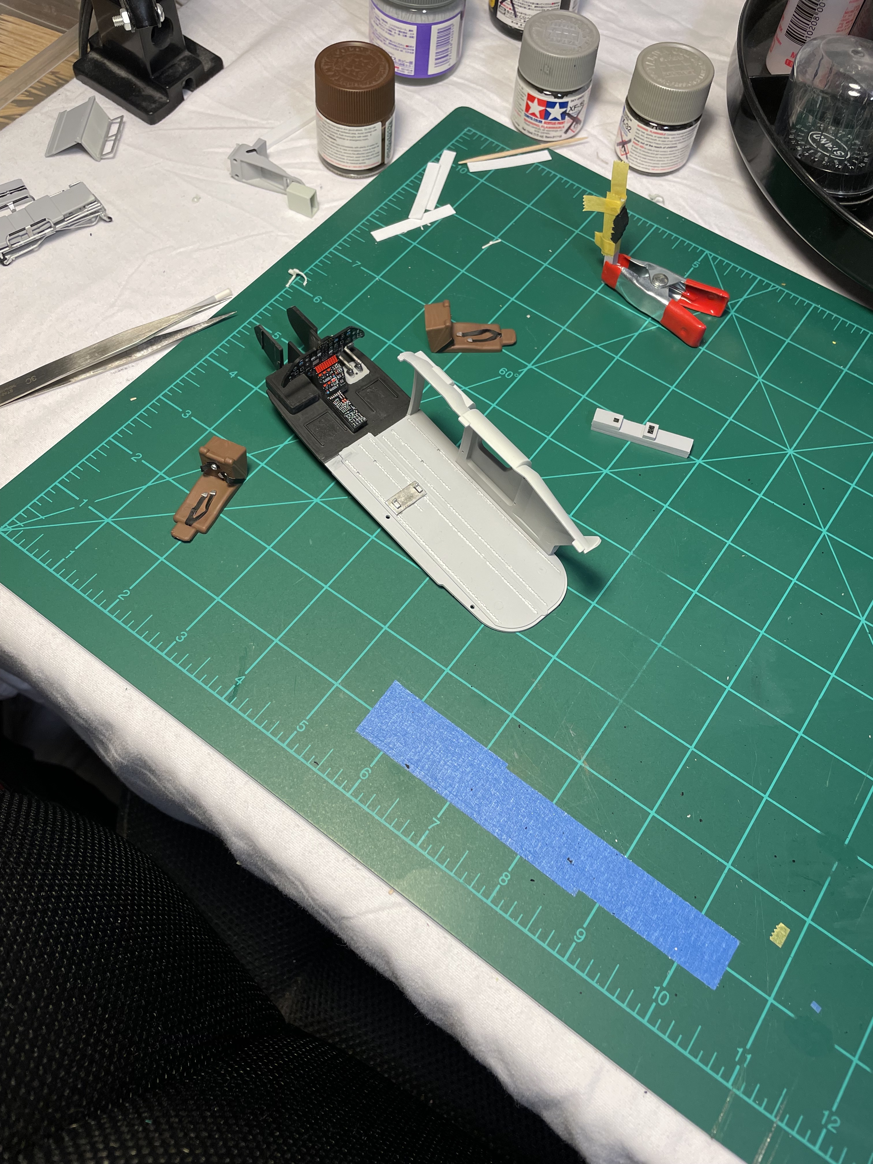 I spent some time looking at what I had done previously. I remember dry fitting all the pieces around this pilot figure and everything fitting well. I think I had stopped at trying to figure out what to do about rigging. I saw a build where a guy built anchor bolts (?) for the rigging and bought some Eduard made “stretchers". I can’t imagine I thought I could pull either of those off. But I had started opening up the attachment holes a bit which I think will be useful. So, I’ll finish doing that.