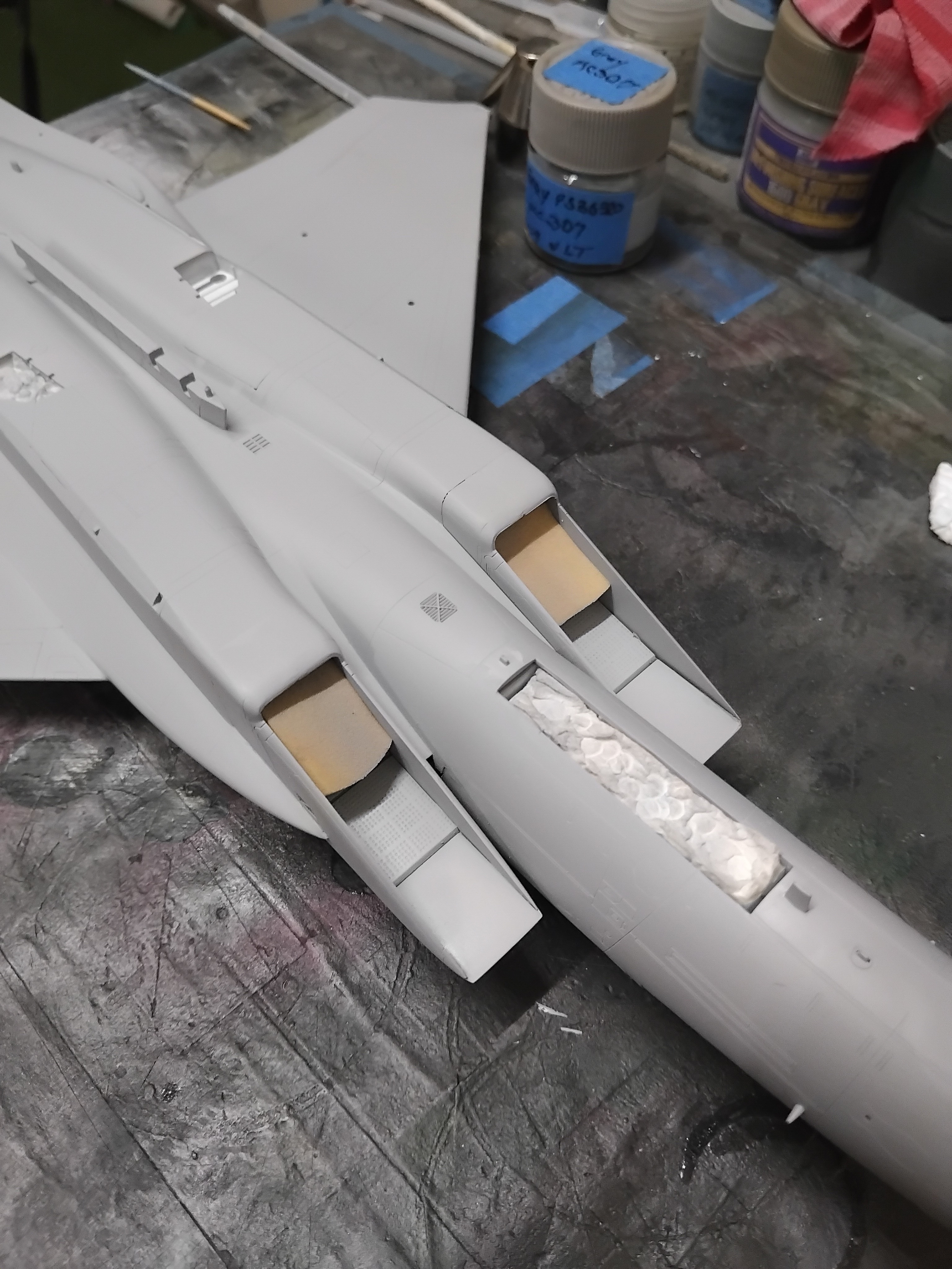 This resulted in it going back into the box. With a new year and new Hangar Queen campaign, I pulled her out and made the appropriate repairs. After some time and lots of patient careful sanding and filling, I was able to get the nose pretty much back to where it was supposed to be. I gave everything a prime with MS1500 grey as before and was looking to get this baby back on track for completion!