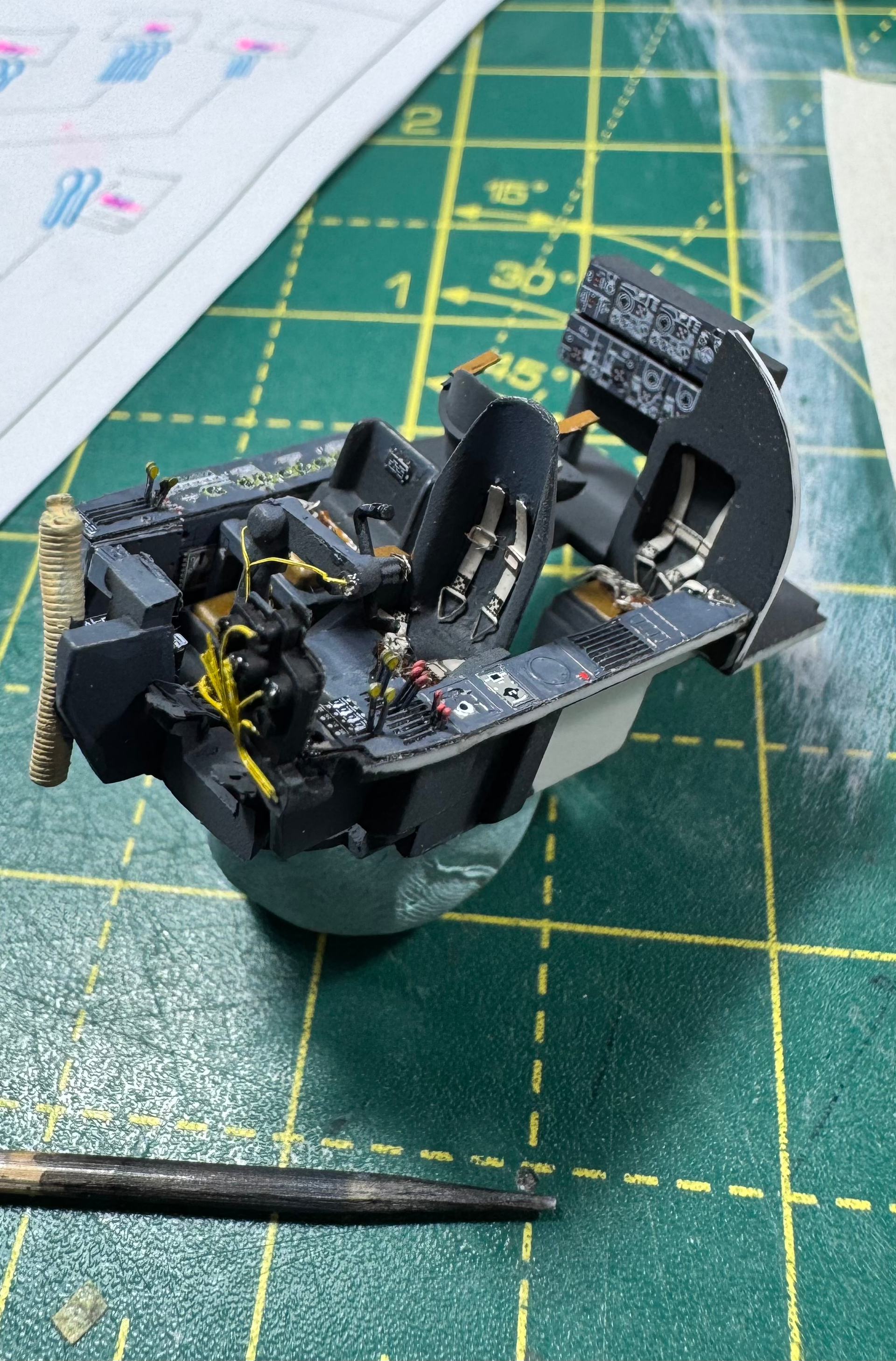 I painted over the PE’s RLM02 with 66. Got all the seatbelts done. Next step is to glue all the levers and then close up the fuselage.