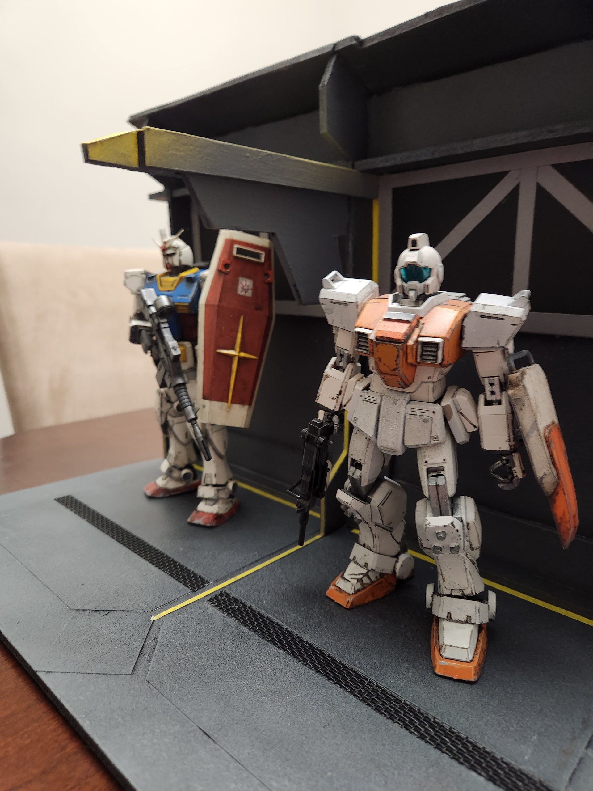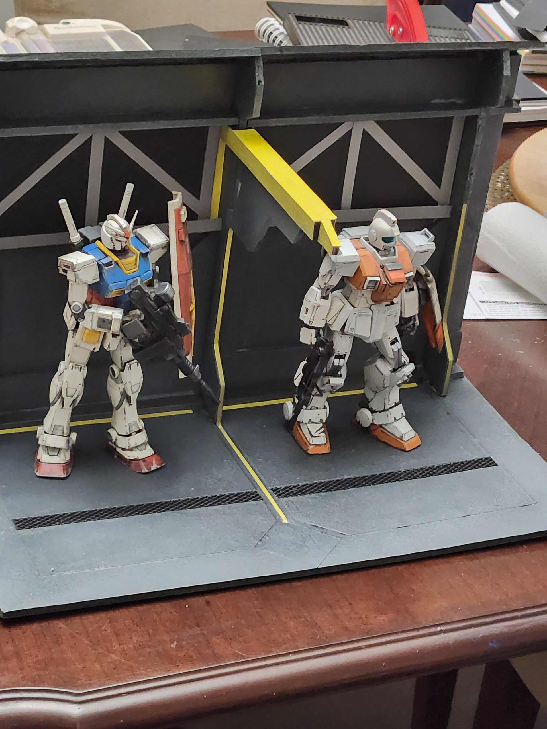 This is a simple diorama with 2 MG gunpla and a quick dio base made from foamcore and colored paper. I did it to try a new technique.