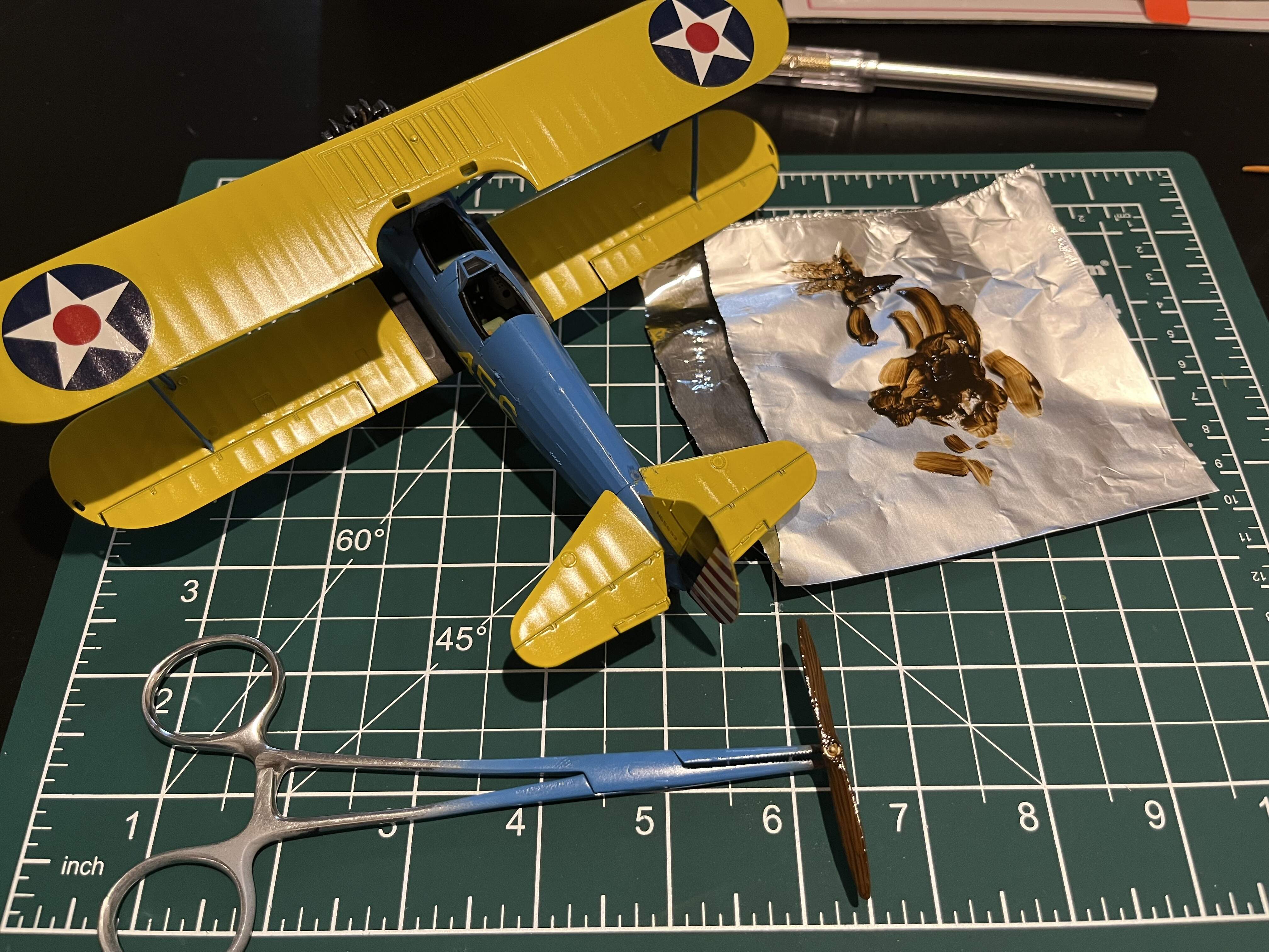 I’ve got two kits that I first started back in 2019 but are still unfinished. One is a Stearman that I masked up for painting and filled some seams on last month.