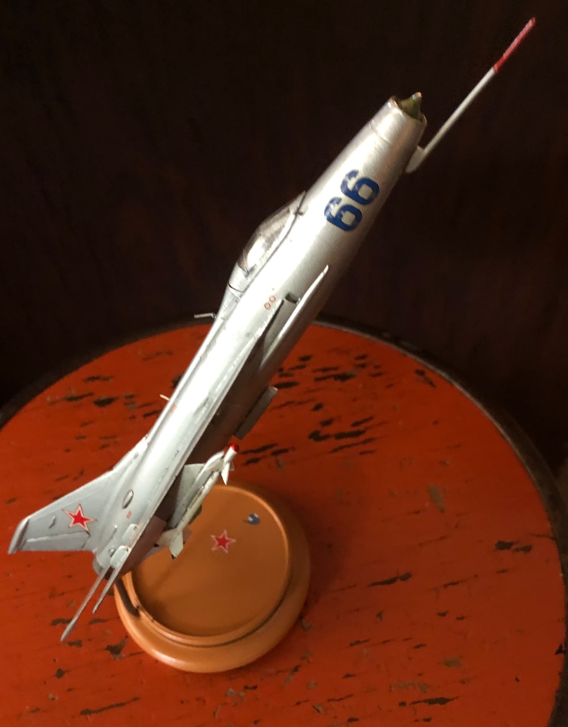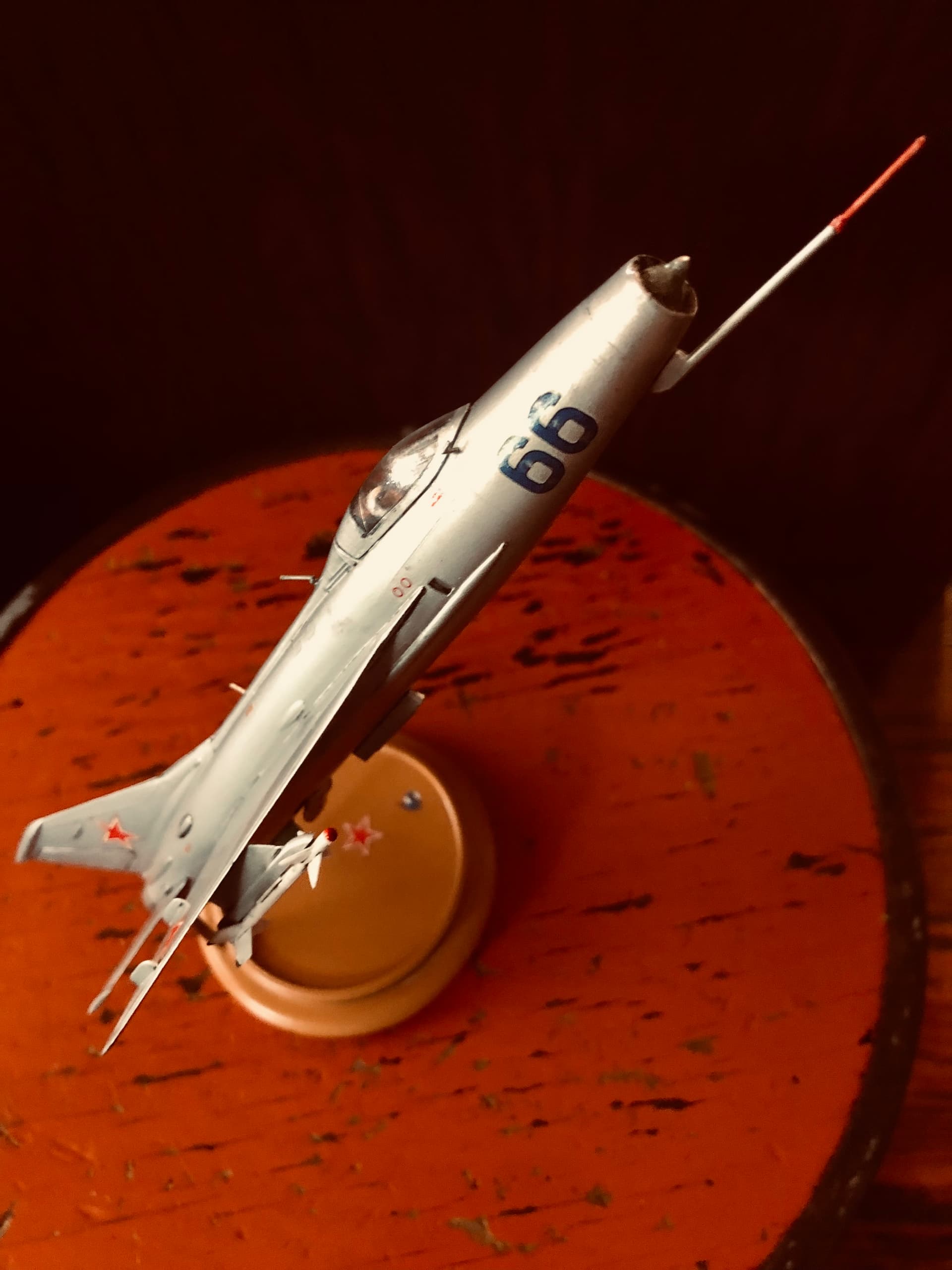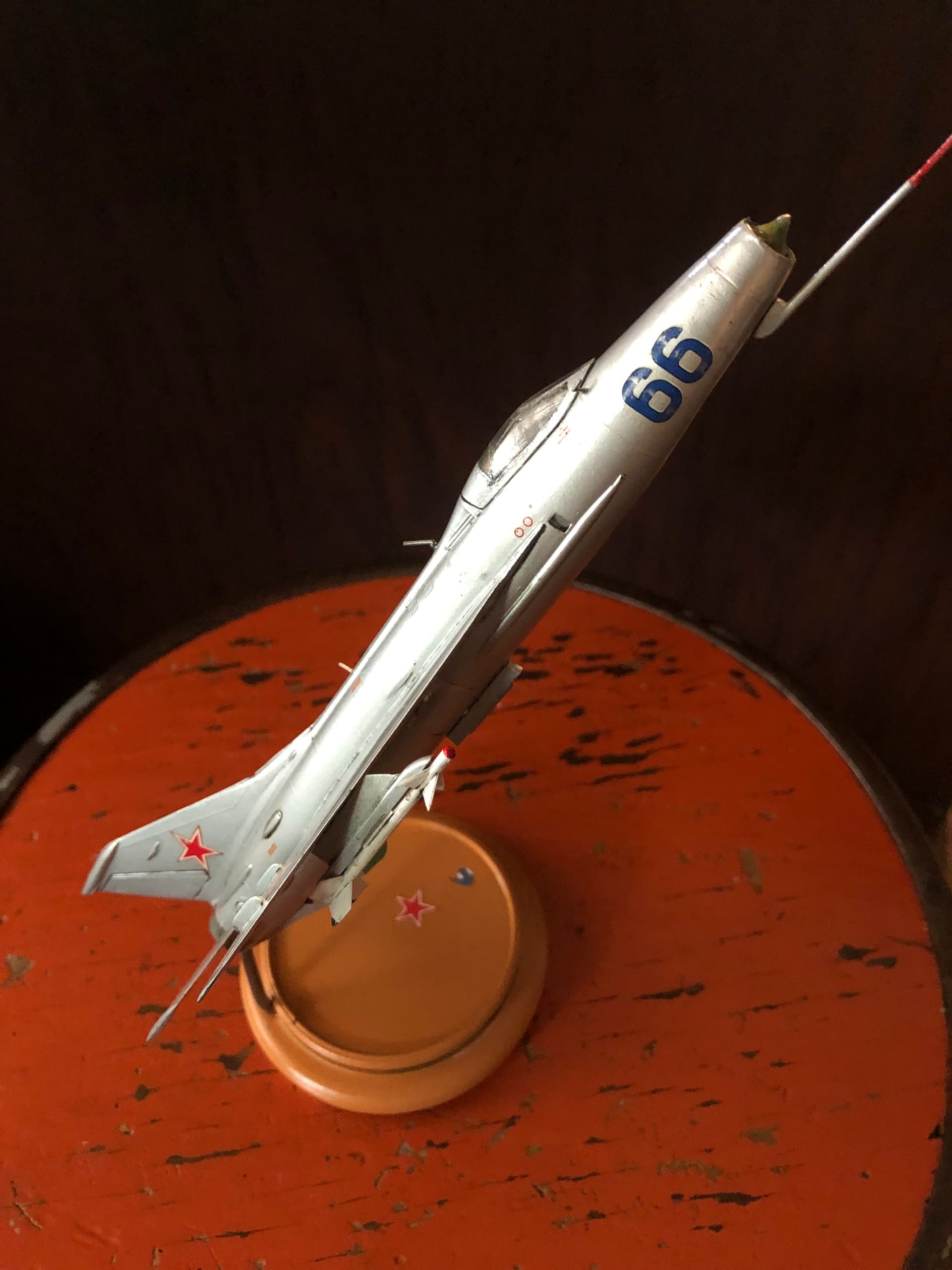 I used to have blind faith in Hasegawa’s kits, so their MiG-21 was my prime choice to build MiG-21/Chengdu J-7. However with the advent of Revell and Revised KP releases of MiG-21 F-13/MF/UM variants, it’s obvious that the Hasegawa’s MiG-21 is grossly out of scale (1/67) and lacking in internal/external detail. Nevertheless, it makes a good representation as a desk top display which you have wonderfully recreated with a stand to mount it and in terms of price, the Hasegawa kit makes a cheap and cheerful option to fill of display shelves or using it as a testbed to try out conversions and practise/experiment modelling techniques on.