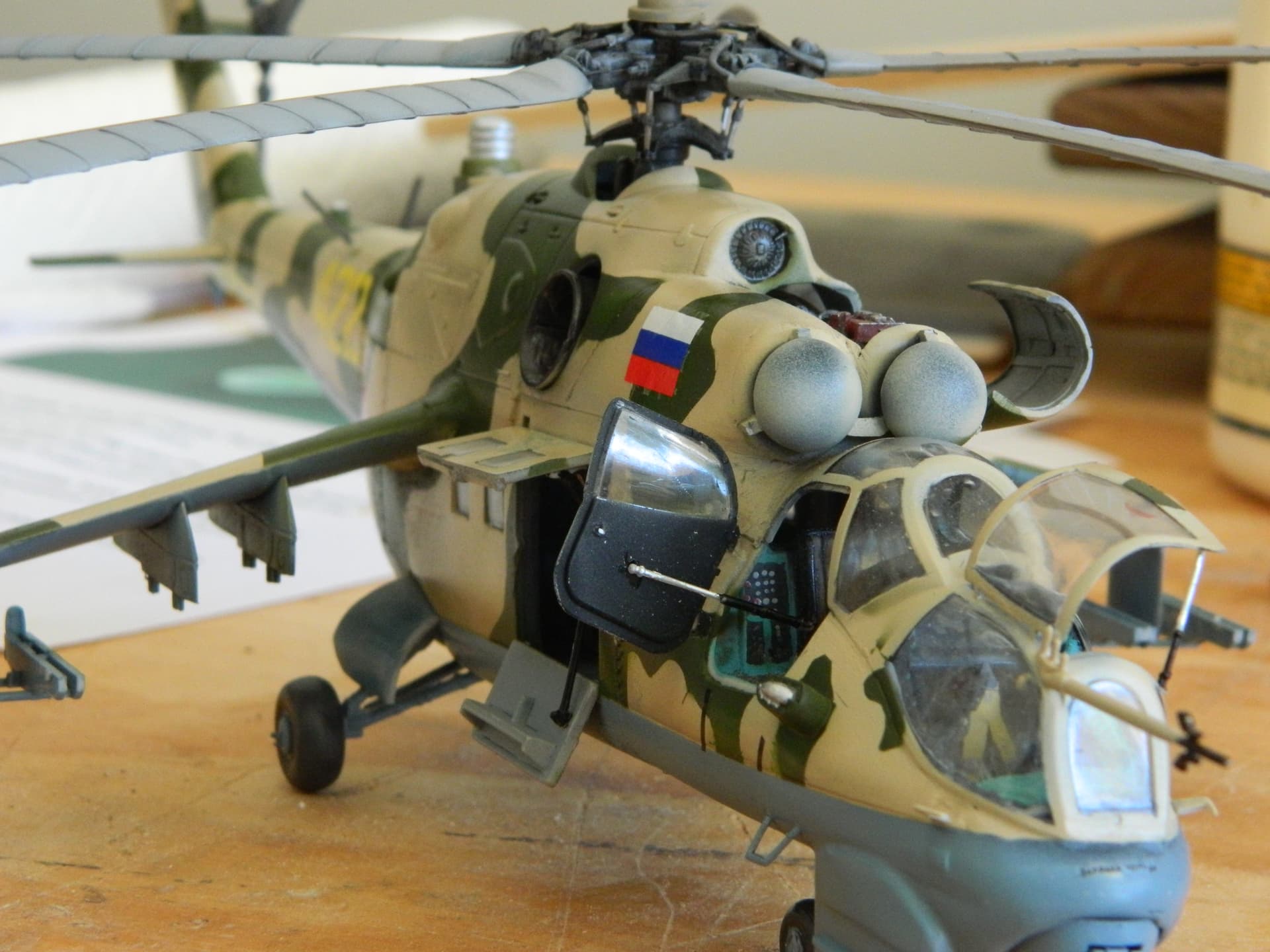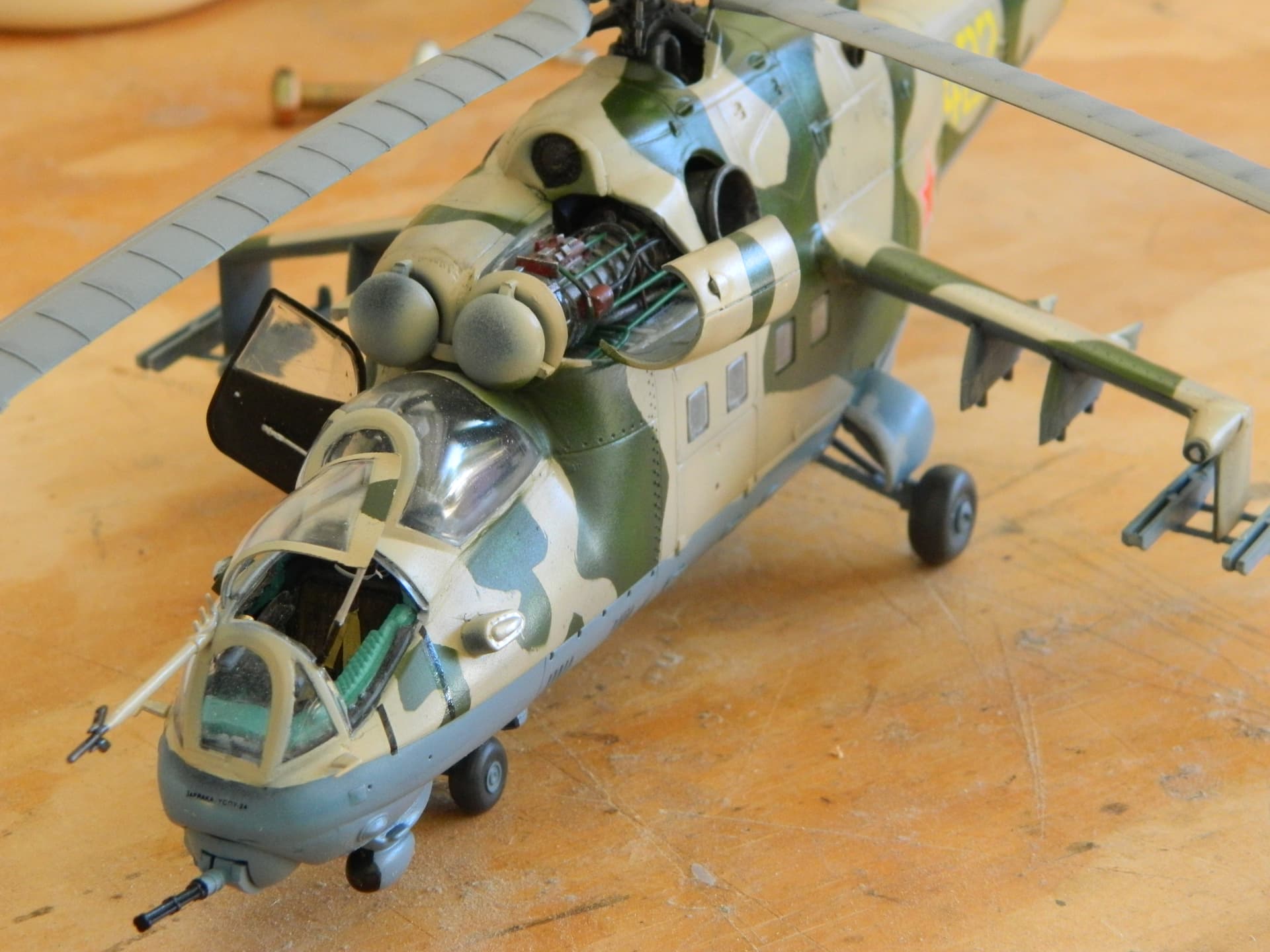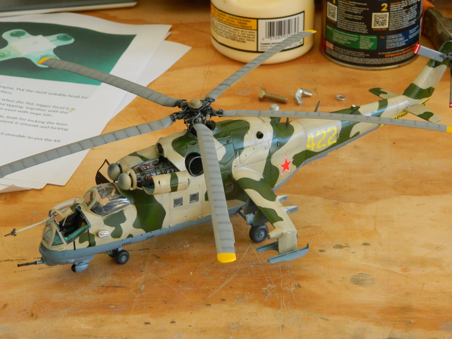 Been a couple of weeks since i managed to get work done on this. But after several days of masking, adding a couple of the small parts, the Hind is painted, ready now for the final weathering, panel lines etc. (just noticed i still have to paint the engine intake covers)