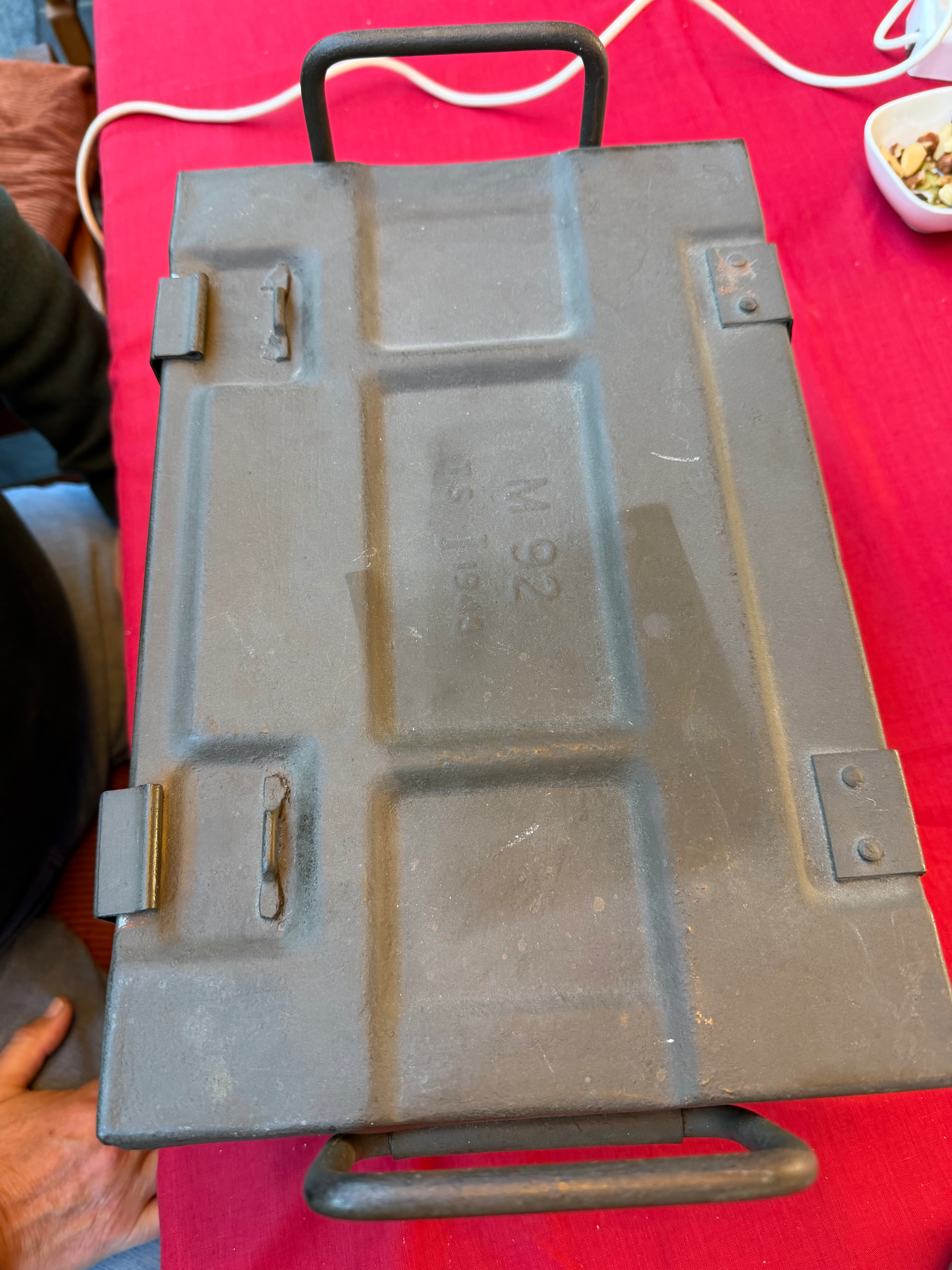 A member of my local model club was given this ammo box for Christmas (with two bottles of wine inside) but we can’t ID what it originally carried.