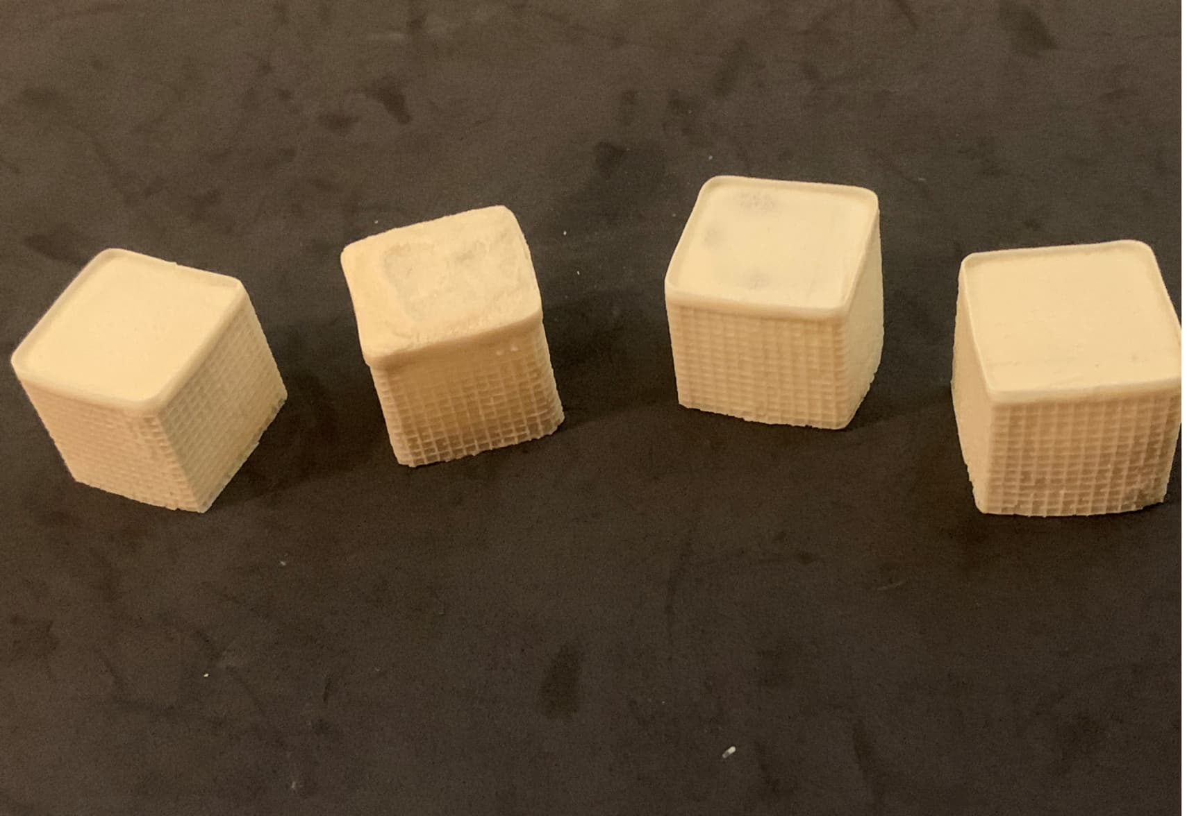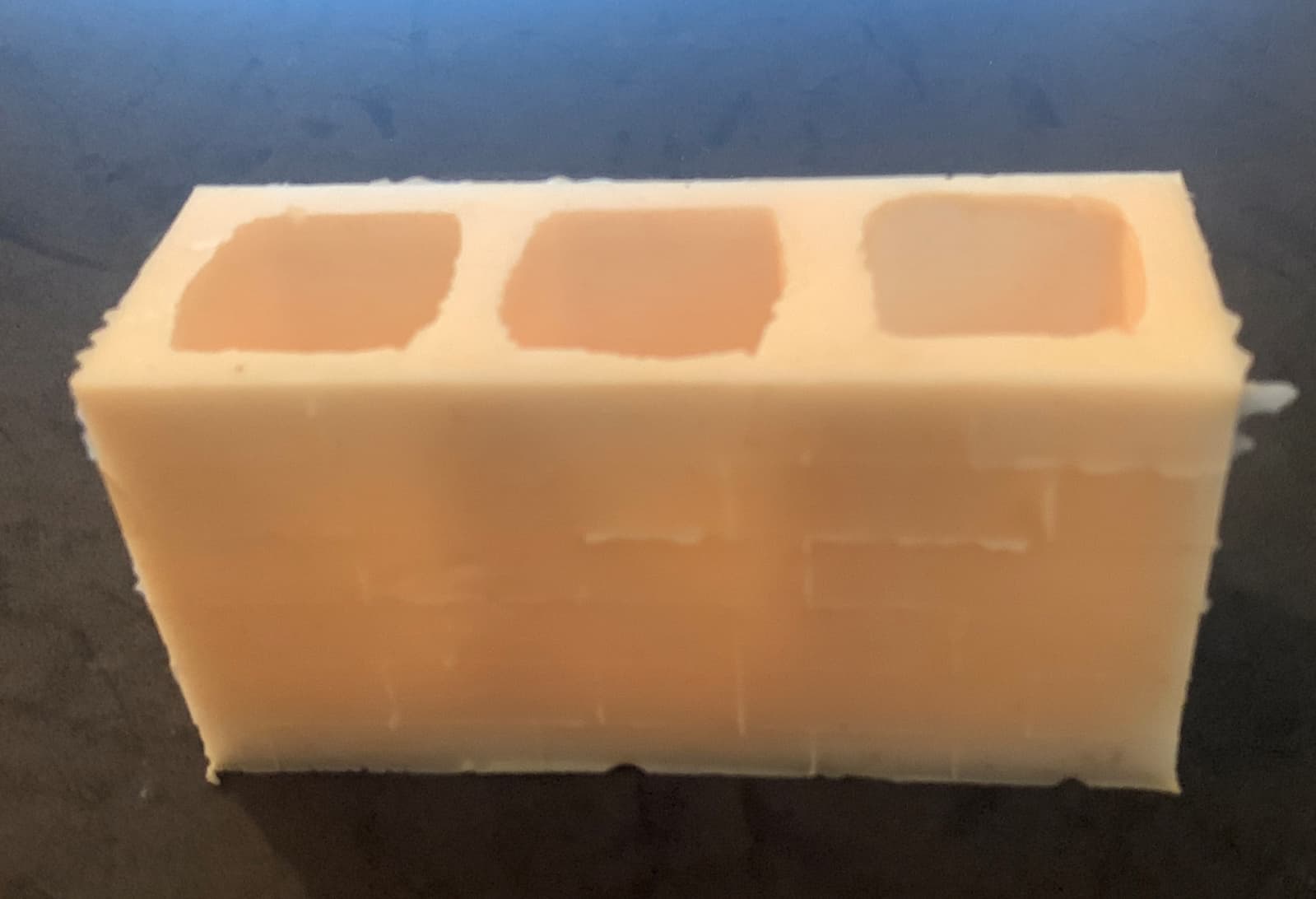 I decided to go back and make more accurate castings of the A-A sized bastions without the weave on top. Same technique as above, but with the bulge added by hitting the block with a belt sander: