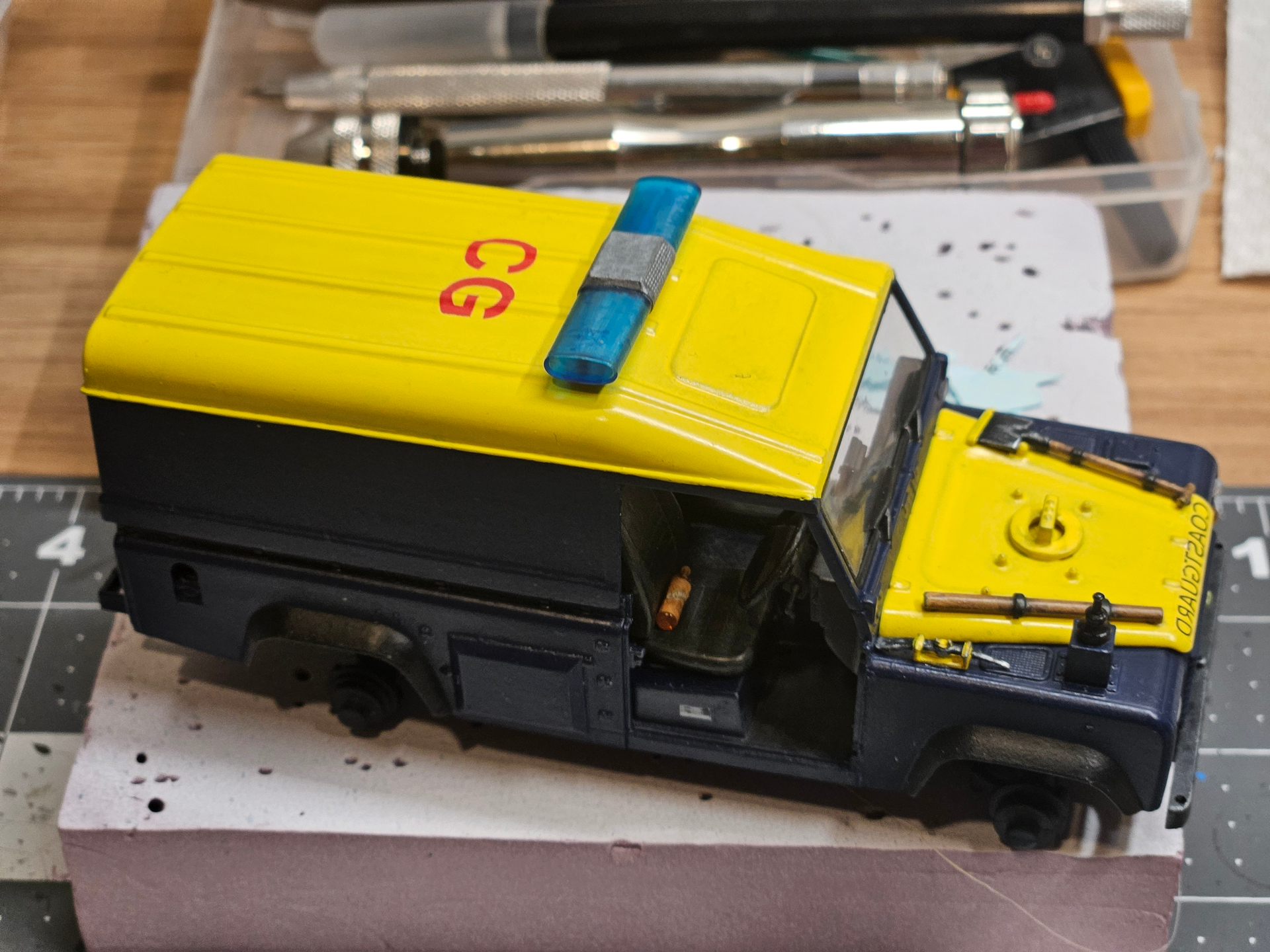 Things are not going as planned with the decals I printed. Colors are too transparent and almost disappear on the dark background. See below: red decal on yellow works great, but red on Prussian blue is hardly visible. I tried a yellow decal on Prussian blue, and that’s the same.