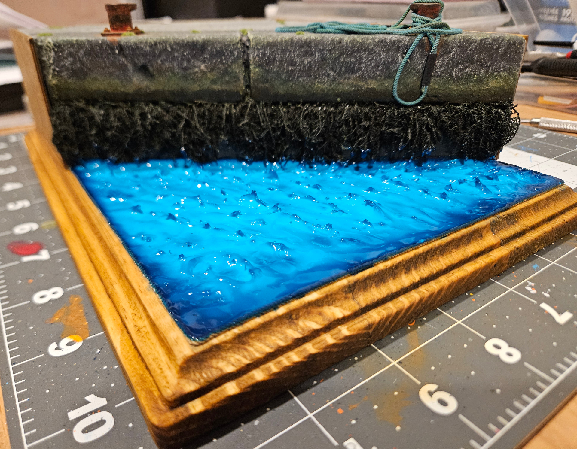 2- first thin layer of Atlantic blue resin, trying to keep it smooth