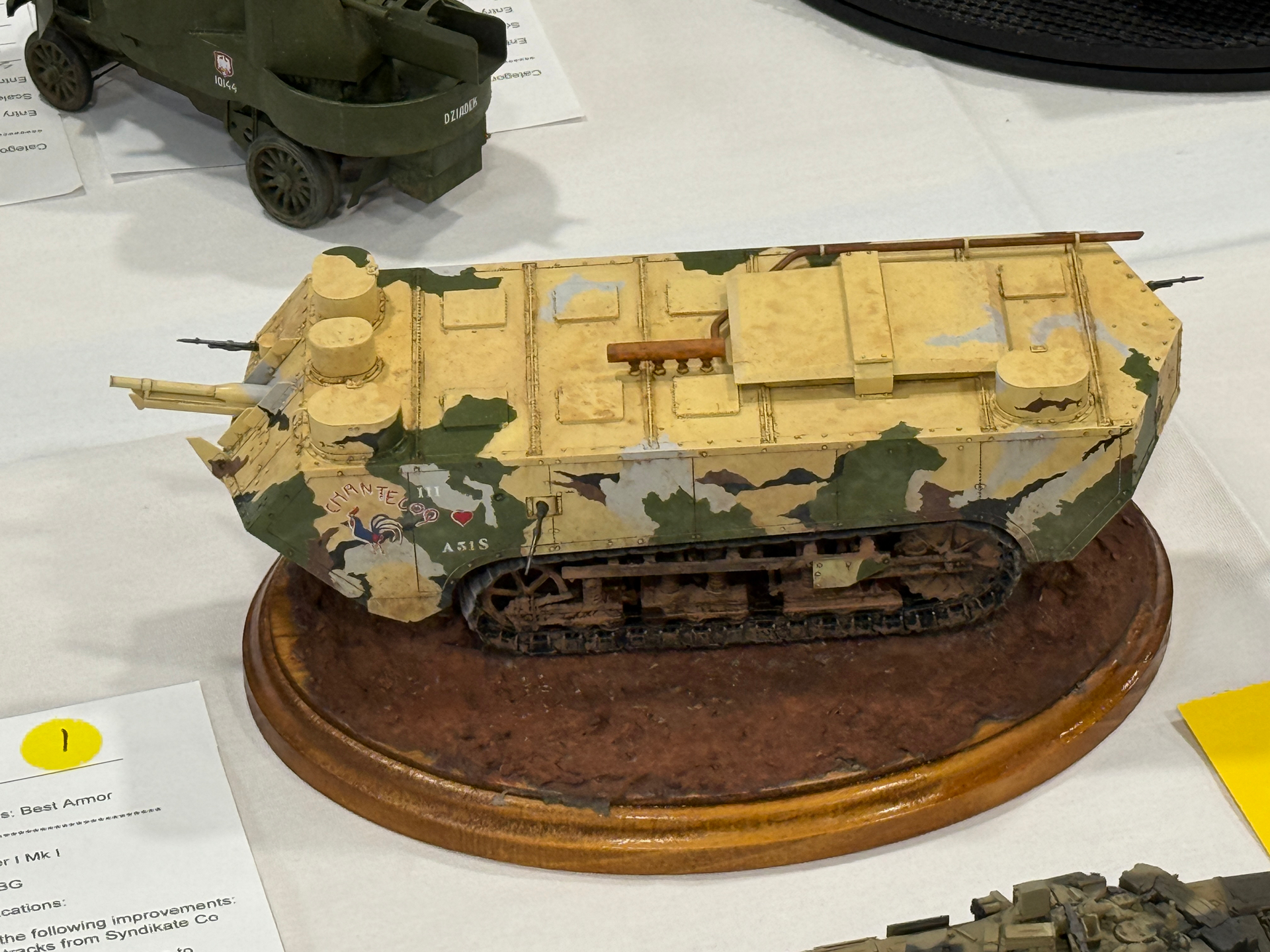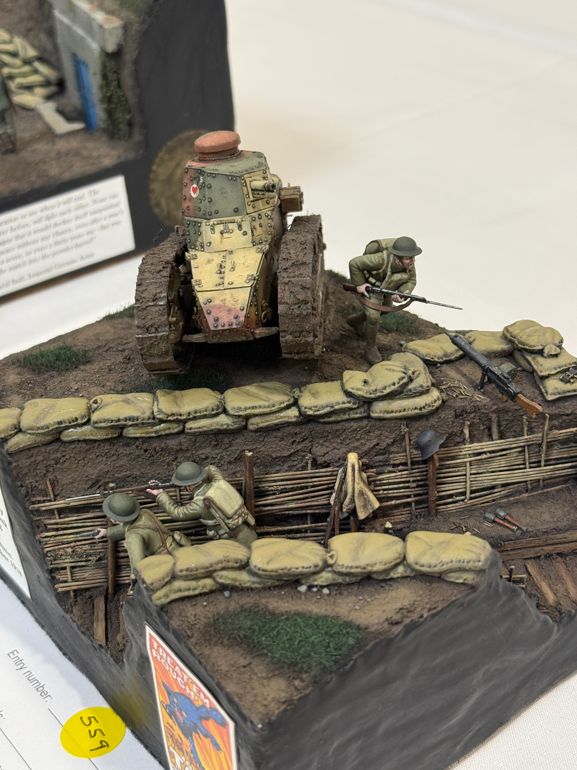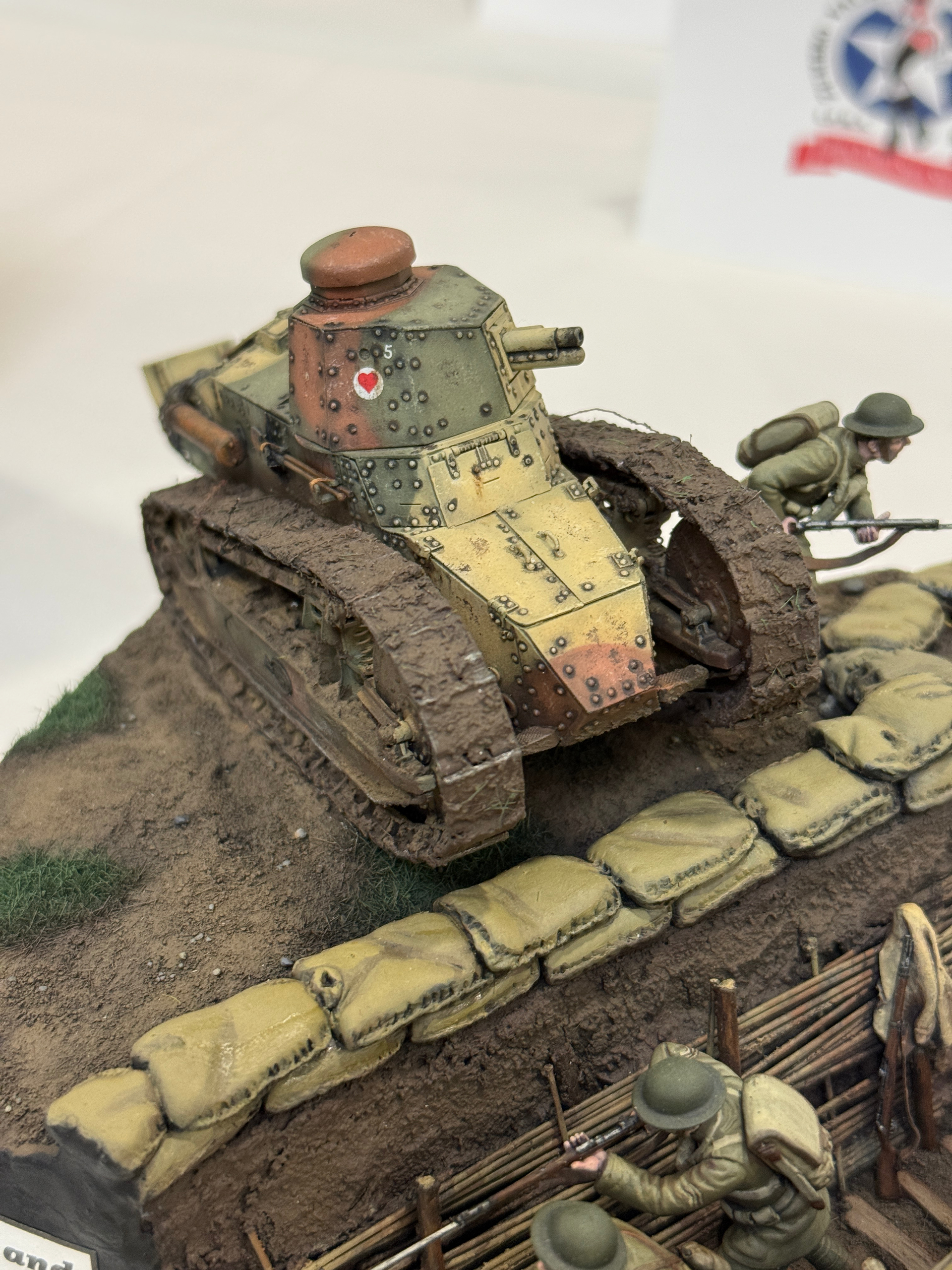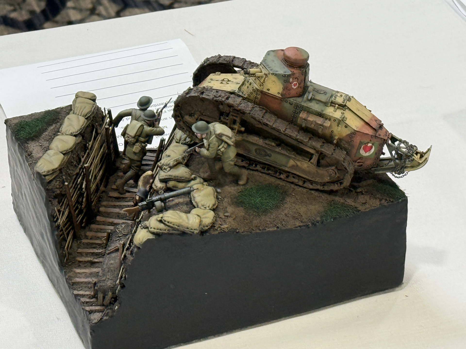 And yet another WWI AFV . . . a Renault FT. This one was representing an American-crewed vehicle. It is the vehicle portion of a wonderful trench-assault diorama — overall a really great job done here setting the scene.
