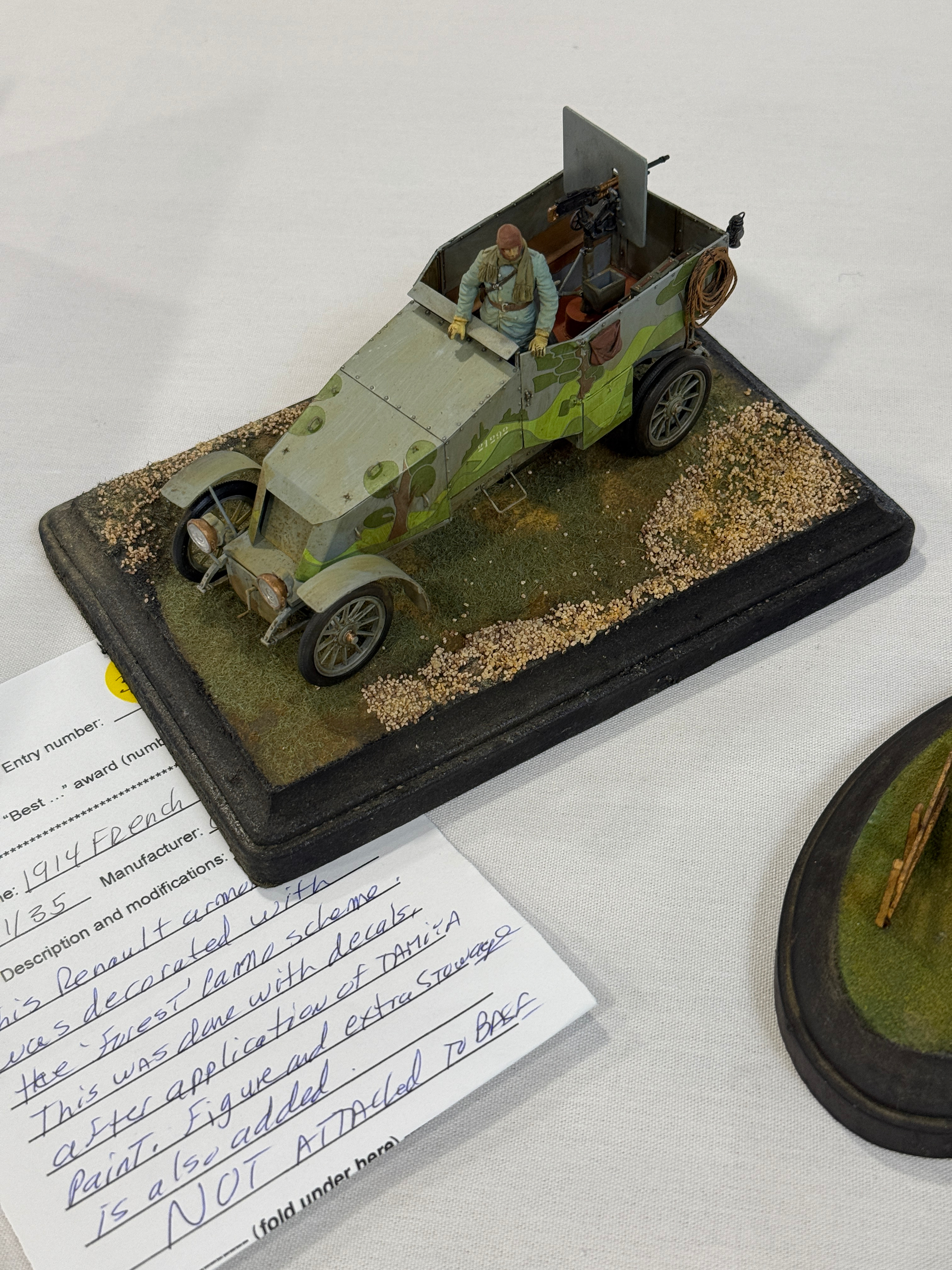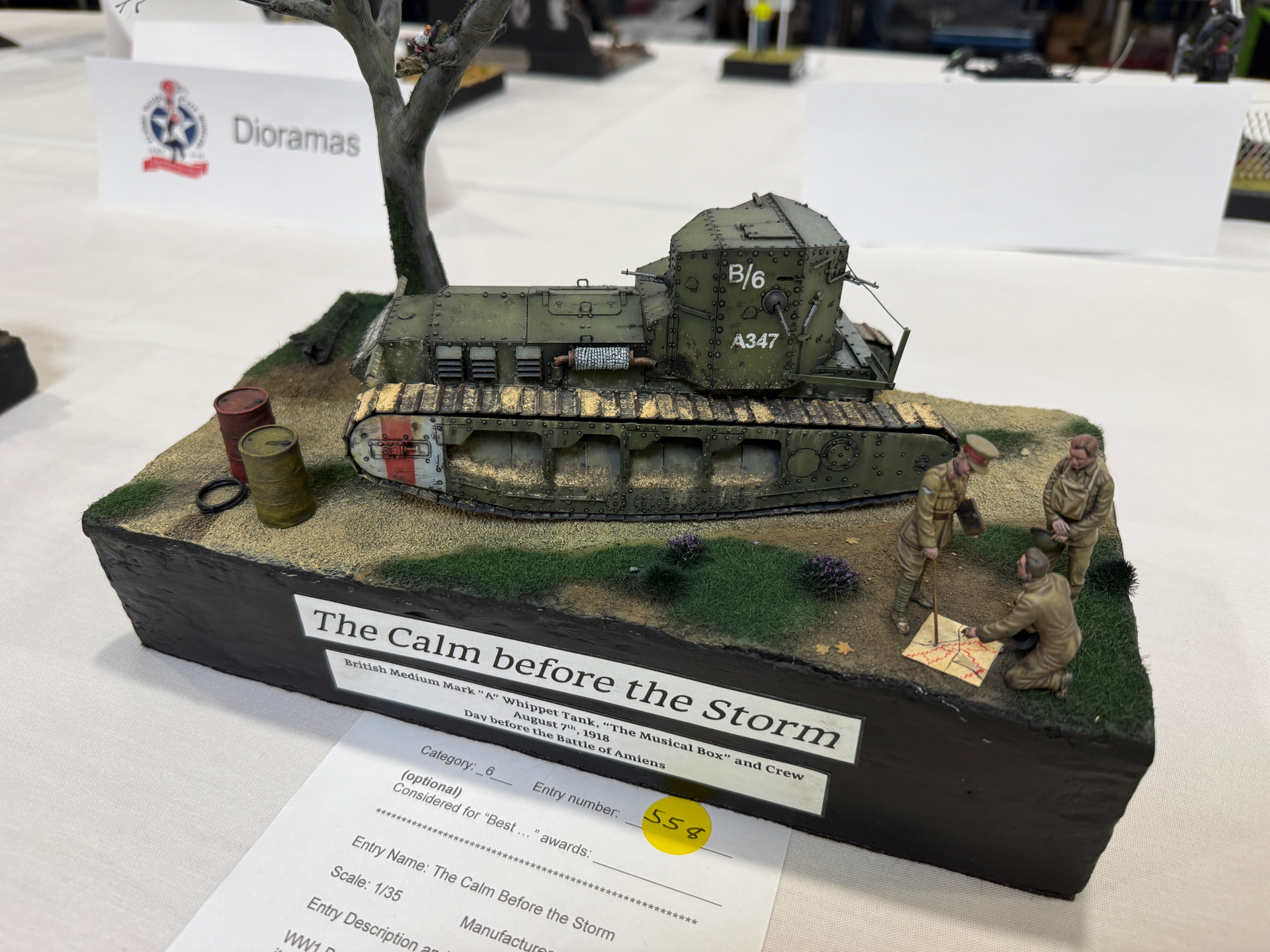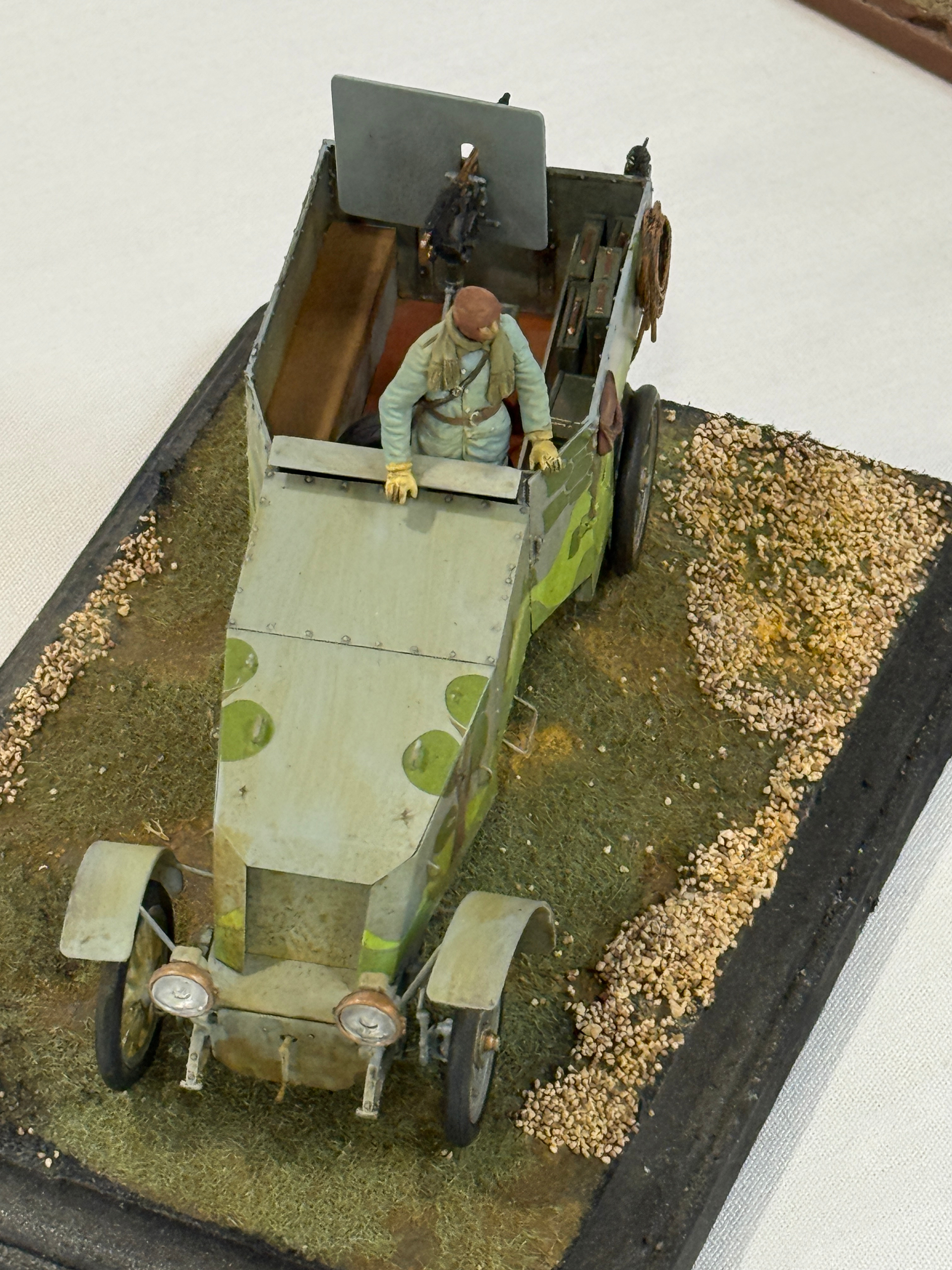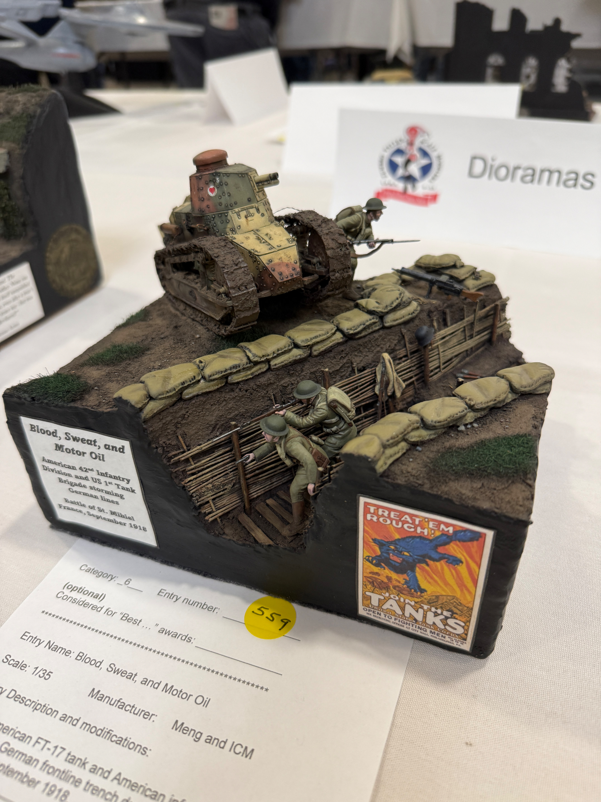 And yet another WWI AFV . . . a Renault FT. This one was representing an American-crewed vehicle. It is the vehicle portion of a wonderful trench-assault diorama — overall a really great job done here setting the scene.