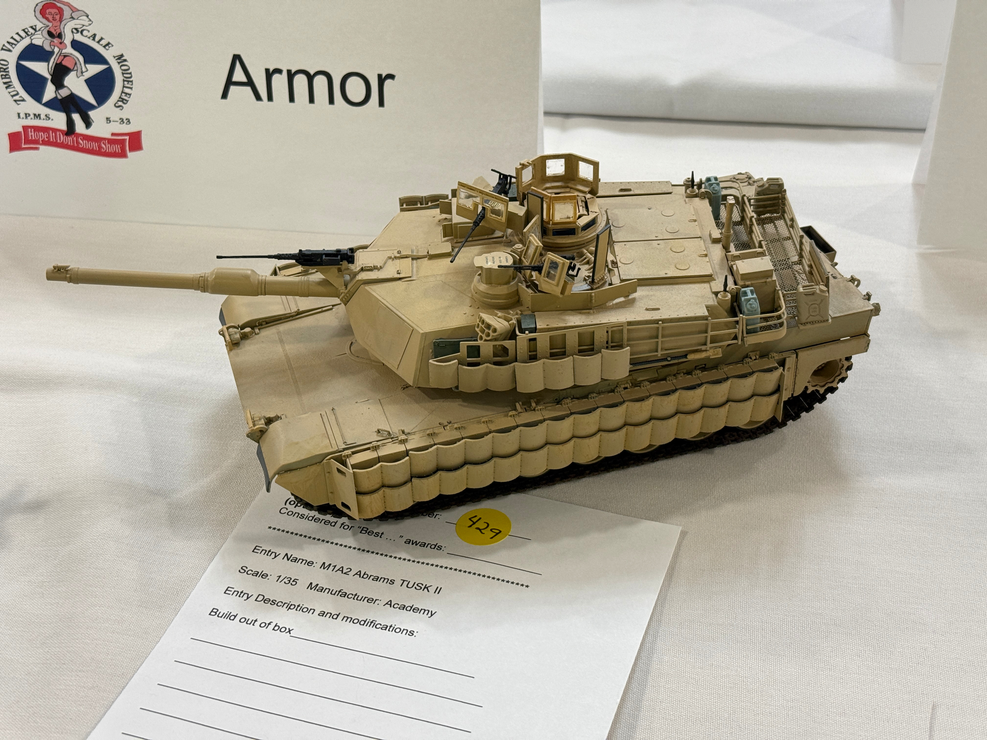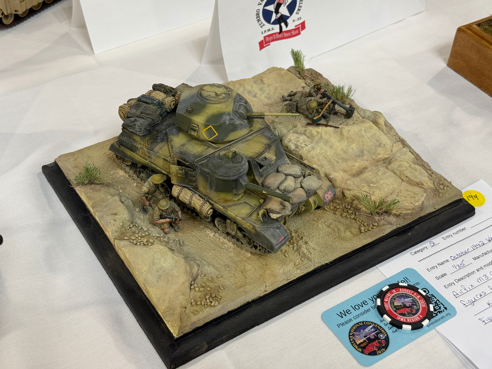 No, I’m sorry, I didn’t get any pictures of that one . . . I apparently concentrated solely on the AFVs with my camera-work. It was a very impressive piece, however — great presentation. There were a LOT of really great-looking aircraft kits (automobiles too, but they just aren’t in my bailiwick). Perhaps Dan has more pictures of that piece?