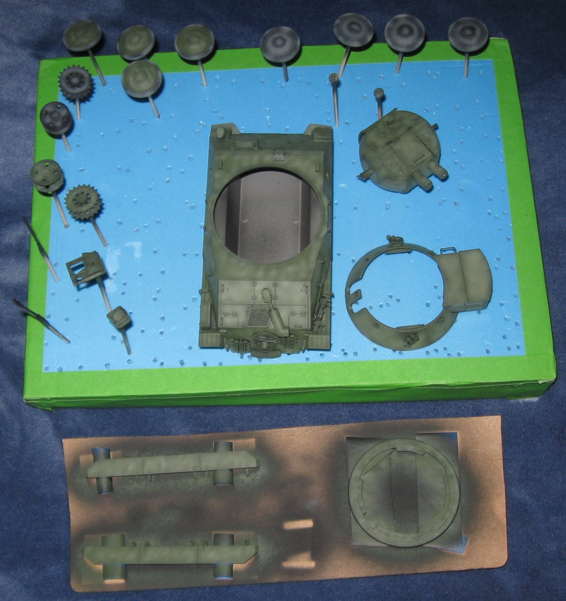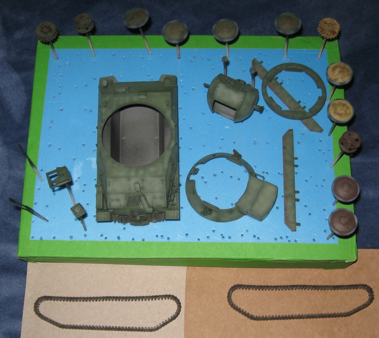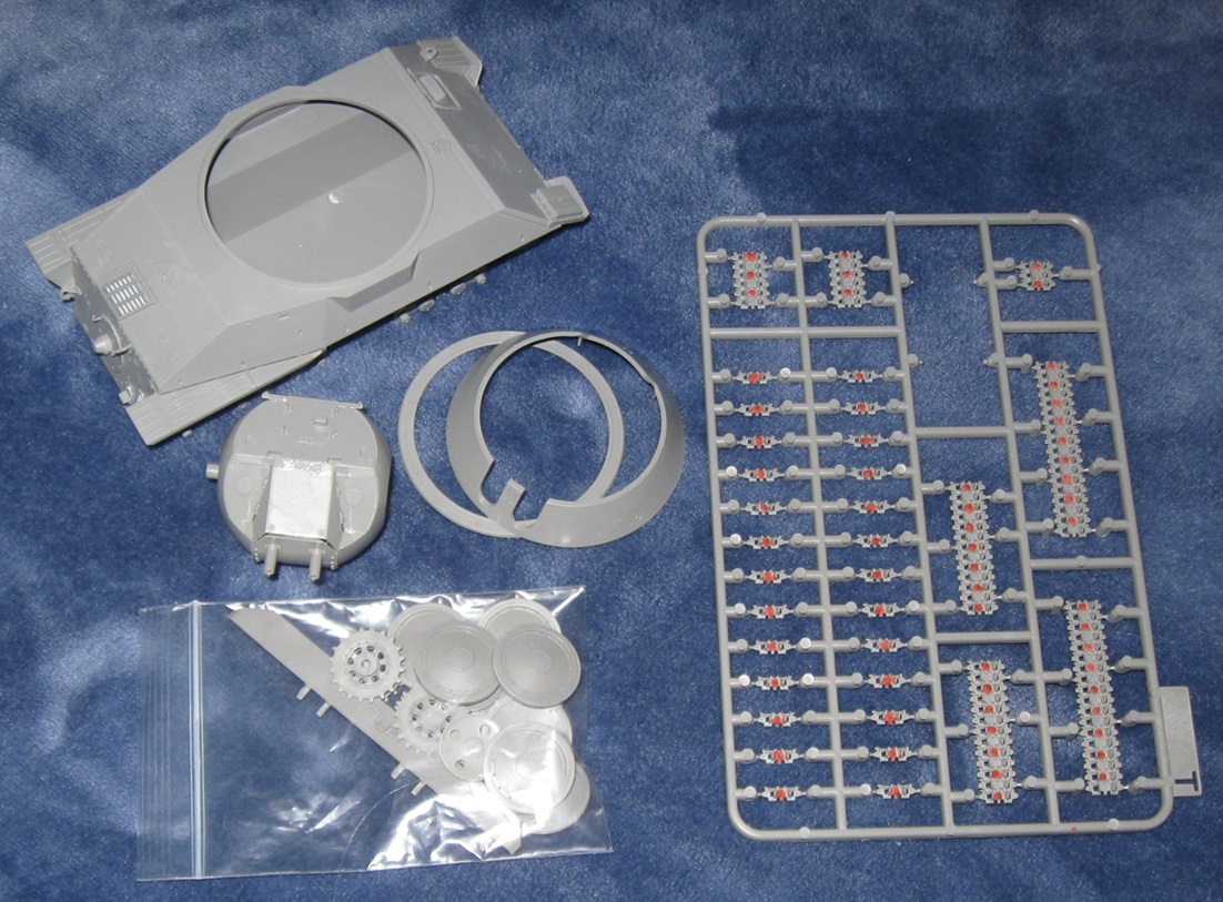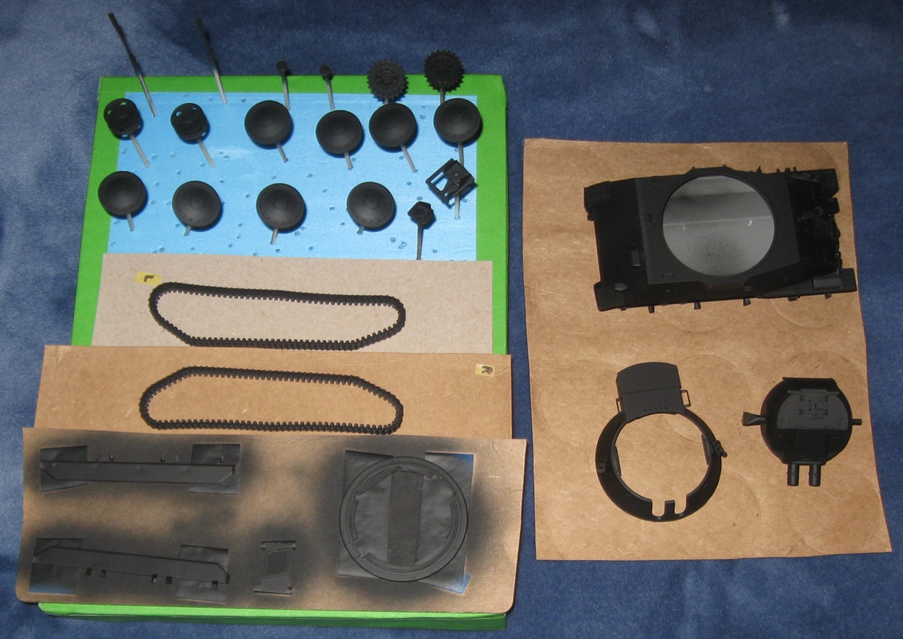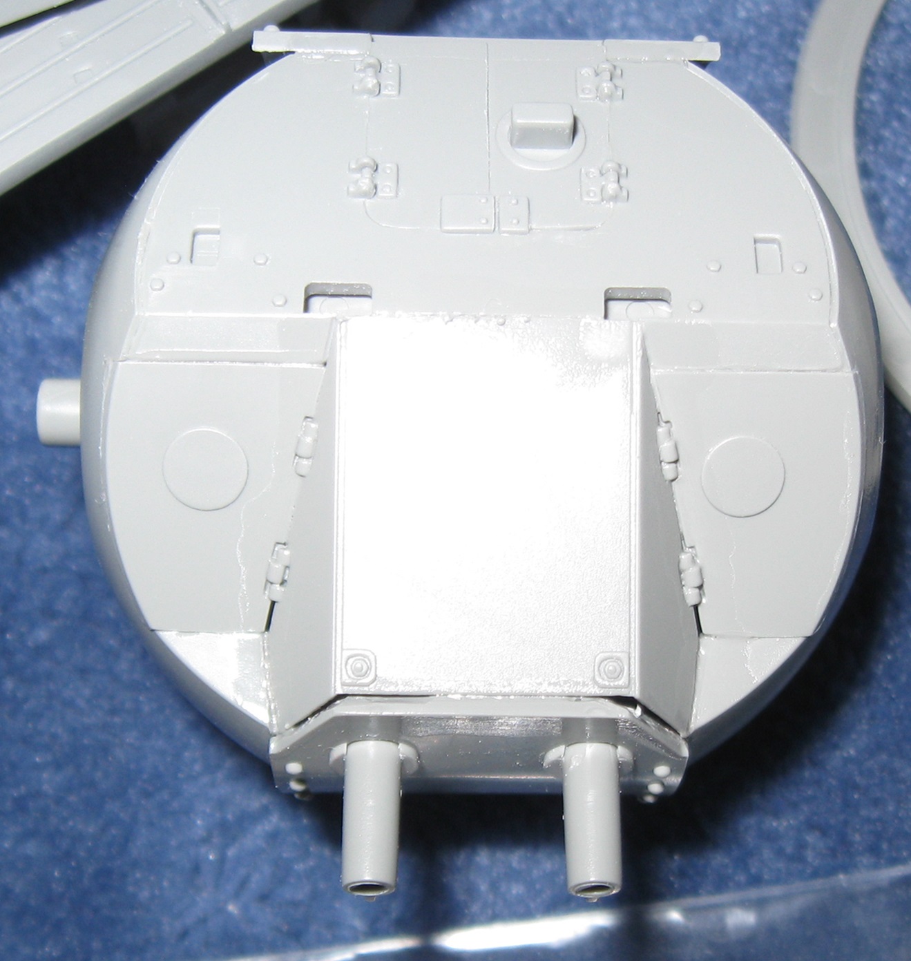 Link and length tracks are easy sailing. Ball turret is mostly cleaned up but needs some sanding. I recommend spraying primer on all major turret parts before assembly. The gap between the upper and lower turret parts is big enough to see down but small enough to confound an airbrush.