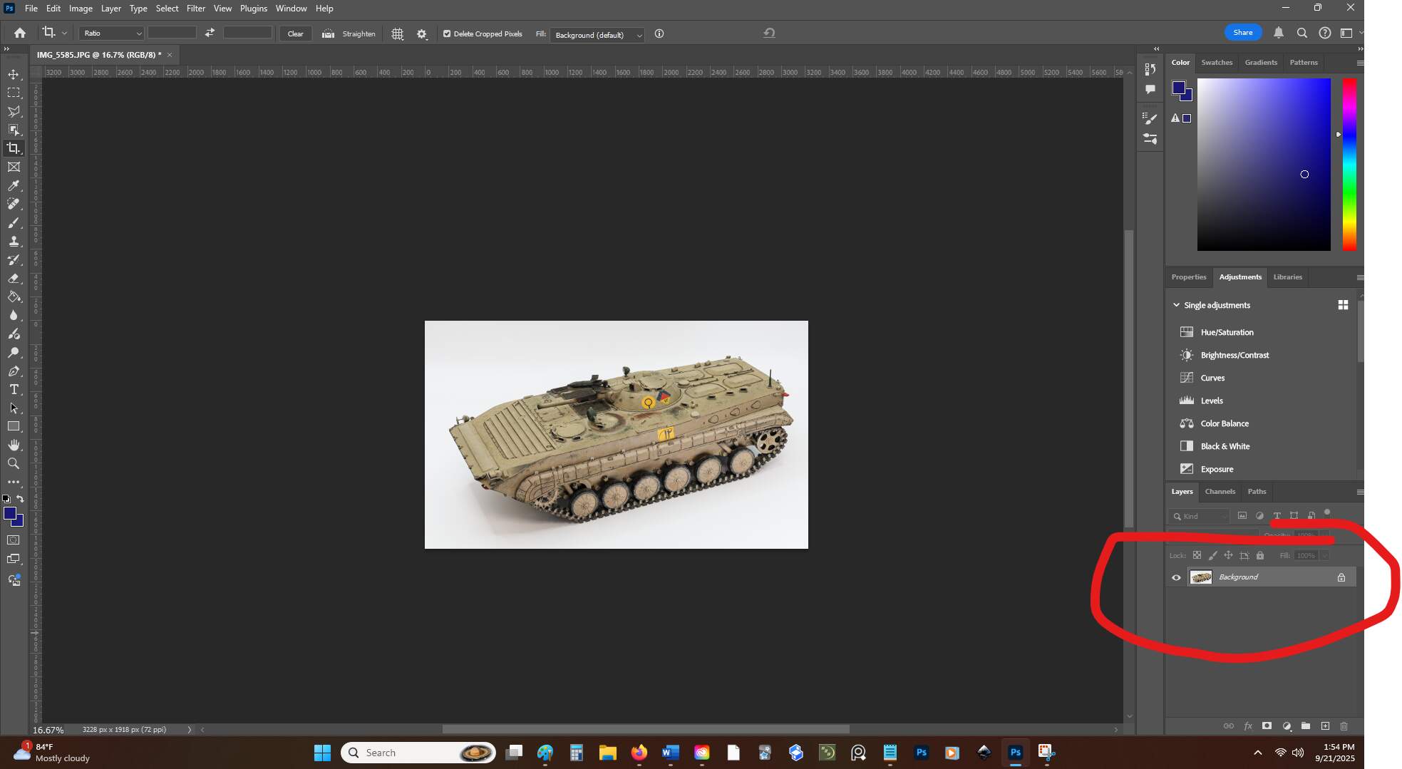 Now the marching ants are locked in on the background, and we can edit it without altering the model.